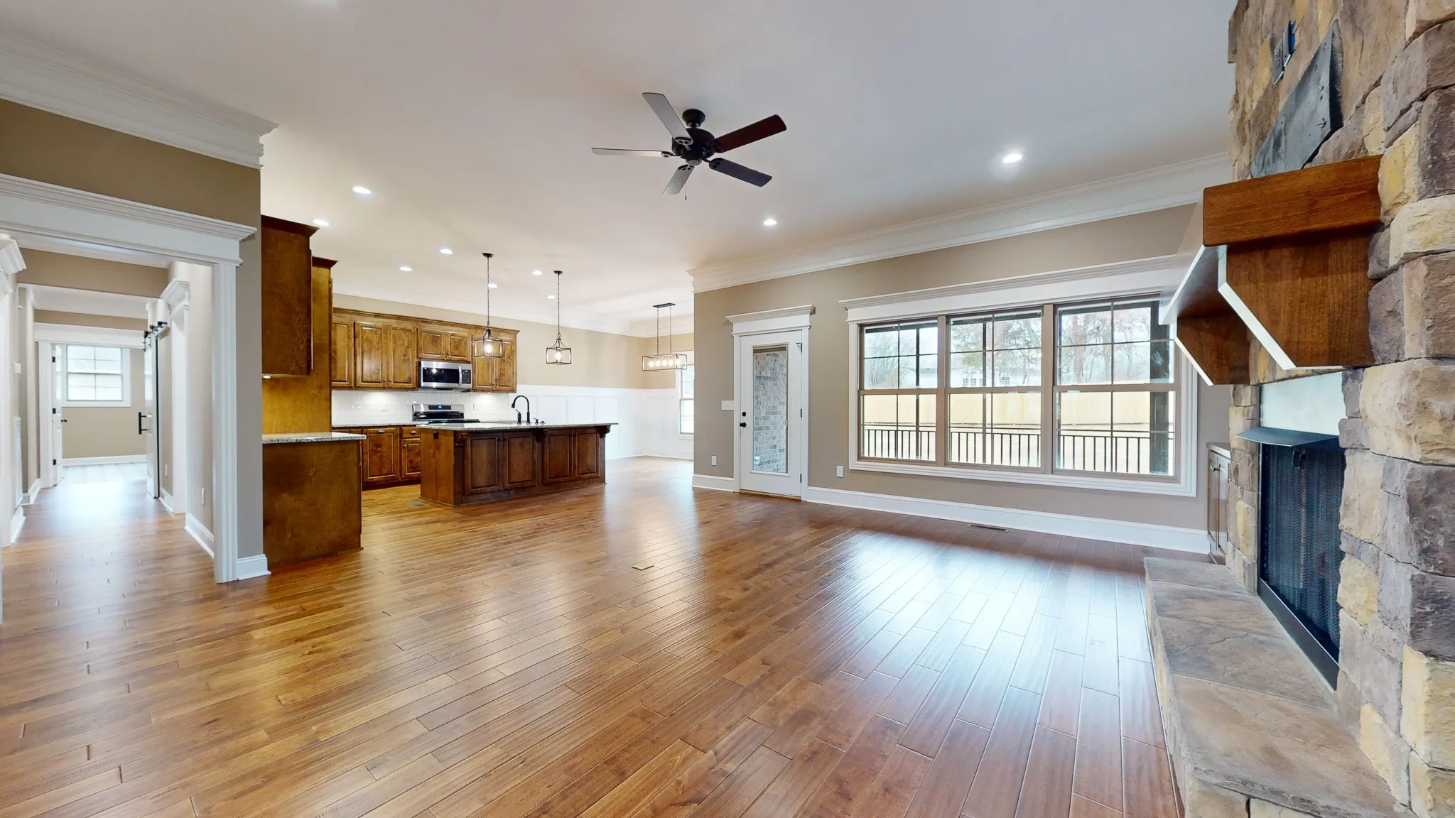 $15,000 FLEX CASH. Custom 3-4 bedroom brick & stone home w/large bonus built by Joey Craddock. This home features exceptional craftsmanship & builder pays attention to detail in every aspect of his homes. Downstairs is hardwood everywhere except tile in the wet areas. Bonus room has carpet & could be the 4th bedroom w/own bath & closet. Home features a split bedroom concept & the master has a large master suite w/2 walk-in custom closets. Kitchen has large island, lots of counter space, stainless appliances, granite countertops, & custom cabinets. Great room has a custom built in bookcase, stone stacked fireplace w/gas lots & custom mantle w/TV connect. Bedrooms two & three share a large bathroom & 4th or bonus has it’s own full bath. Large utility room w/ lots of cabinets & sink w/tile flooring. Back yard is partially fenced for privacy & large screened porch and patio are perfect for entertaining friends