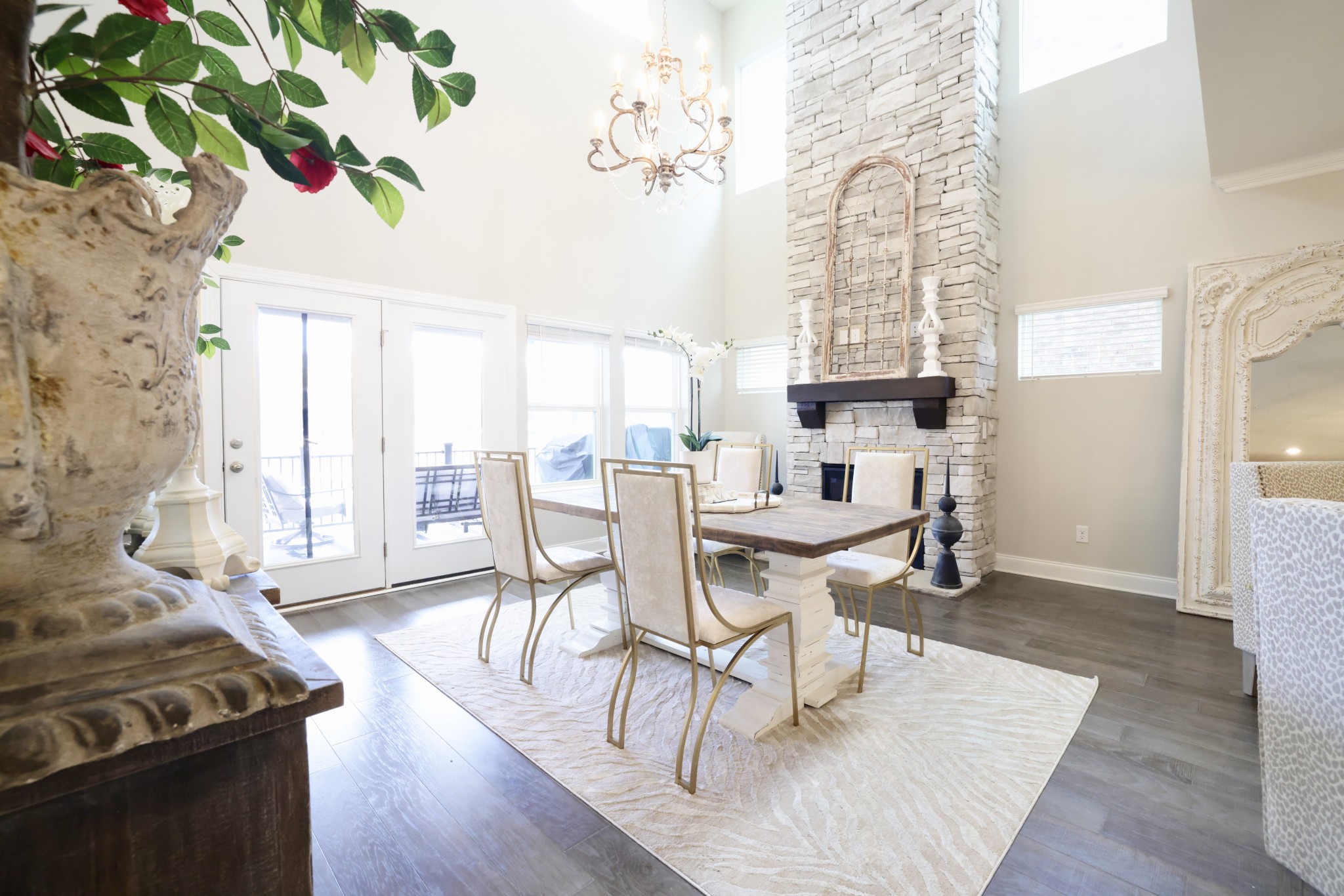 +"PublicRemarks": "Elegant home is a rare find w/ designer features in Foxland Harbor! Huge golf course views, sits alongside 14th hole of 18-hole golf course. Custom heated pool (smart control) w custom non-slip porcelain tile & 4 water features + 5 person hot tub. Main floor covered deck with incredible views! Entry foyer leads to an open kitchen, dining area & living rm w 22 ft floor to ceiling stacked stone fireplace. Lrg kitchen island w seating area draws you into the kitchen. A cooks dream w gas range & double ovens! Office w french doors off the entry. Owners Suite is dreamy w sitting area, luxurious bathroom & XL walk in closet. On 2nd level you will find a nice sitting area w lots of natural light, 3 bedrooms, 2 full baths. On lower level the rec rm w plenty of space for a large tv. Wet bar plumbed.1 bedroom, full bath & 3 big storage areas also on this level. Step onto pool deck w a 2nd covered patio. 2 car garage. Nestled on cul-de-sac in rear of Foxland Harbor. Custom woodwork throughout."