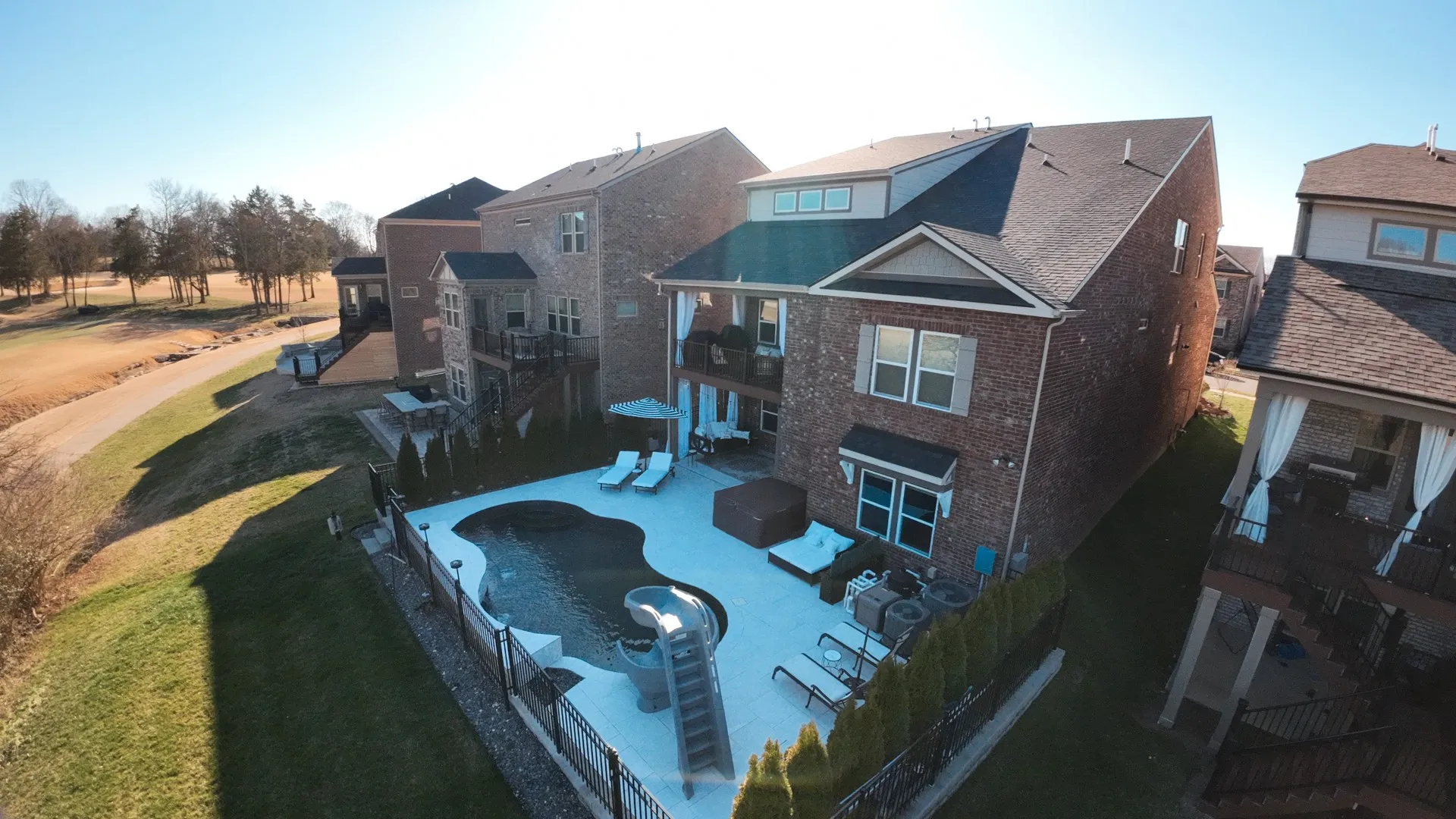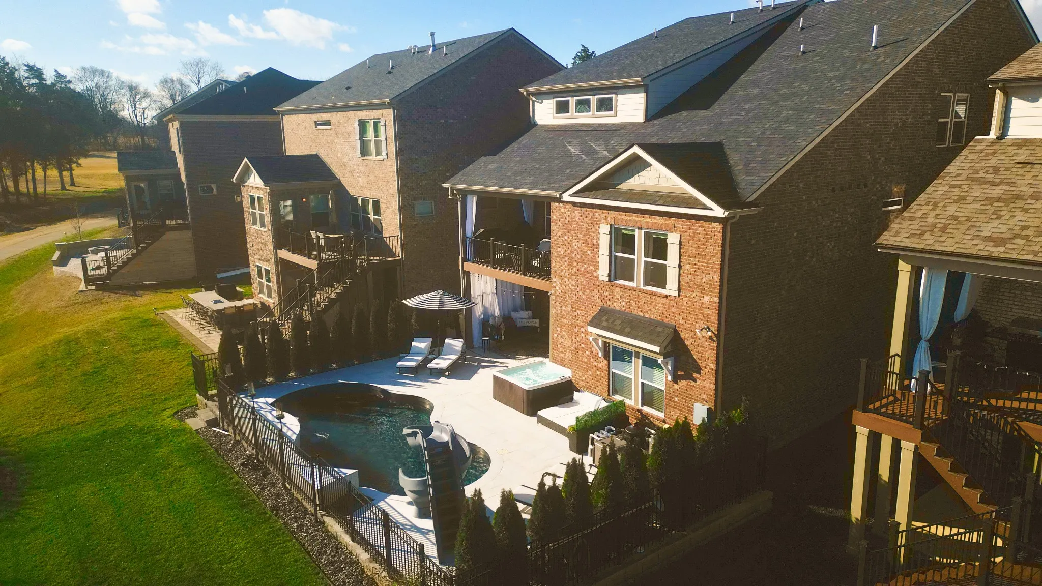 "LongDescription" => "2 covered patios, a heated pool (smart controls) and a 5 person hot tub. Deck surface is custom oversize non-slip porcelain tiles that stay cool to the touch during the summer heat. 4 water features and a slide your kids or grandkids will love."