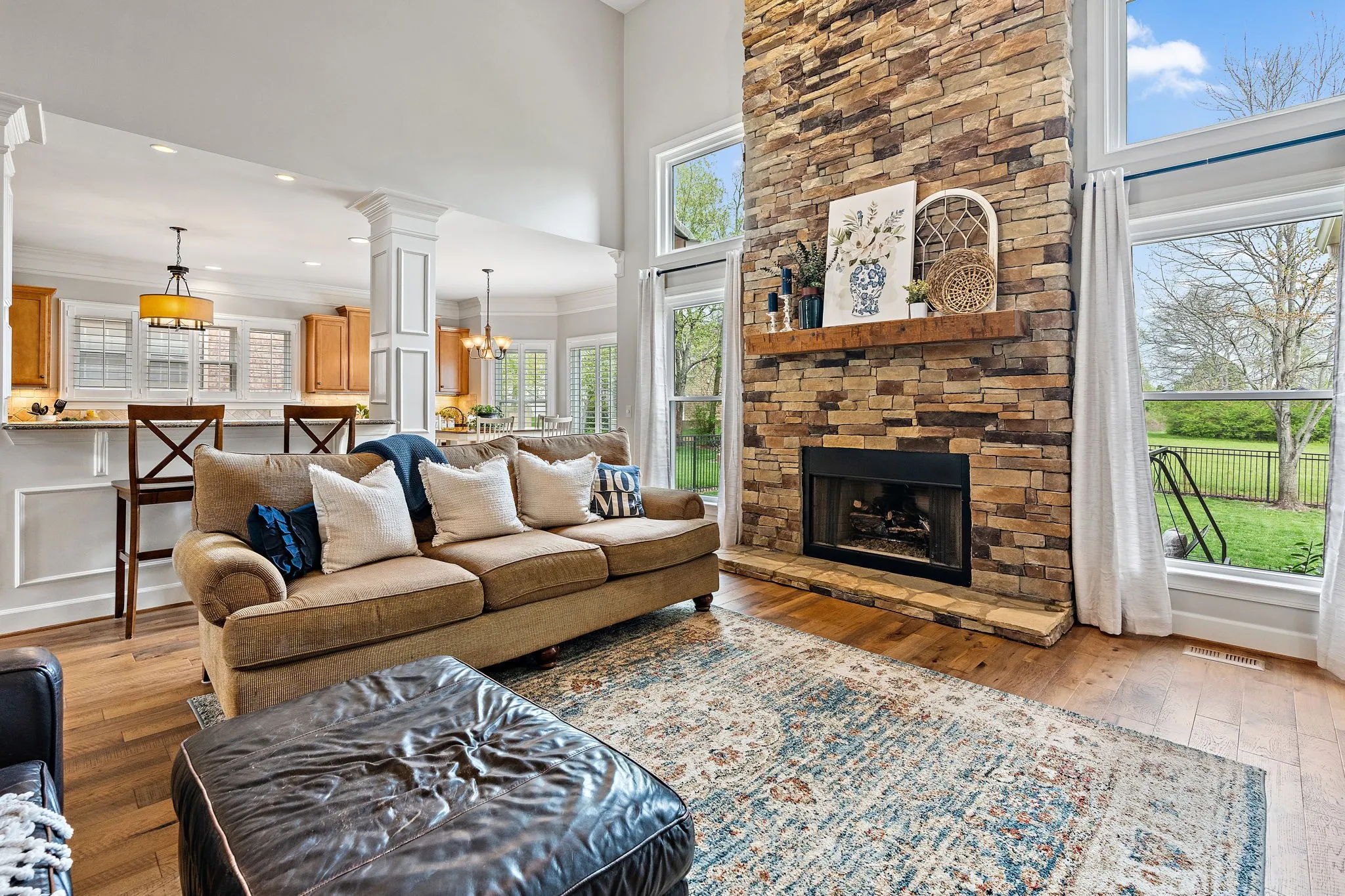 Welcome to this stately four-bedroom, 3.5-bathroom home in the heart of Franklin. The exterior, featuring a harmonious blend of brick and stone, offers a striking curb appeal. Step inside to be greeted by an inviting foyer that leads to a beautifully appointed interior with ample natural light flowing through large windows, highlighting the rich hardwood floors that run throughout the main living areas. The open-concept layout includes a spacious living room with a cozy fireplace, perfect for gatherings, and an elegant formal dining room for hosting dinner parties. The gourmet kitchen is a chef’s delight, boasting high-end stainless steel appliances, granite countertops, a center island, and a breakfast nook for casual dining. Home has full front and rear lawn and landscaping irrigation that utilizes the communities reclaimed water system. New windows throughout, new hardwood floors and fresh paint to welcome the next homeowner into this comfortable home!