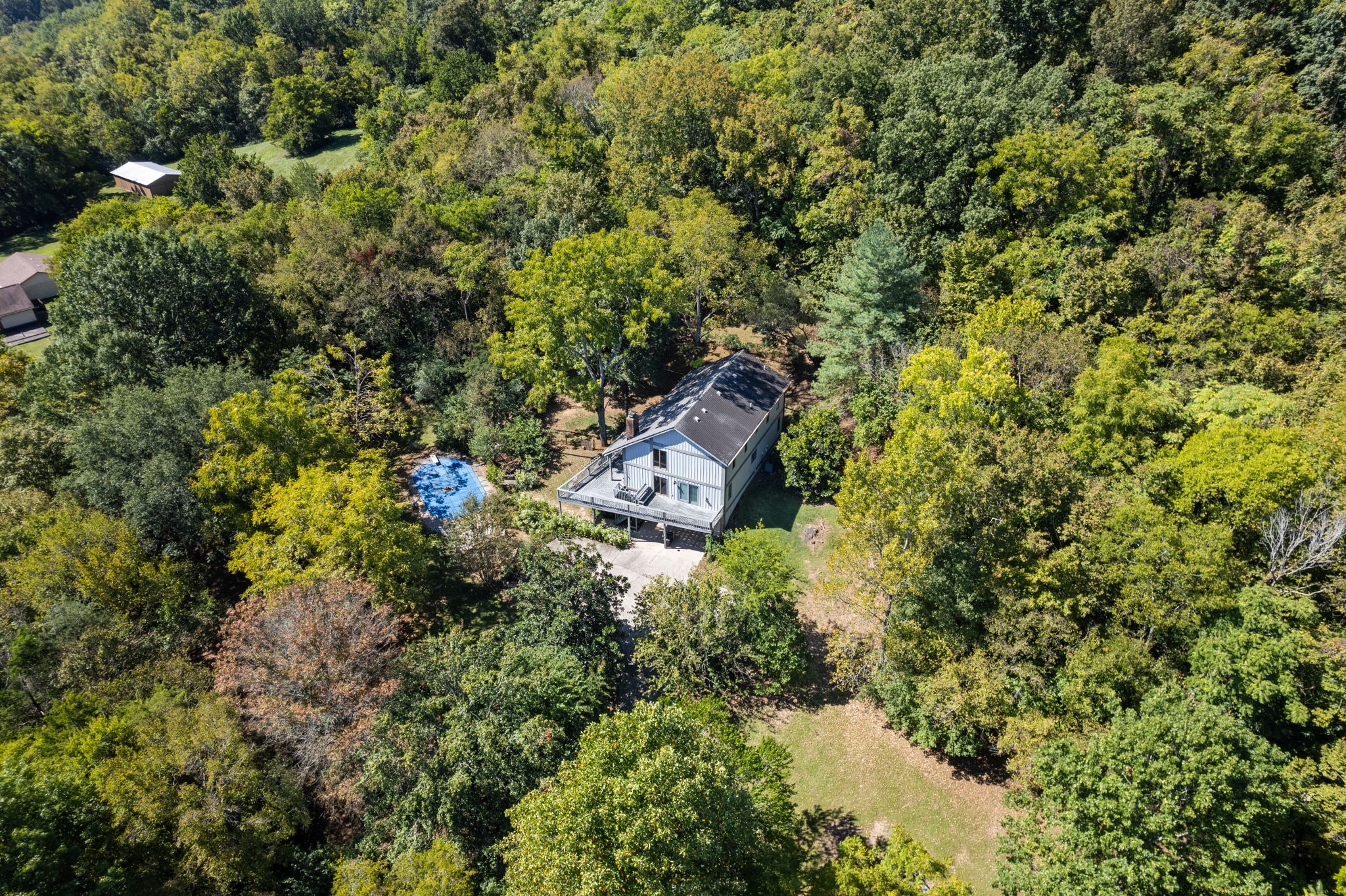 Excellent opportunity in prime location! Home on 11 acres in South Franklin with amazing views, located 1/2 mile from Berry Farms.. This home features a rec room in basement, whole house water filter, wood-burning fireplace; 2-car garage, inground pool with diving board, Updates include: fresh paint; new master bath countertop, vessel sinks and faucets; refinished wood floors and stairs; some custom ceilings; new crown molding; new receptacles, switches, door knobs, and hinges; new entry door; LED lighting throughout most of the home & exterior; newly refurbished gravel driveway; two cedar ceiling closets upstairs; new LVP flooring in rec room and a new sundeck. If you’re looking for privacy & convenience, here it is! 5 minutes to I-65 & 840, 10 min to Cool Springs!
