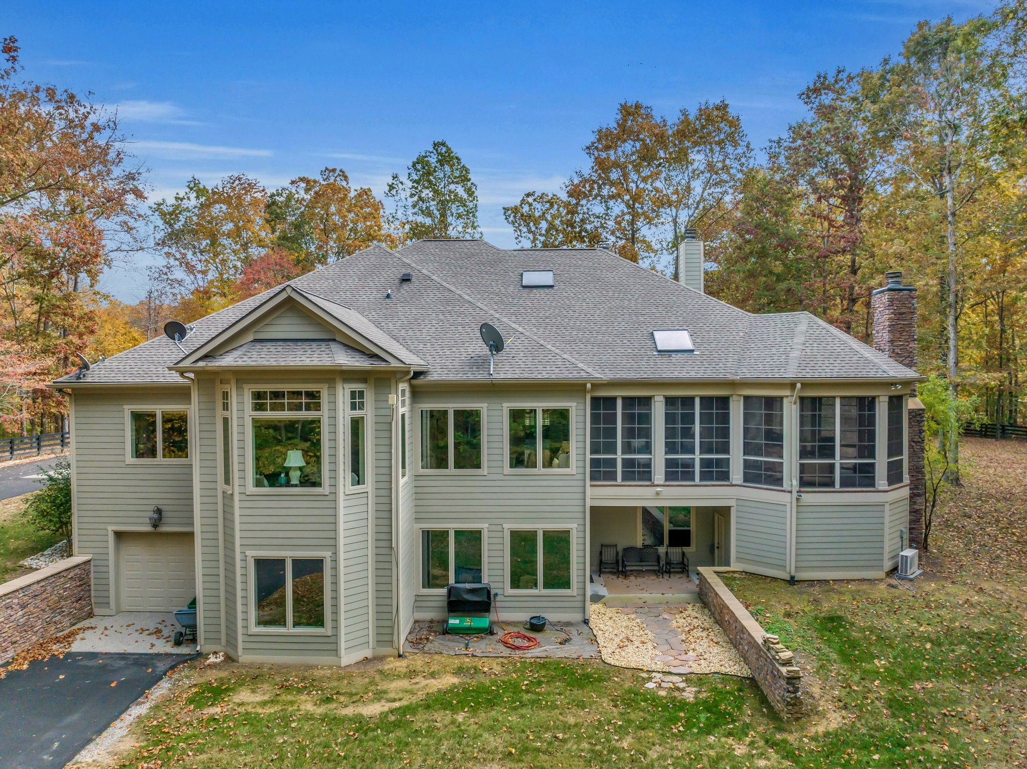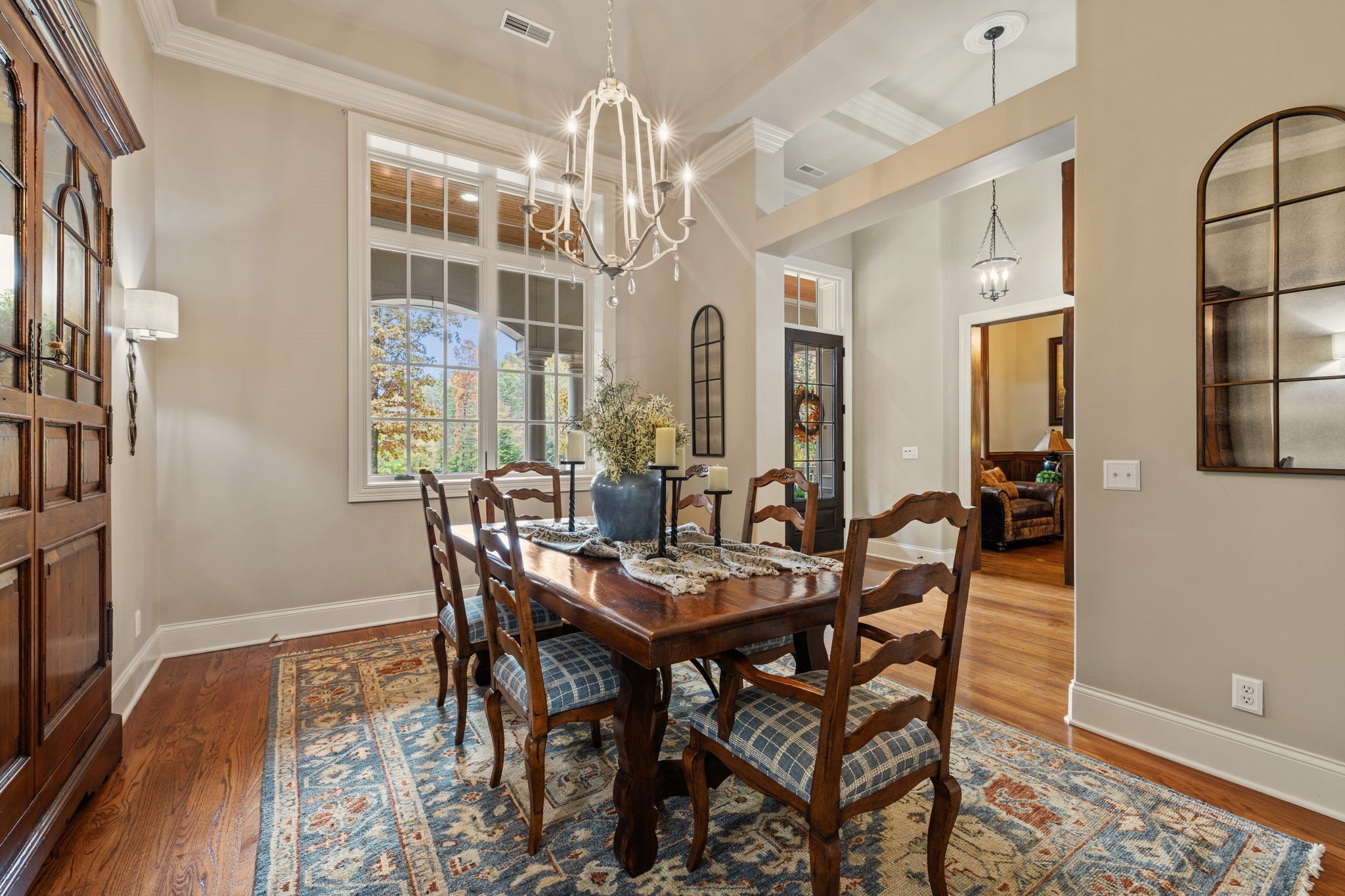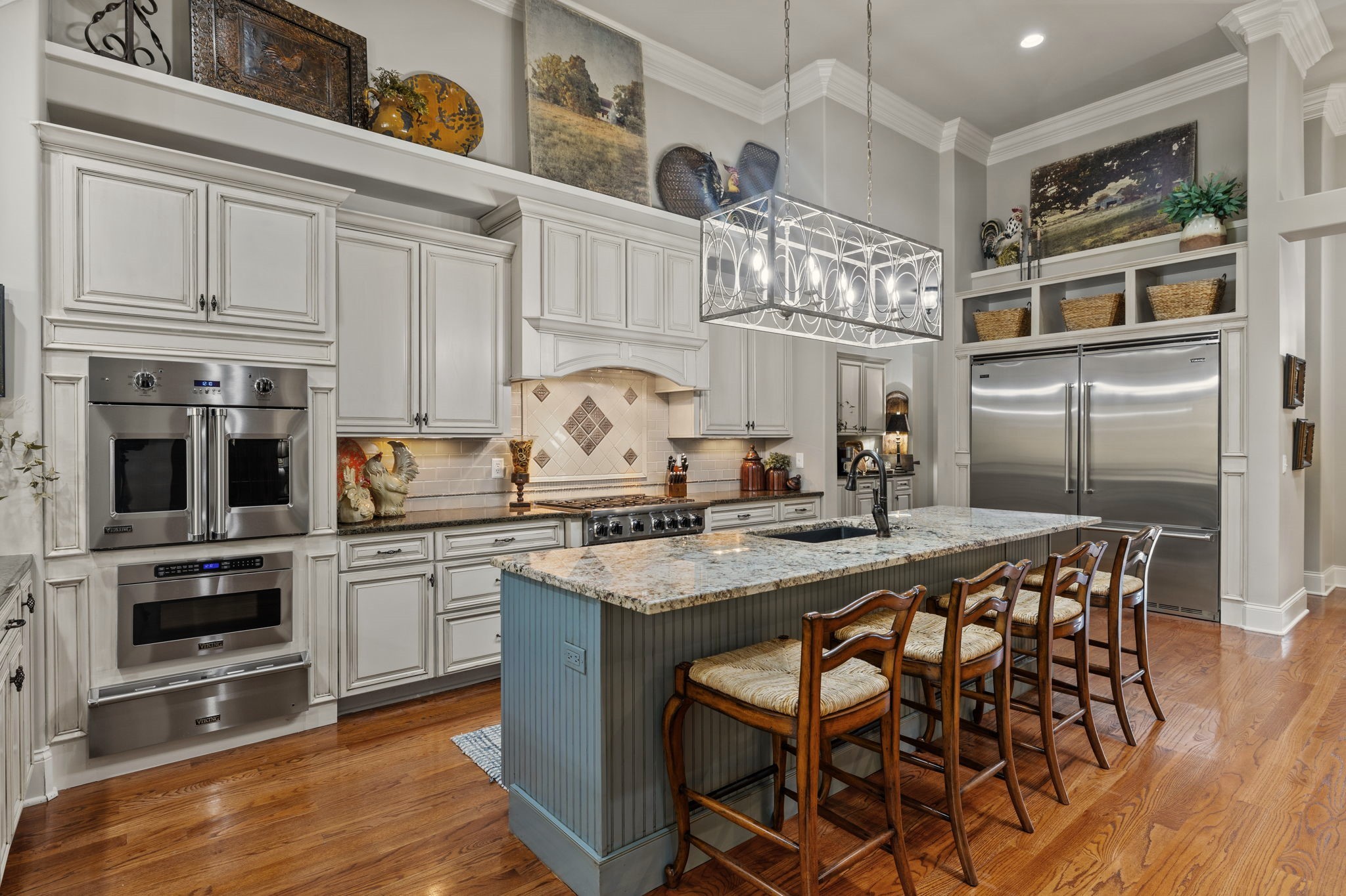 LEIPERS FORK – Stunning 4 BR, 4.5 BA home, nestled on 8.56 ac, just 8 min from the village. This spacious open living home greets you with gorgeous all wood double doors, inviting you into a comfortably, elegant retreat with soaring ceilings & a flood of natural light. The Kitchen features all Viking appliances incl 2 full Frid/Freez, granite countertops & XL island, LG Breakfast Room with lots of windows & formal Dining Room. You can enjoy a cozy fire in Living Room, Office/Den or Glassed in porch. Ready to retire? The main level includes a Primary Ste, guest Ste, 3 rd BR & additional Office/BR. Basement level includes additional space being utilized as an additional BR & full BA, remote blinds in the BRs, wine cellar, rec/gym, bonus, storage space & so much more. With 7,000 sq ft set on 8+ ac with a winding creek, every member of the family will find a place to call their own.