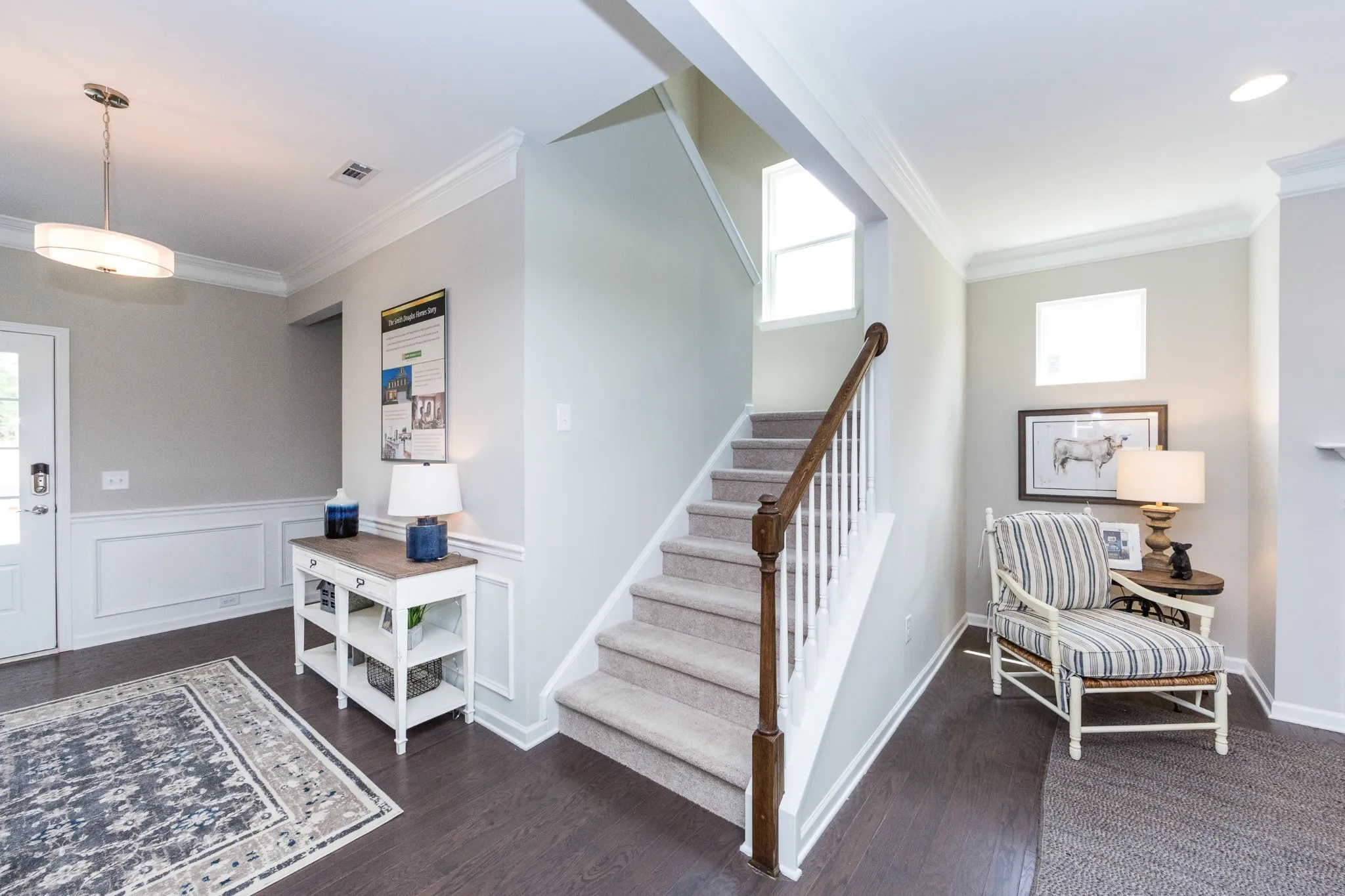 The Charleston at Stratford Station by Smith Douglas Homes. If you love the architecture that Charleston is known for, look no further than the Charleston plan. You’ll immediately be drawn to the covered front porch and balcony off the second floor. Inside, you’ll be amazed by the counter space in the open, expansive kitchen. All of the spaces in this home are large and inviting, including the four upstairs bedrooms. With rear entry garage access, the front porches are simply charming!