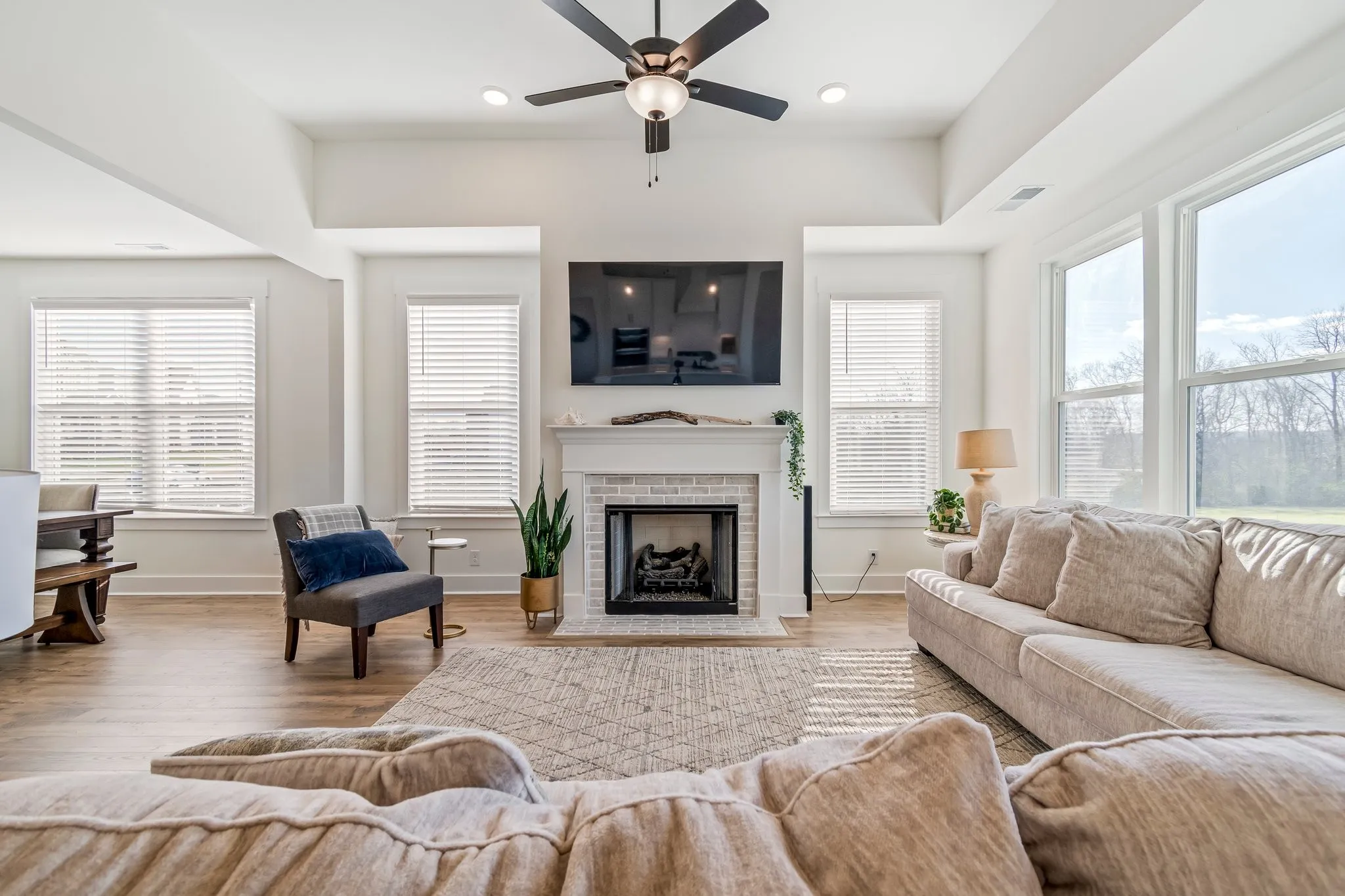 Better than new in Spring Hill’s PREMIER neighborhood! 5 bedrooms + 4 FULL bathrooms, this floor plan is versatile for your growing needs. Designer finishes throughout include luxury tile and quartz countertops, hard flooring downstairs, gourmet kitchen LOADED with upgrades, exterior brick elevation, and stunning accent walls. Built on the best lot in the neighborhood, private treelined views and level lot is PERFECT FOR A POOL! Soaring ceilings and a surplus of windows create a bright and dreamy haven. 5th bedroom downstairs would make a great office or guest / teen / or multi gen suite. Downstairs living areas that lead out to the covered patio and backyard are perfectly set up to host your friends and family. The expansive bonus room is a flexible space that could have multi uses, think movie room meets home gym. Can we talk about these community amenities: Luxury pool with splash pad, walking trails, dog park, community garden, shops, and a playground with expensive lawns. WOW!