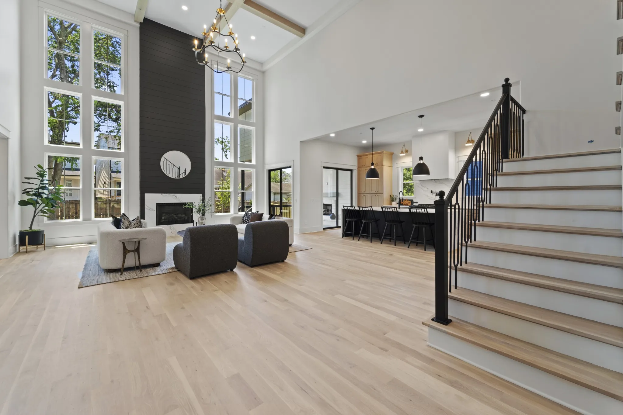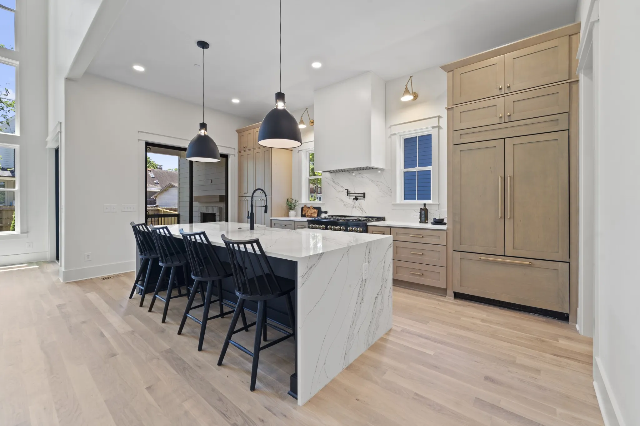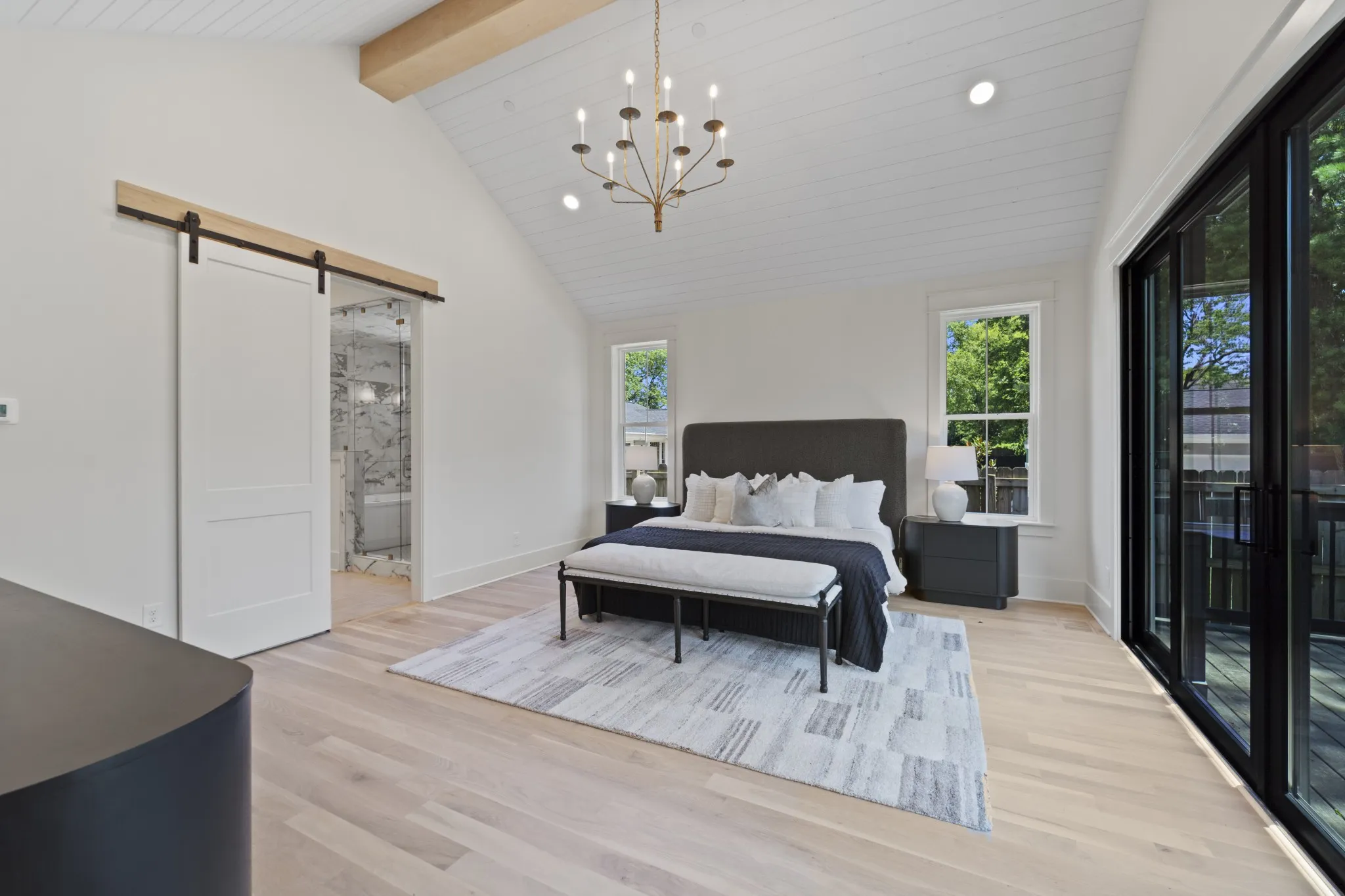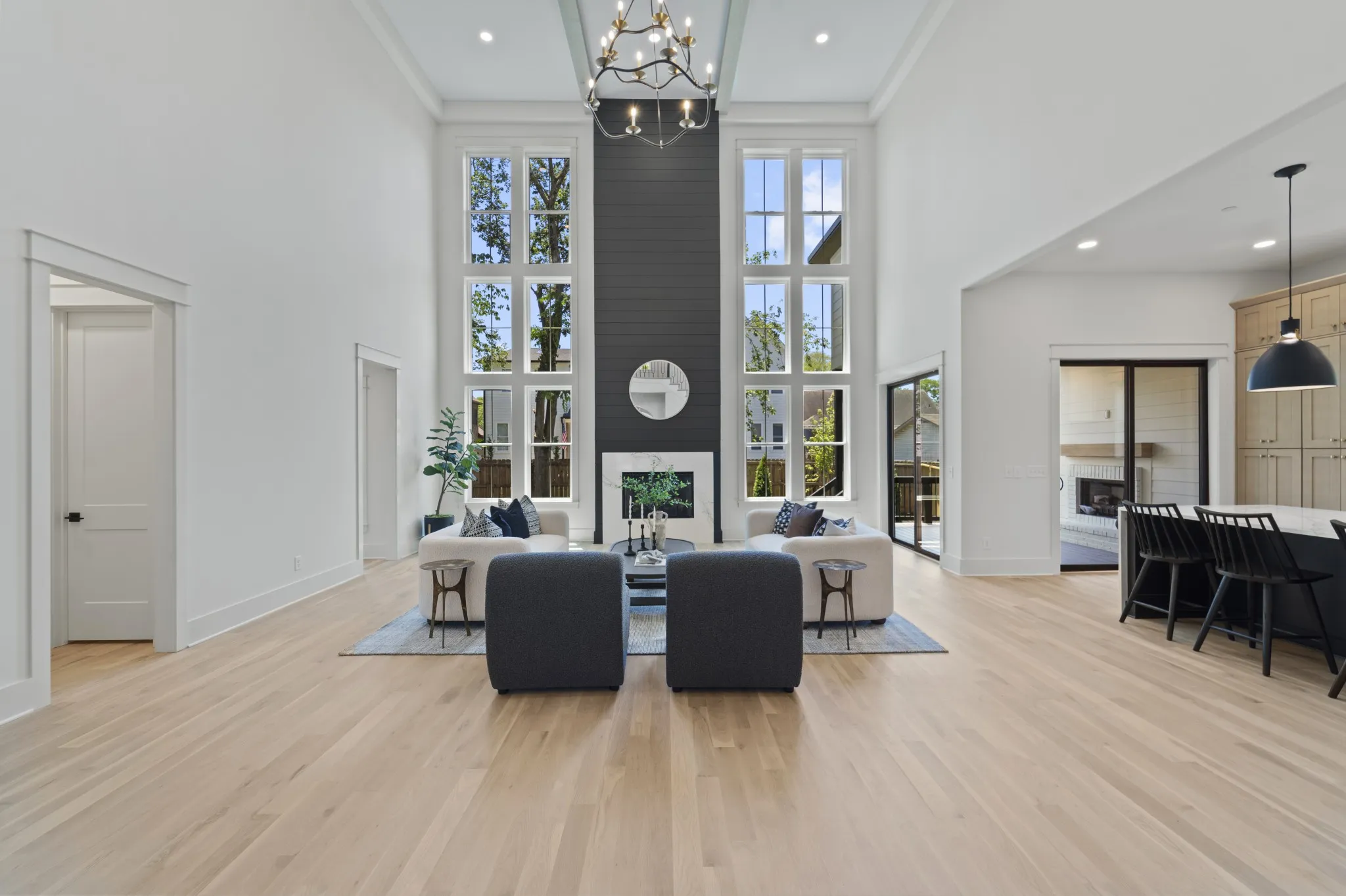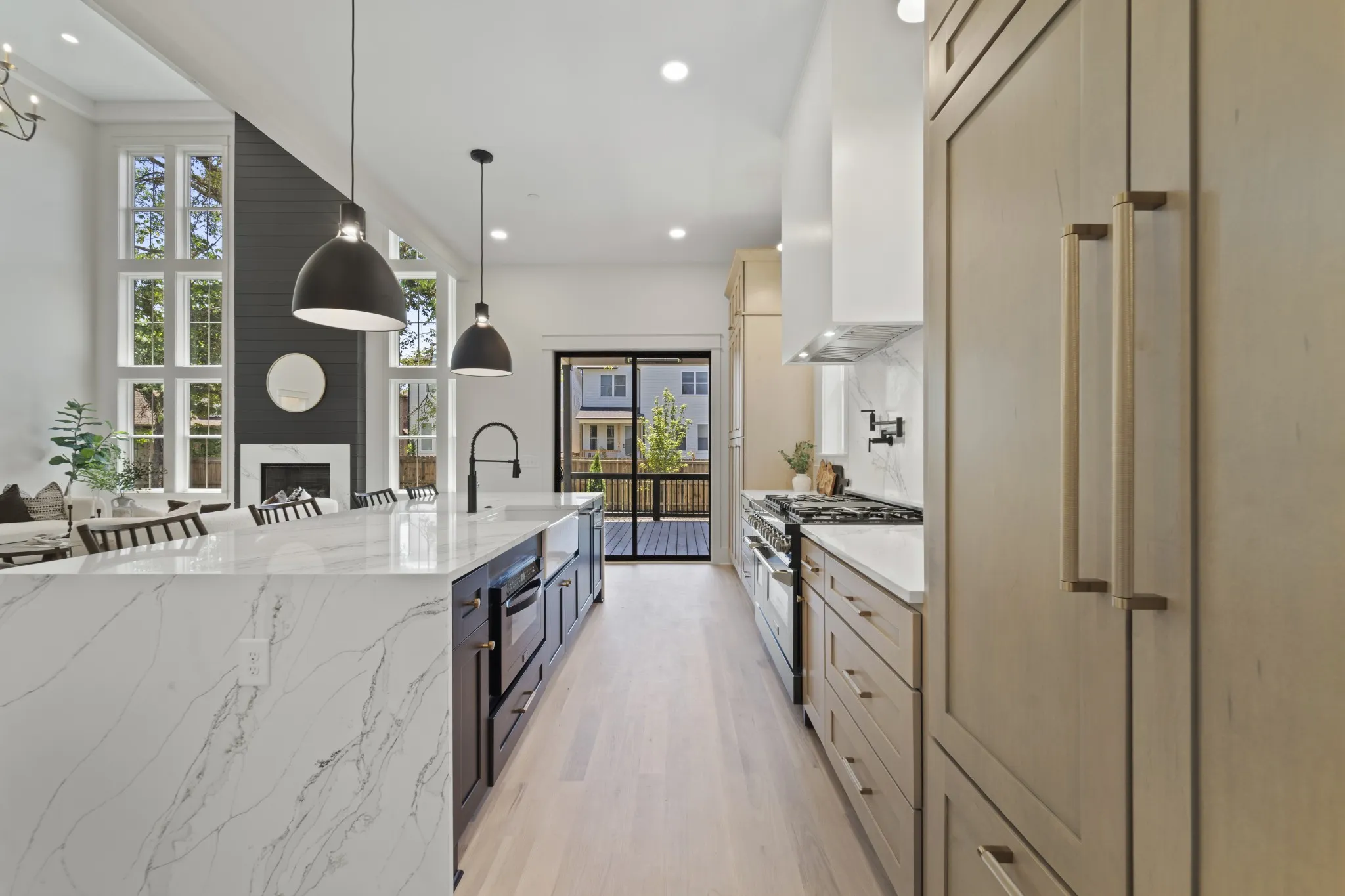 Beautiful new family home in 37215! Oversized living room with vaulted ceilings, gas fireplace, and glass sliding doors to walk-out covered deck. Primary bedroom with separate soaking tub/glass steam shower enclosure, large walk-in closet, and walk-out to private deck. Additional bed/bath suite on main floor, perfect for nanny, in-laws, or guests just passing through. Extra-large bonus room on 2nd floor, in addition to rec room with wet bar – library, gym, homeschool room, make it your own! Tucked away on a quiet street off Hillsboro Pike, perfectly nestled between Green Hills and 12 South. Modern paint, fixtures, and finishes with the formal dining room, entryway, and exterior of a traditional family home – get the best of both worlds!