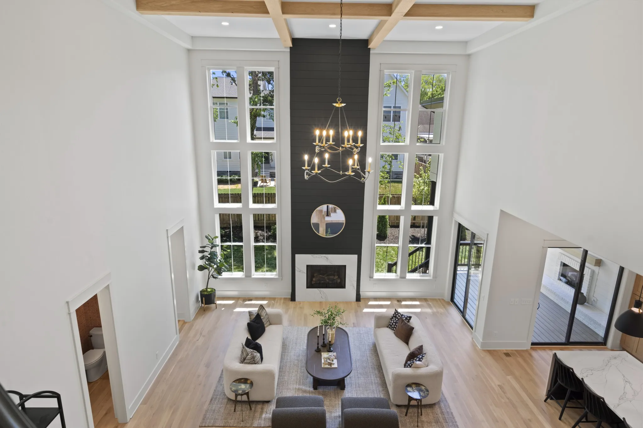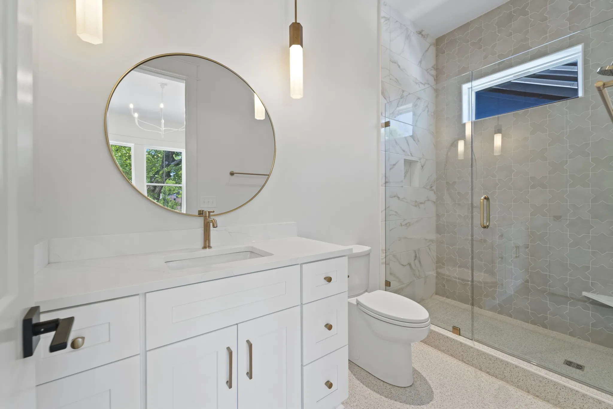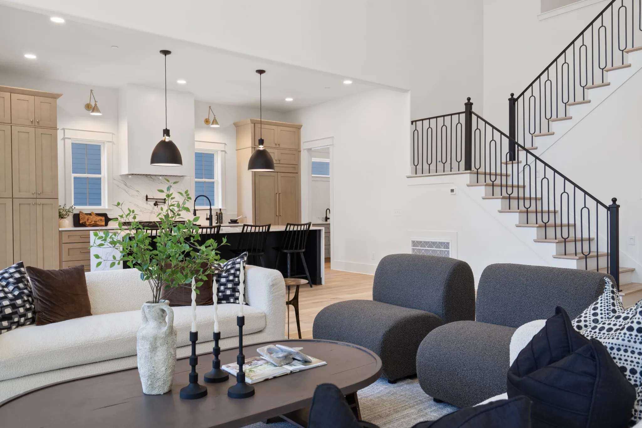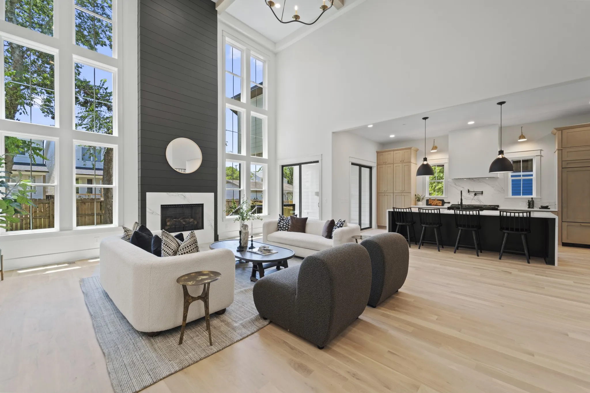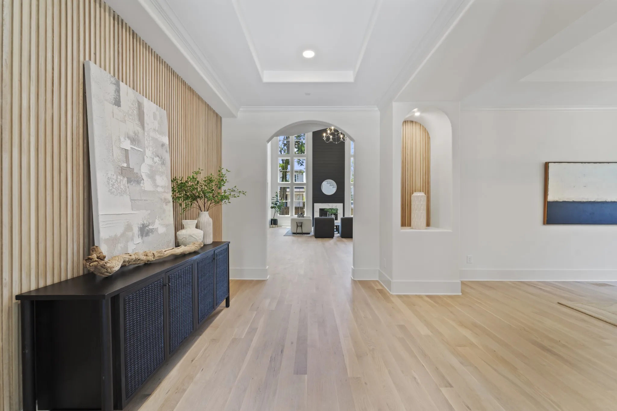 Beautiful new family home in 37215! Oversized living room with vaulted ceilings, gas fireplace, and glass sliding doors to walk-out covered deck. Primary bedroom with separate soaking tub/glass steam shower enclosure, large walk-in closet, and walk-out to private deck. Additional bed/bath suite on main floor, perfect for nanny, in-laws, or guests just passing through. Extra-large bonus room on 2nd floor, in addition to rec room with wet bar – library, gym, homeschool room, make it your own! Tucked away on a quiet street off Hillsboro Pike, perfectly nestled between Green Hills and 12 South. Modern paint, fixtures, and finishes with the formal dining room, entryway, and exterior of a traditional family home – get the best of both worlds!