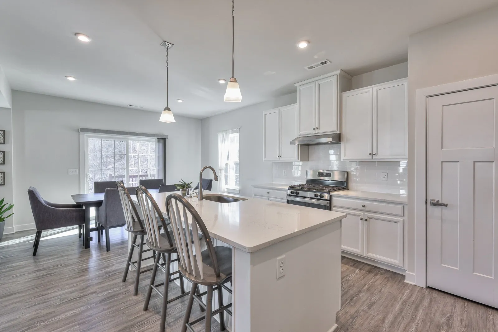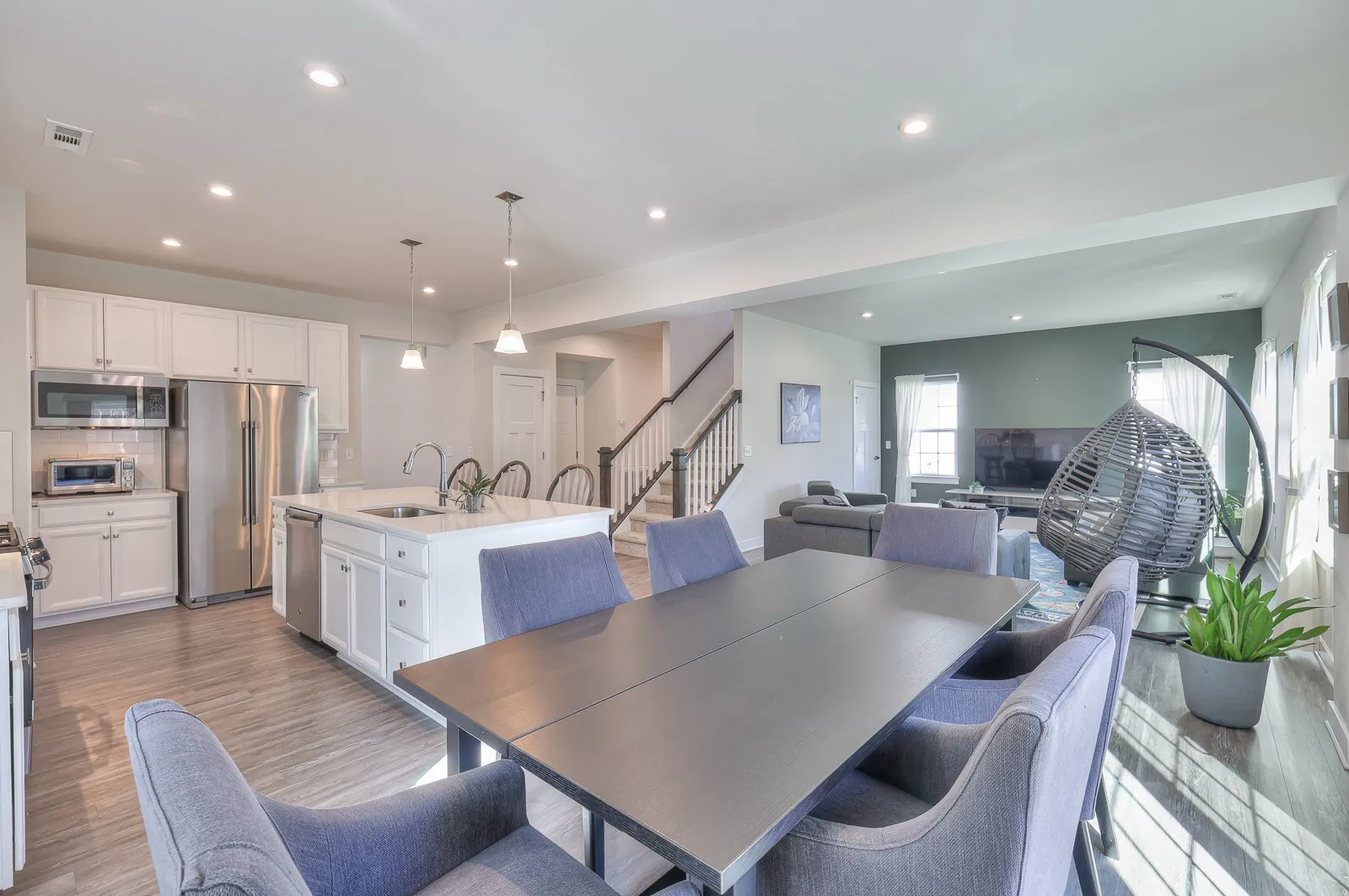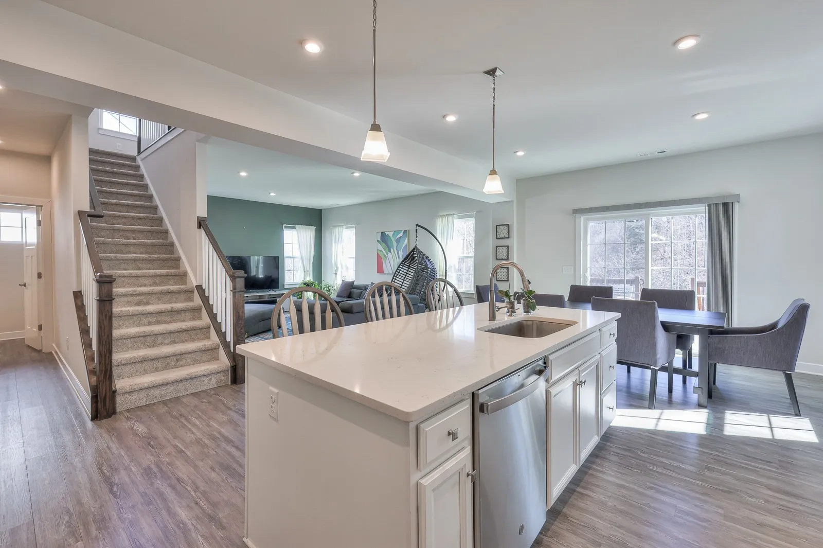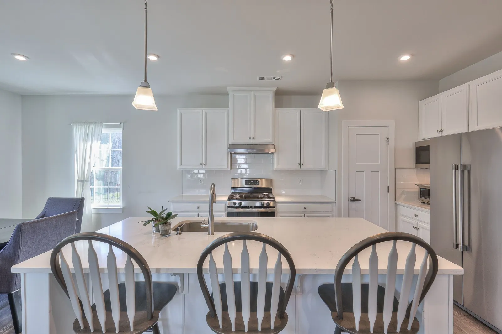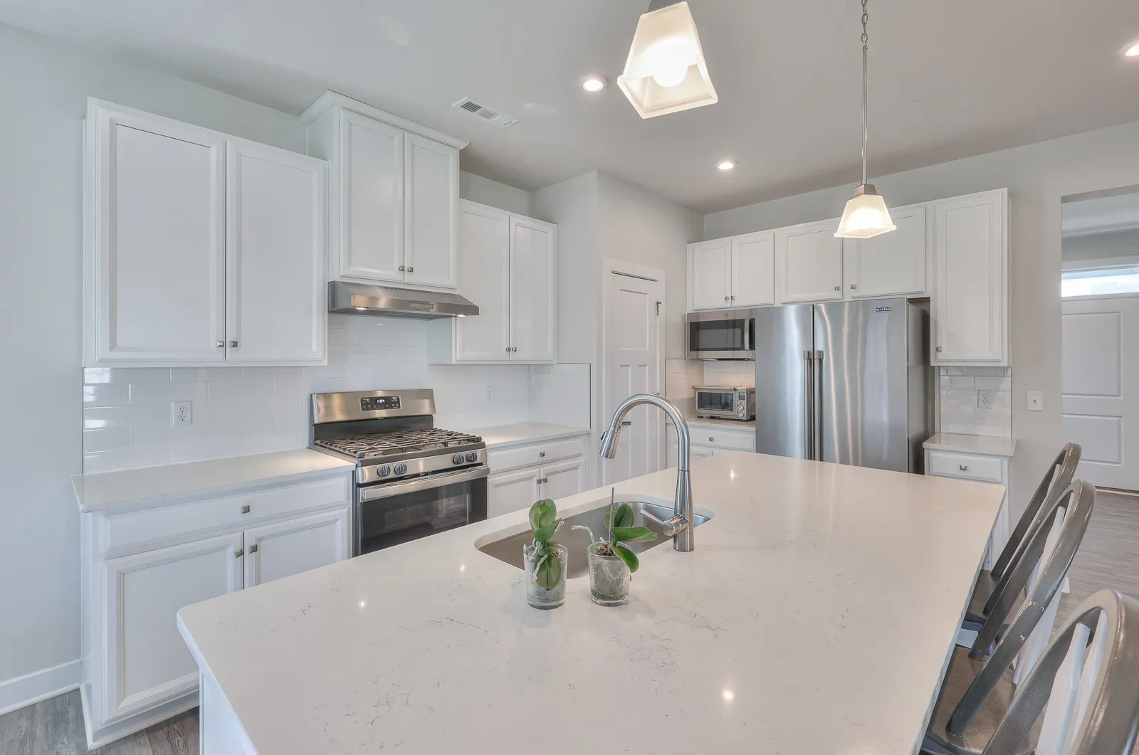 Welcome to 1104 Watermark Way in Nichols Vale! This 4-bedroom 2.5 bathroom home sits on a private treelined lot and has been meticulously maintained! On the first floor you will find the kitchen – featuring quartz counter tops, gas stove, oversized island and breakfast nook – living room, half-bath, and a flex room that can be used as an office, formal dining room, or playroom. Upstairs you will find all 4 bedrooms, including the owner’s suite with his and her walk-in closets and en suite bathroom. The laundry room is also conveniently located on the second level of the home. The private treelined lot backs up to HOA-owned property and is close to the pool, walking trails, and playground!