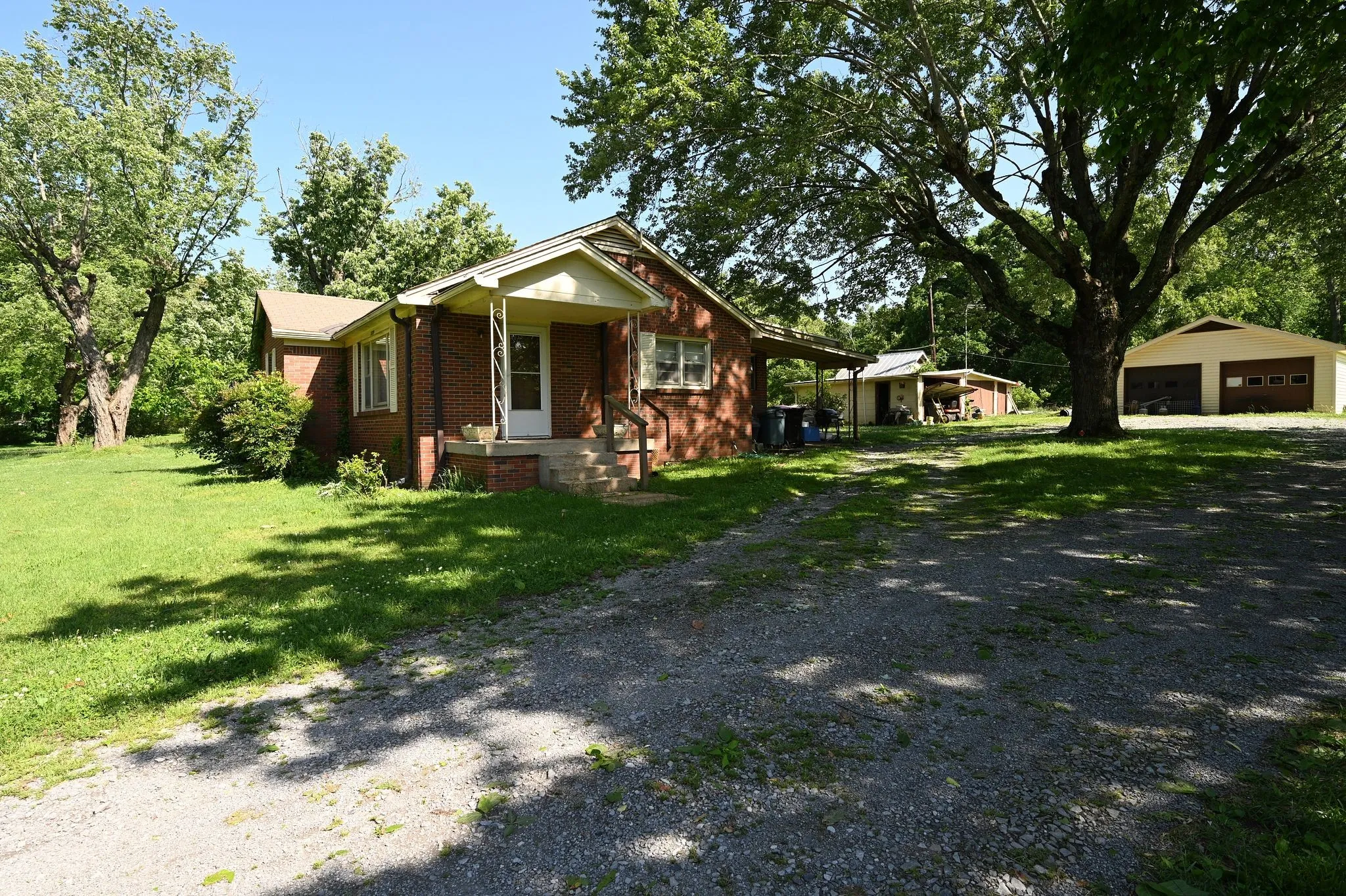 All brick on 1.1 Acre Selling As Is – Eat-in Country Kitchen with tons of cabinet space – Pantry – Nice sized Living Room – 2 Car Detached Garage – Storage Building -And so much more!!