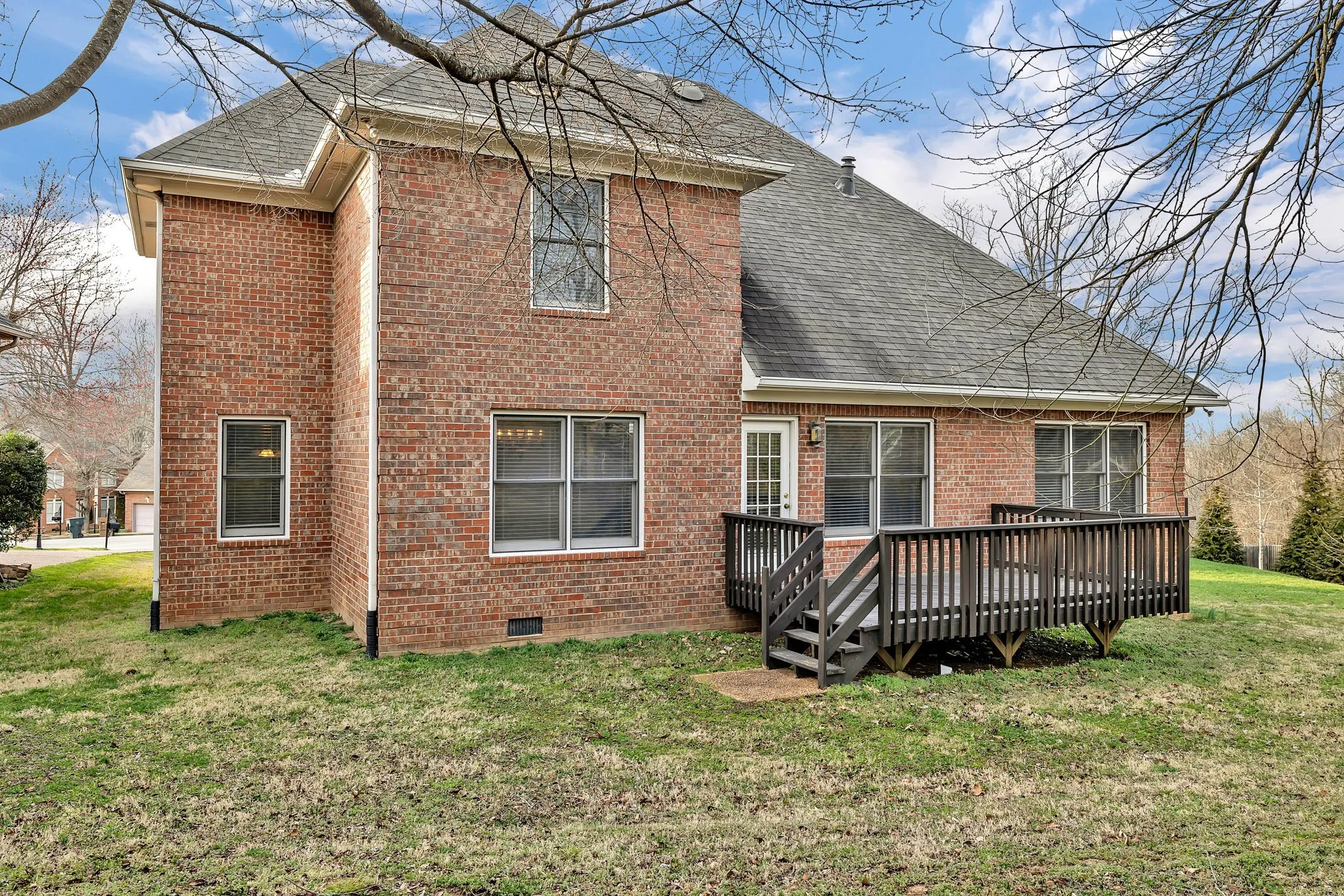 Located on a cul de sac in the heart of Donelson, this all-brick home features soaring ceilings, an abundance of natural light, a living room with a fireplace, the primary suite on the main level, large secondary bedrooms with generous closet space, laundry room, a separate bonus room on the second floor, a large deck overlooking your spacious backyard, and a two car attached garage. All your neighborhood hotspots, including the Greenway, the YMCA, Edley’s, and McNamara’s, are nearby.