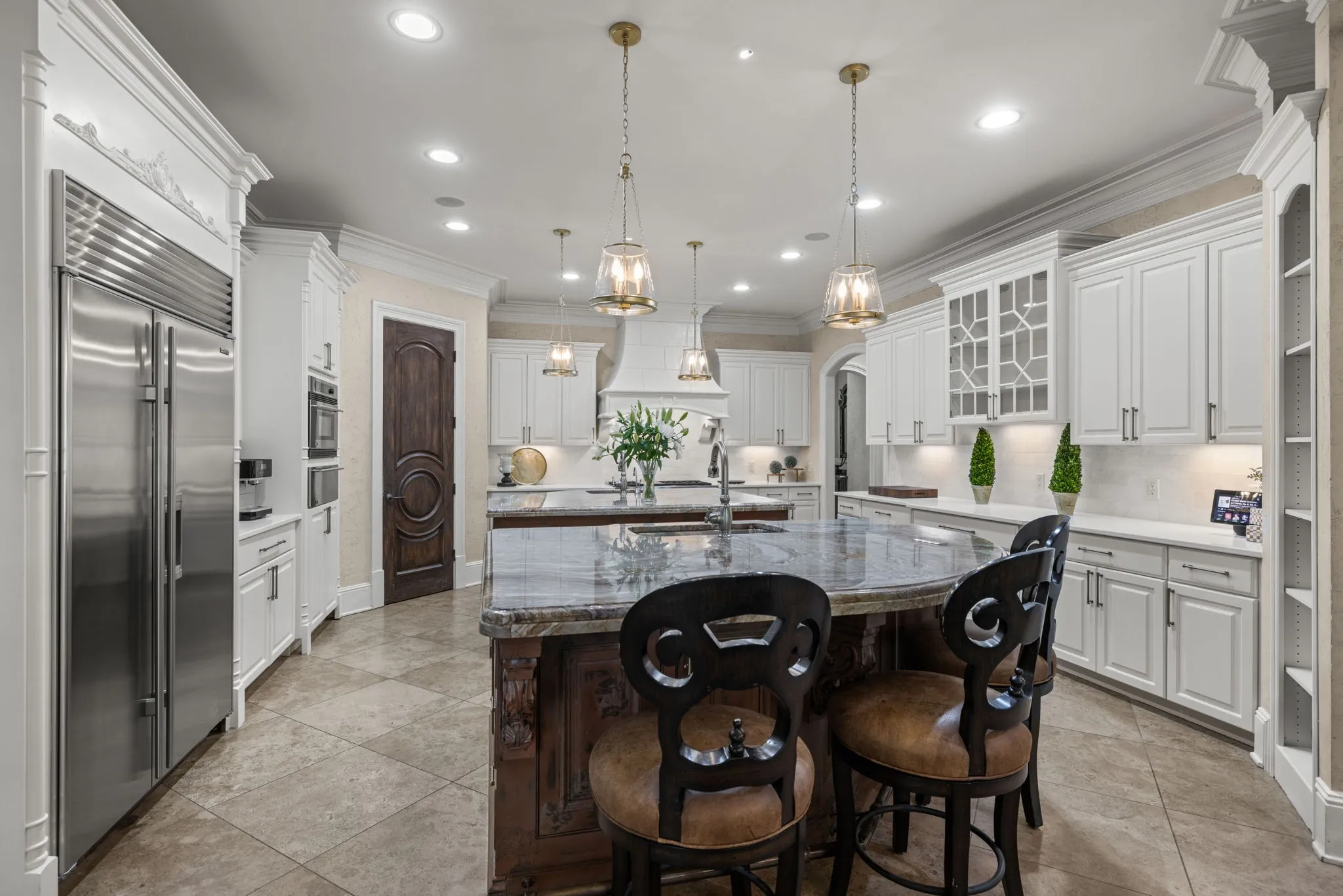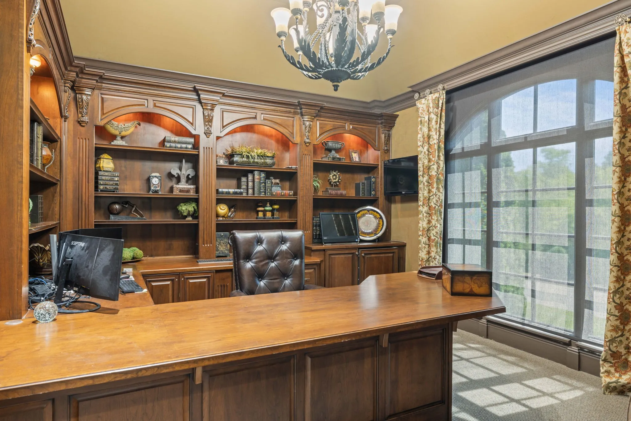 Luxurious Estate in the Gated Community of Governors Club located on an Arnold Palmer Signature Golf Course lot. Stunning property has a private oasis in the back yard featuring a swimming pool, waterfall, outdoor kitchen, water slide, pool bath and more. This spectacular home has a theatre, bowling alley, billiards, indoor basketball court, entertaining game room, golf simulator & more. There are private guest quarters with a kitchen, living room, 2 bedroom suites and a separate entrance. The tour bus sized garage offers space for up to 9 cars. Gorgeous views of the lake and golf course.
