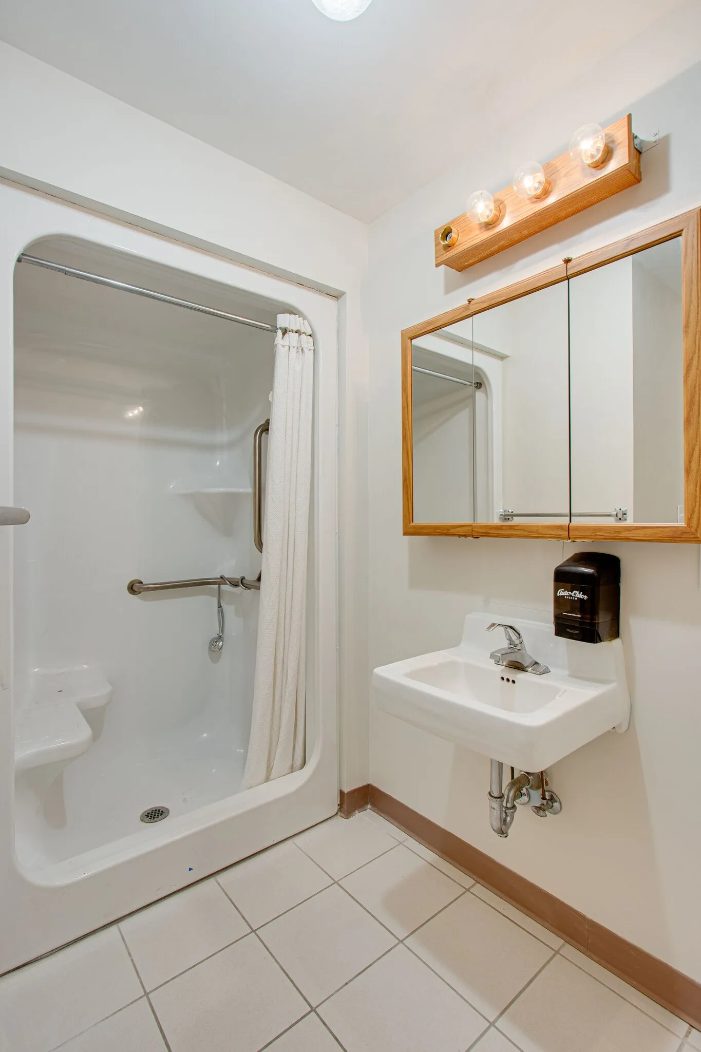"LongDescription" => "Another one of the large newly tiled showers with fold down bench."