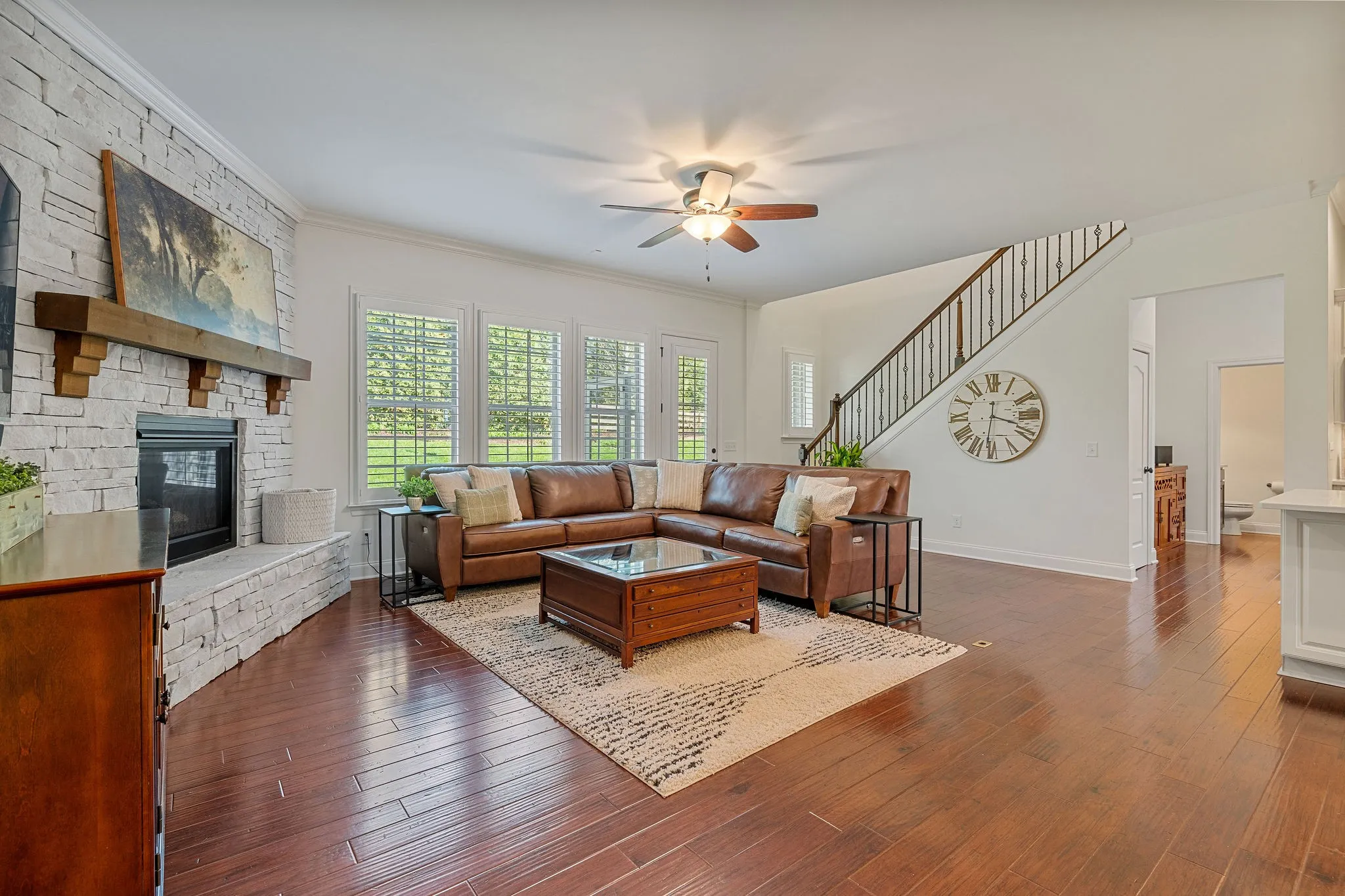 Nestled in the prestigious Breezeway neighborhood, newly renovated & situated on a quiet cul-de-sac, this elevated lot boasts a spacious front porch w/ stunning hillside views, private backyard setting, & ZONED (Clovercroft+Woodland+Ravenwood) walk to elementary! This all-brick beauty features predominantly main-level living with 3 BR’s on the main, the open floor plan seamlessly connects the kitchen, dining, & den, accentuated by a striking stacked stone fireplace & complemented by plantation shutters throughout. Upstairs, discover a spacious bonus room, & oversized 4th BR with en-suite BA, expansive walk-in attic offers convenient storage, showcases 2 designated office spaces on the main. Outside, a screened patio overlooks a private backyard oasis. Practical amenities such as irrigation,3-car garage, up lighting, in-ground basketball hoop, laundry w/ storage & utility sink, drop zone off garage. meticulously kept, encapsulated crawlspace!
