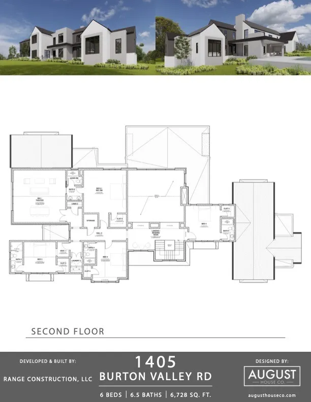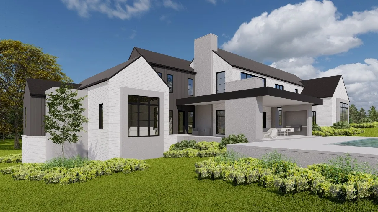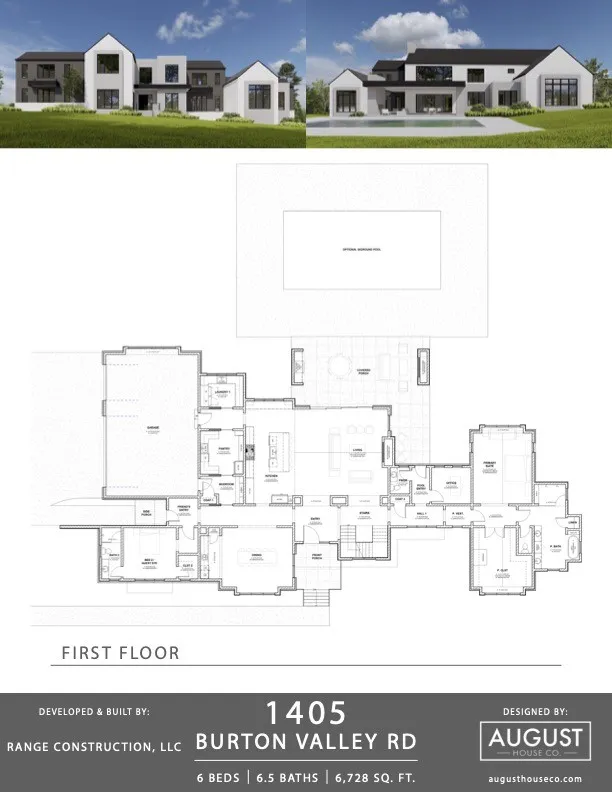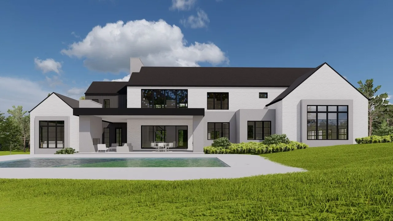 Stunning New Contemporary Home designed by August House Co. and Built by Range Construction. You will be amazed at the 30ft cathedral ceiling in the living room, anchored by a limestone fireplace. The gourmet kitchen features a 10ft quartzite island with waterfall edge, Fisher Paykel appliances, custom cabinetry and huge windows overlooking the spacious back yard. The adjacent prep kitchen/pantry, makes this home perfect for culinary experiences. The formal dining room boasts a bar and custom wine storage wall. Luxurious Primary Suite, inviting guest suite along with a home office complete the first floor. Laundry rooms on each floor. Four bedrooms, three baths, extraordinary bonus with flex room on second floor. Seamless Indoor/Outdoor living is facilitated by the multi-slider door to the spacious 35 ft. covered porch complete with gas fireplace and grill. Nestled in an incredible location, this home offers sophistication, comfort and convenience. Pool not included but can be added.