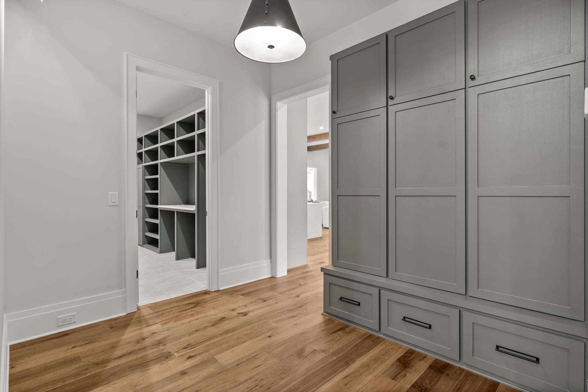 Interior Features Walk-In Closet(s), Primary Bedroom Main Floor, Pantry, Wet Bar, Smart Thermostat, Storage, Ceiling Fan(s), Extra Closets, Entry Foyer