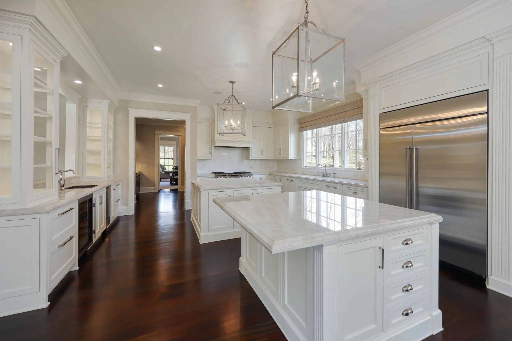 Welcome to this beautiful custom home on level 2 acre lot. The luxury finishes & quality craftsmanship throughout make this home an entertainers dream. The updated chefs kitchen with custom cabinets, quartzite counters, 2 dishwashers, 2 sub zeros, 2 islands & top of the line appliances opens to the covered back porch with fireplace overlooking a large backyard that can accommodate a pool & pool house. Wet bar with wine refrigerator, ice maker & refrigerator drawers. No detail left out in this 6 bedroom all ensuite bath home with updated plumbing & lighting fixtures. Primary suite on main level with separate walk in closets, washer/dryer & large marble bathroom. There are several family living & entertaining areas in this 3 story home that include a den, living, dining, game, theatre & bonus rooms. Office areas & laundry on 1st & 2nd floor, 2 half baths & a 4 car oversize garage. Please come in person to see all the the high end details this home has to offer.