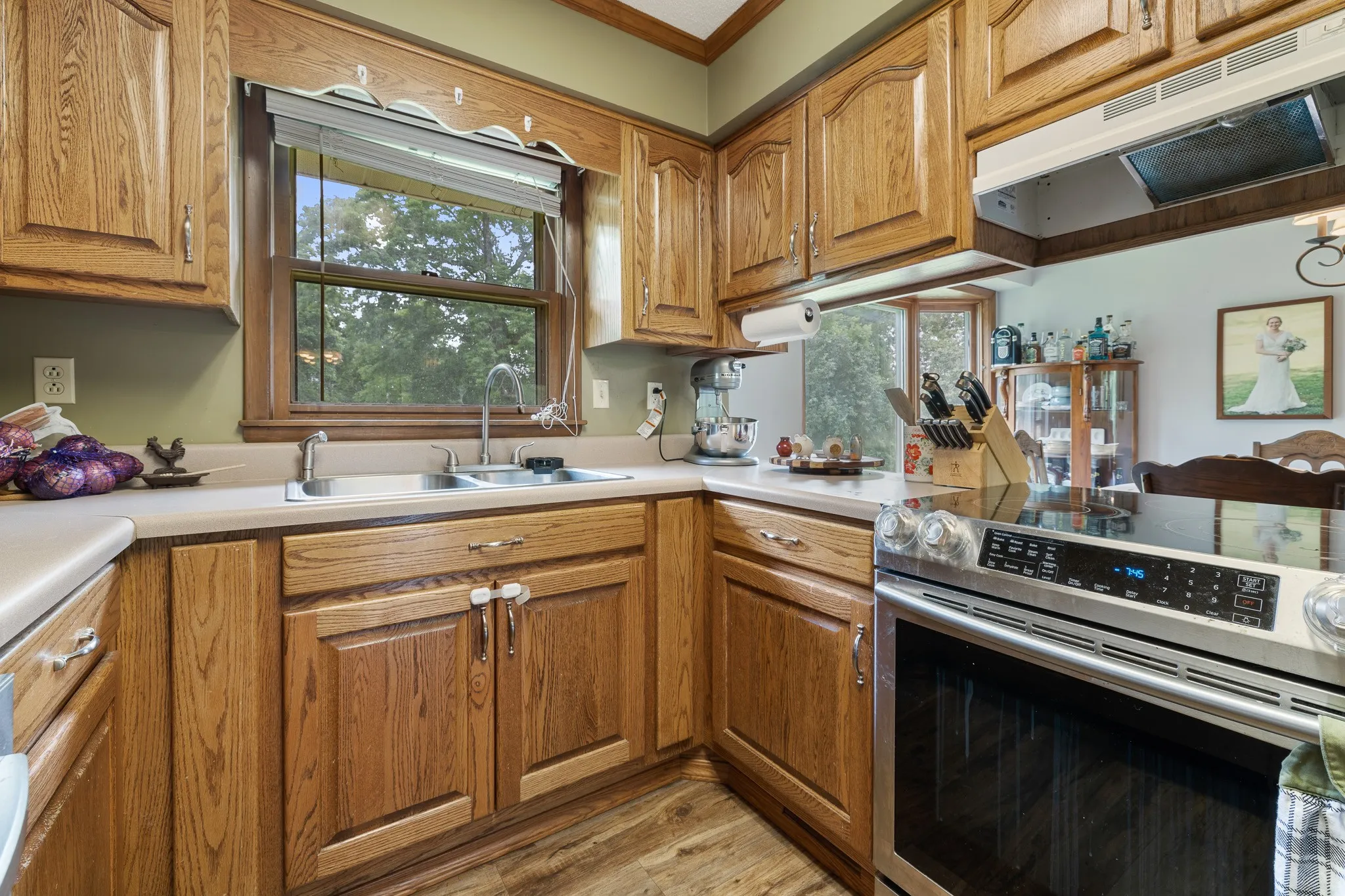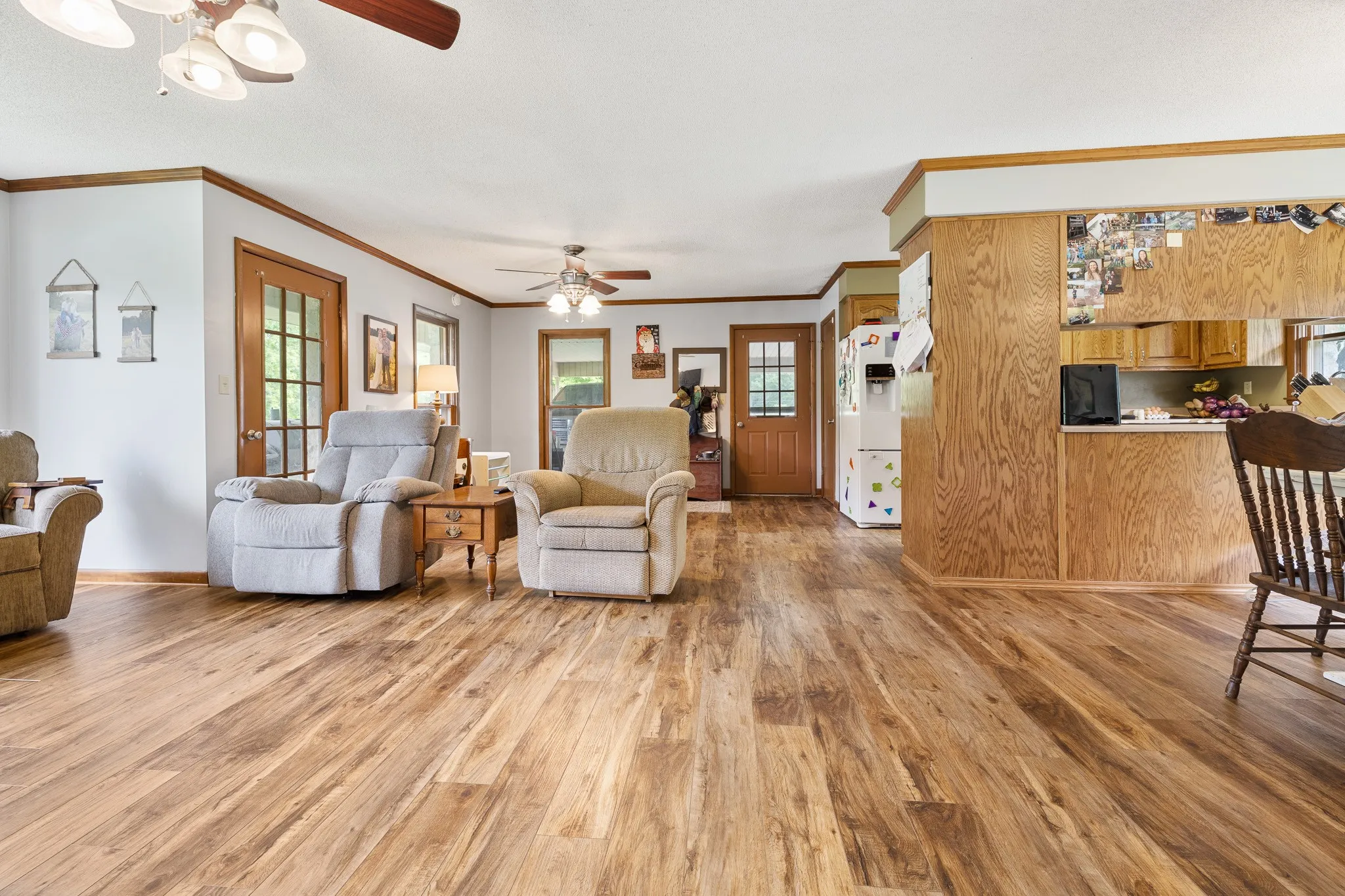 If you are looking for country charm in an old town neighborhood, this is the place! Comfortably built in 1981, this rock adorned ranch has 3 bedrooms and 2 bathrooms. Built for gatherings, the originally designed open concept home begs for friends and family to congregate. The galley style kitchen has countertop access to the dining space for buffet style meals while the dining room allows for extra elbow room boasting a bay window to the back yard. Downstairs, you will find a wood stove that has been plumbed to heat the entire home for a cost saving measure. The basement is a blank slate, fully open with nooks for canning or dark room for root vegetable storage. It also houses a kitchenette as well as a storm safe room which has direct access to the outside of the home and is located directly under the back concrete porch. With a drive that wraps around the side of the home, you will find it easy to access the heated & cooled 29×30 2-bay shop. Make sure to visit this lovely home!