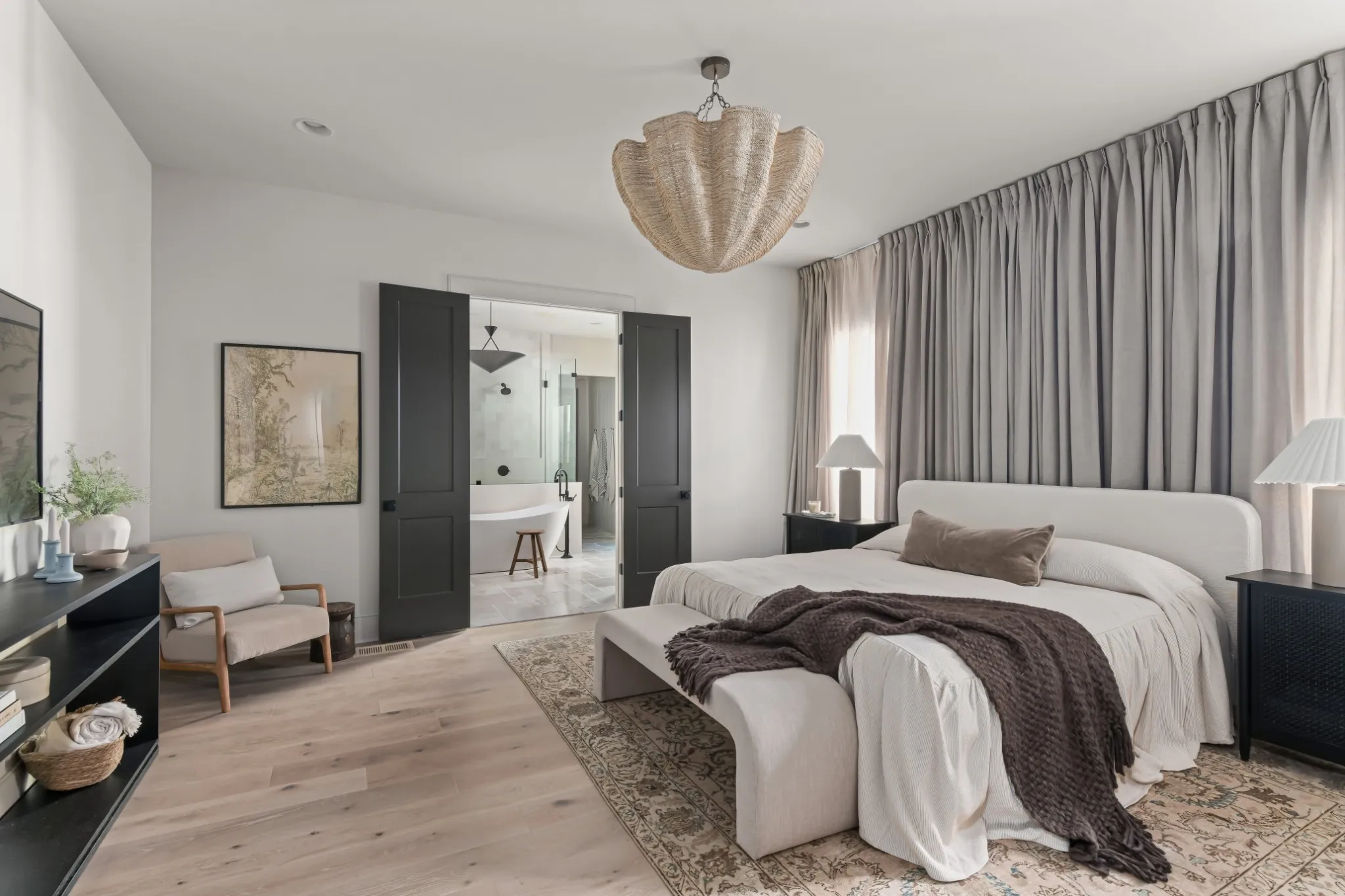 Situated among 4 other brand new Millworks properties located on a beautiful, quiet street connecting you to everything Green Hills offers. A truly unique offering, this hillside home offers warm, neutral tones complimentary of its natural surroundings. Privacy, exceptional finishes, functional layout, and a vibe you have to experience to understand! Main floor consists of great room, kitchen, dining, office, and primary suite; upstairs includes four ensuite guest rooms and central bonus room; basement offers huge three car garage w EV charging, and flex space with ensuite bath. Elevated rear yard offers great flat space with beautiful city views ready for your imagination and unlike anything else you’ll find. Completed by Millworks Q1 2024.