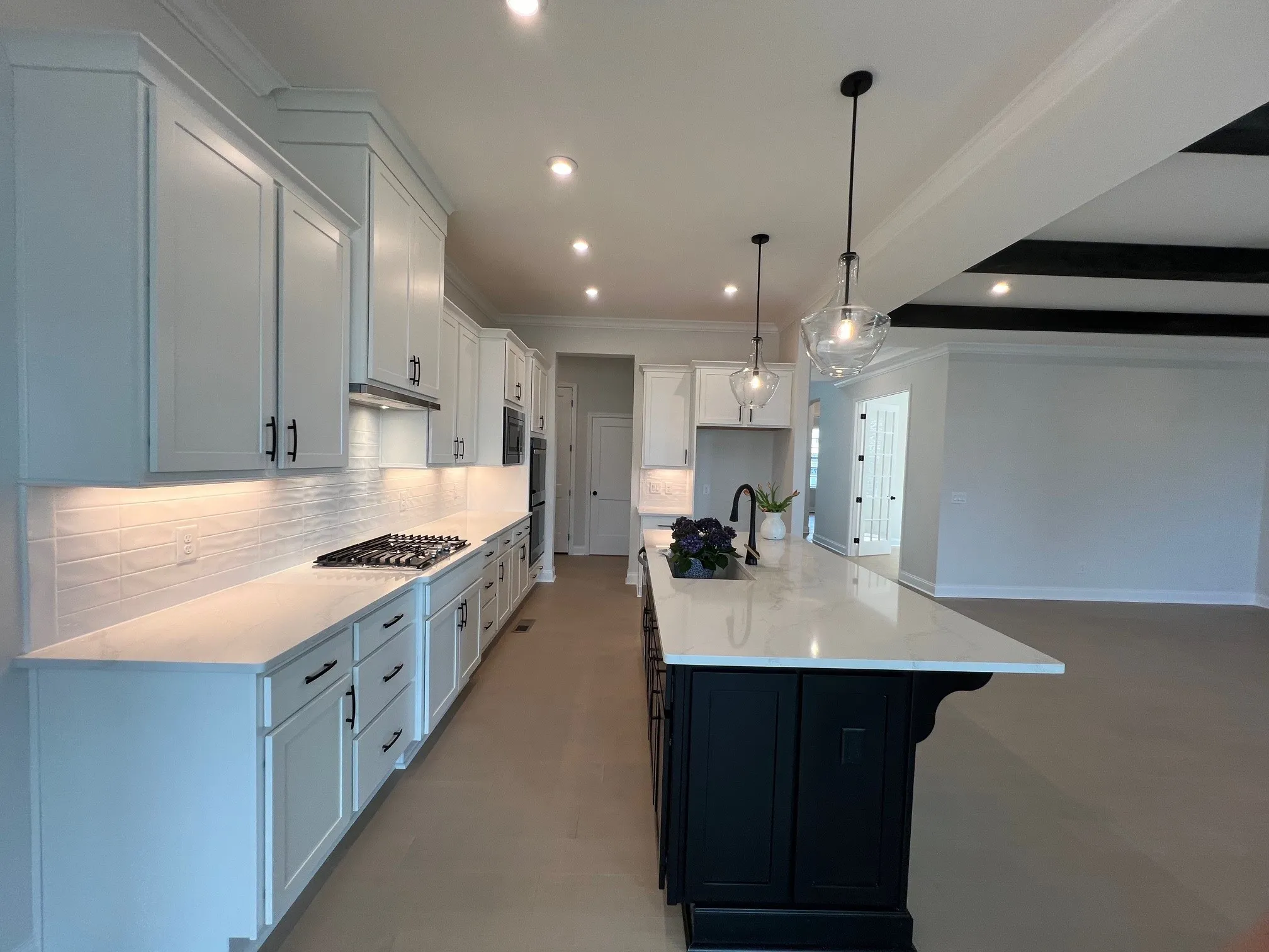 New in Littlebury-The Colton. SPECIAL Move in package – Blinds, refrigerator and washer/dryer INCLUDED! Plus, ask about closing costs incentive with our preferred lender. 1/3 acre corner site with large driveway for extra parking and minimal entry steps. Popular 5 bedroom plan with spacious, functional layout and 3 car garage. The main level features Primary and Guest suites, private study, beautiful open kitchen with double ovens, gas cooktop, large island, rear covered porch with fireplace, primary bath w/ separate vanities-tile shower-FS tub, cedar beams and fireplace in family room, Family Foyer drop zone, and spacious laundry. The second level includes game room, media room, unfinished storage area, wet bar, plus 3 additional bedrooms and 3 full baths. All hardwood on main level (except tiled areas) upgraded quartz, tile, and trim. Plus, home automation, WiFi signal expansion, video doorbell, fully sodded and irrigated yard are included!