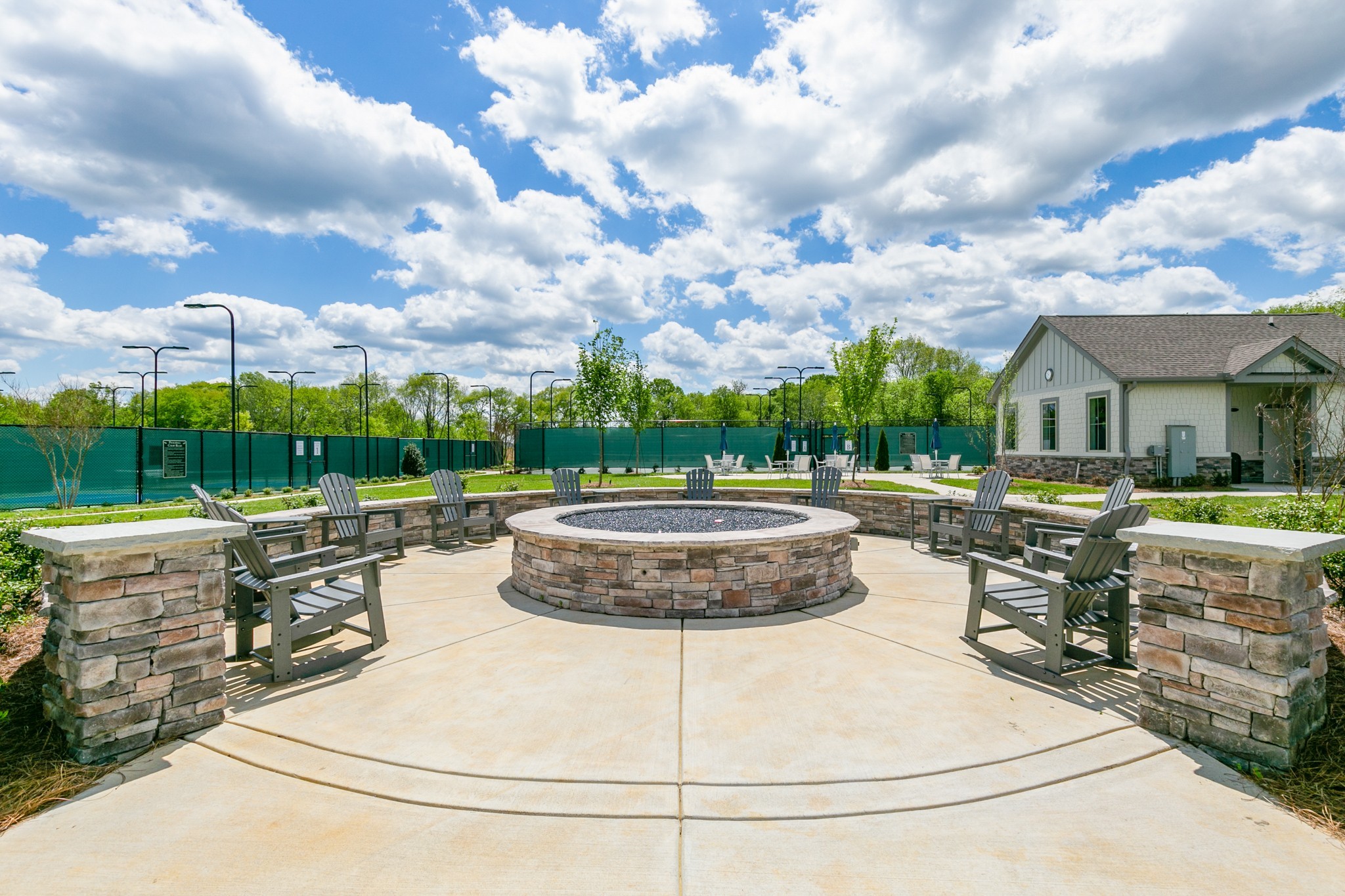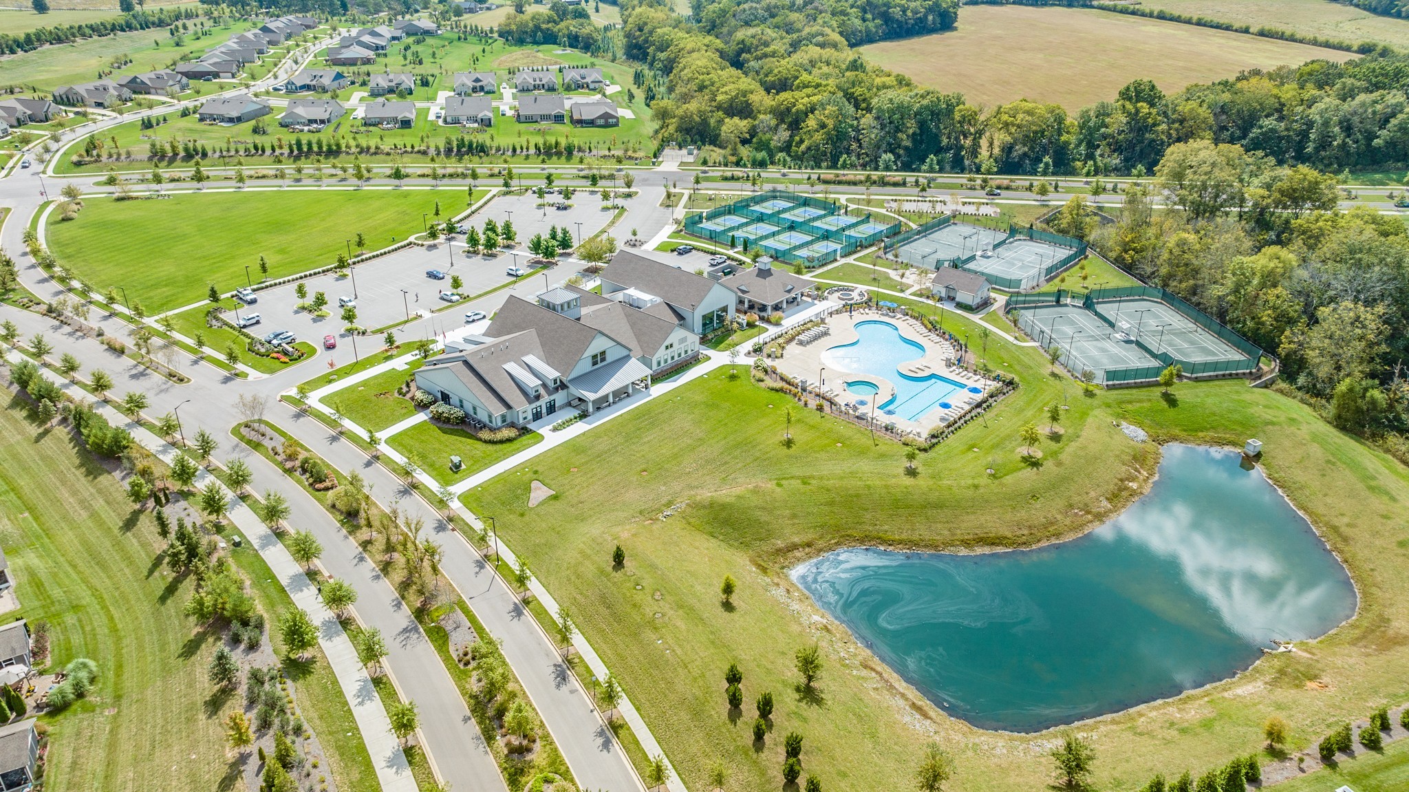 "LongDescription" => "Aerial of the amenity center, pools, tennis courts, pickleball courts, outdoor fire pit and grilling patio."