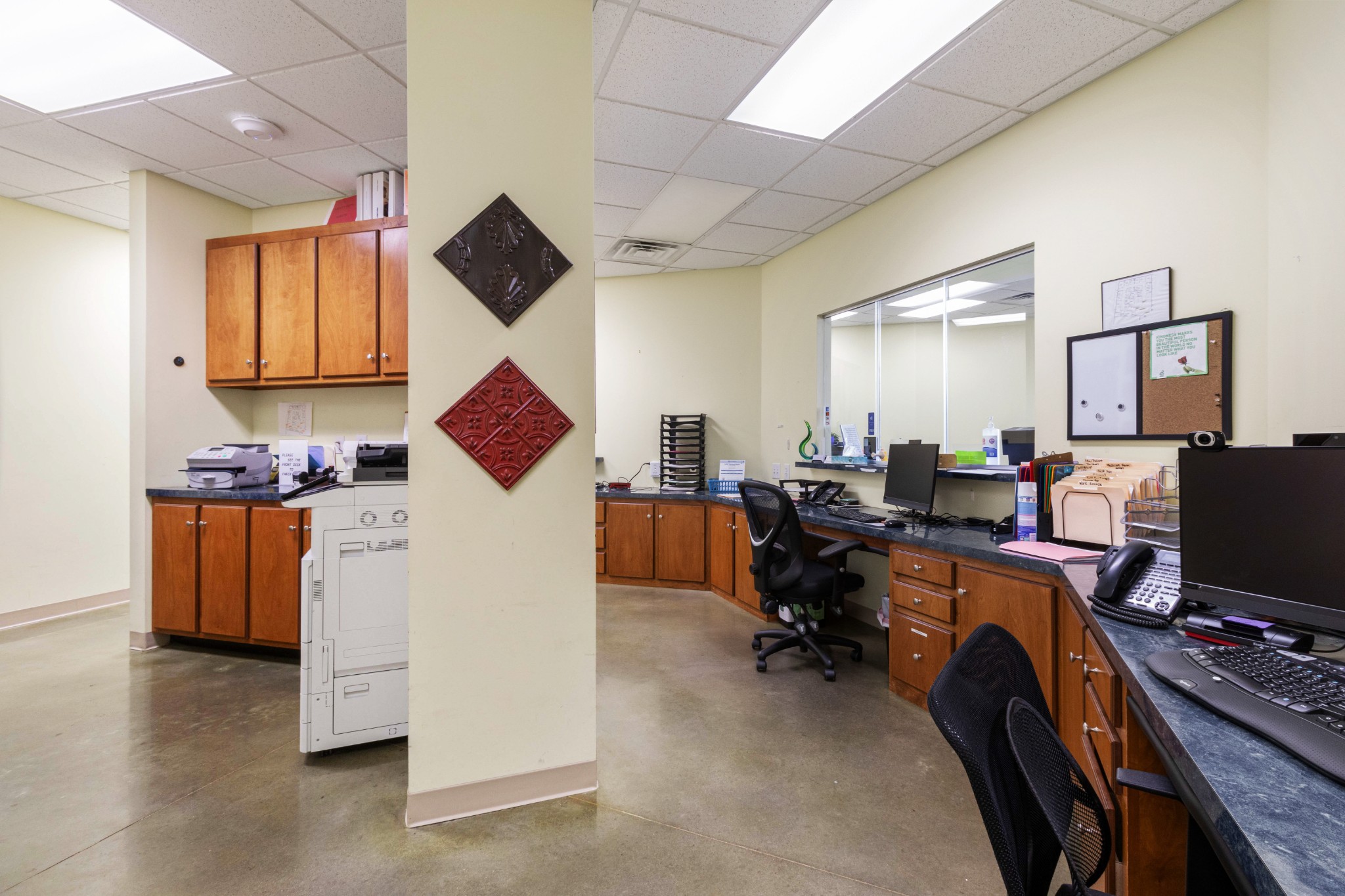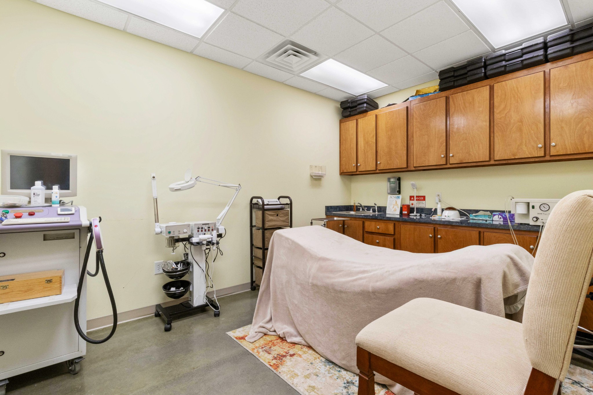 Large center space located within a condominium style building. Already built out for medical use. Current features include two procedure rooms, three individual Doctor’s offices, nine exam rooms, one private bath with a shower stall. A restroom in the lobby and three additional restrooms with pass through for lab work, a large nurse’s station and additional smaller nurse’s station as well as a seated lab space, and a large break room and utility area with laundry, There is an office manager office inside the lobby area as well as a storage room and records storage area. Ample sized waiting sized waiting area. Located within minutes of Warfield Blvd/101st Parkway, Wilma Rudolph Blvd, Tennova Medical Center, and I-24.