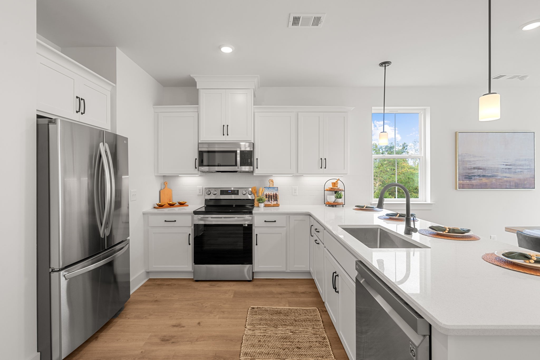 Located In Riverwalk subdivision on a ridge surrounded by lush green trees, this community is tucked away from it all yet only minutes from I-40 and Nashville. This quaint development consists of 61 townhomes and has access to amenities that include 3 pools, playground, walking trails by the Harpeth River, pavilion with picnic tables and fireplace. Beautiful curb appeal with brick or Hardie exteriors with 3 beds, 2.5 baths plus a 1 car garage. Highly upgraded features include: hard surface flooring on 1st floor, oak stairs, quartz countertops throughout, white cabinets, subway tile backsplash, black hardware & faucets, craftsman trim details, double vanities, subway tile shower and water closet in owner’s suite.