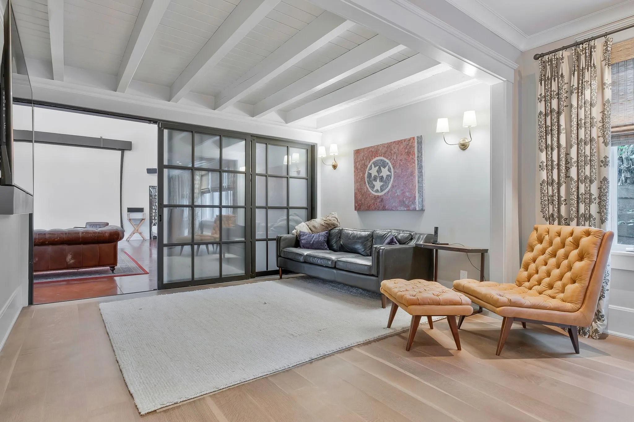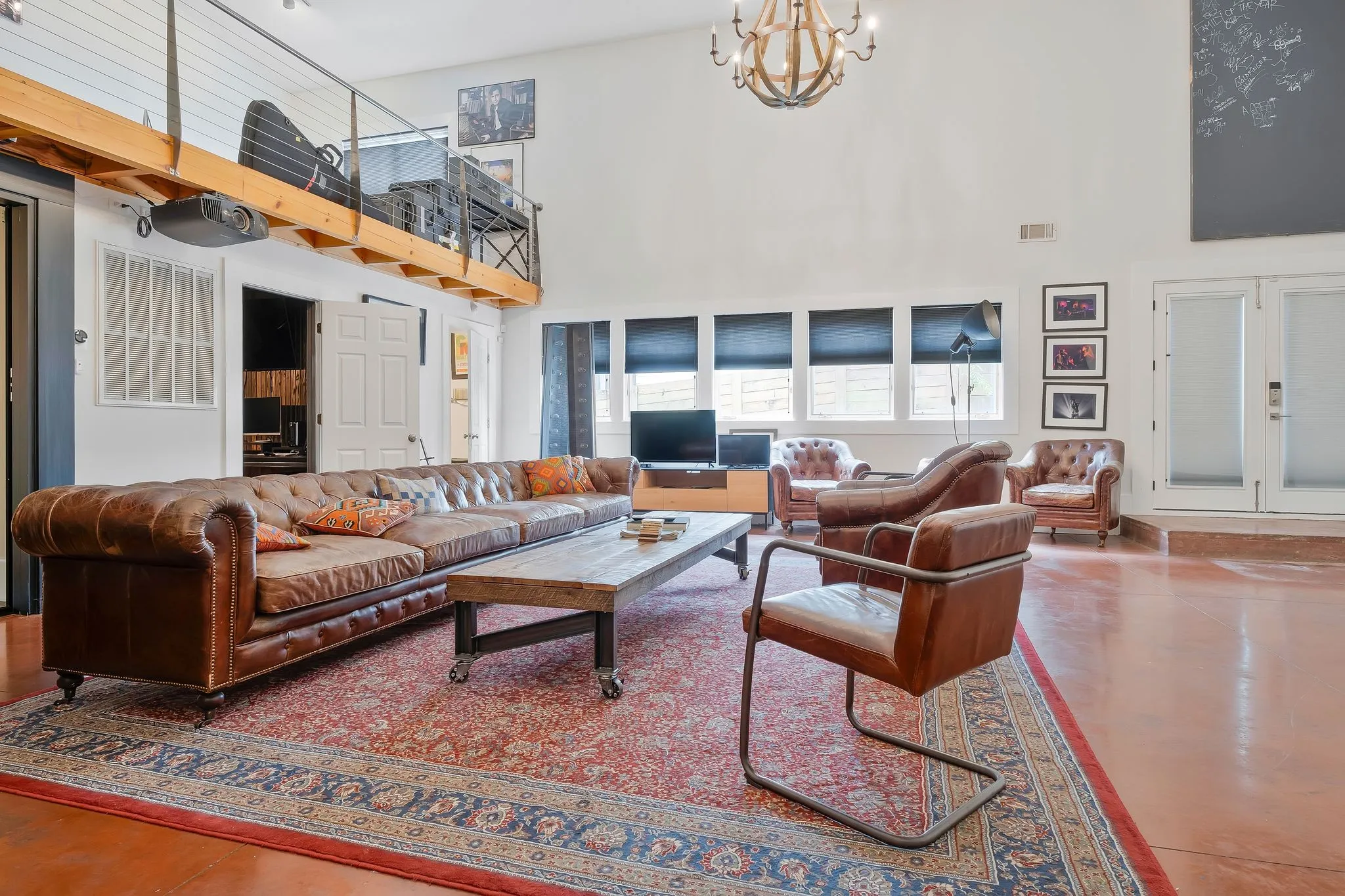 Remarkable Property! Two story totally equipped projection studio with a large office area above. Perfect for film & recording. The historic home has been completely renewed inside, living room w/ fireplace, den and totally new kitchen with lux appliances. Master up with marble en suite bath. two additional bedrooms up and utility area. All appliances provided & lawn care included. Move into this artistic property & begin creating today. Available vacant or partially furnished for additional rent & deposit.