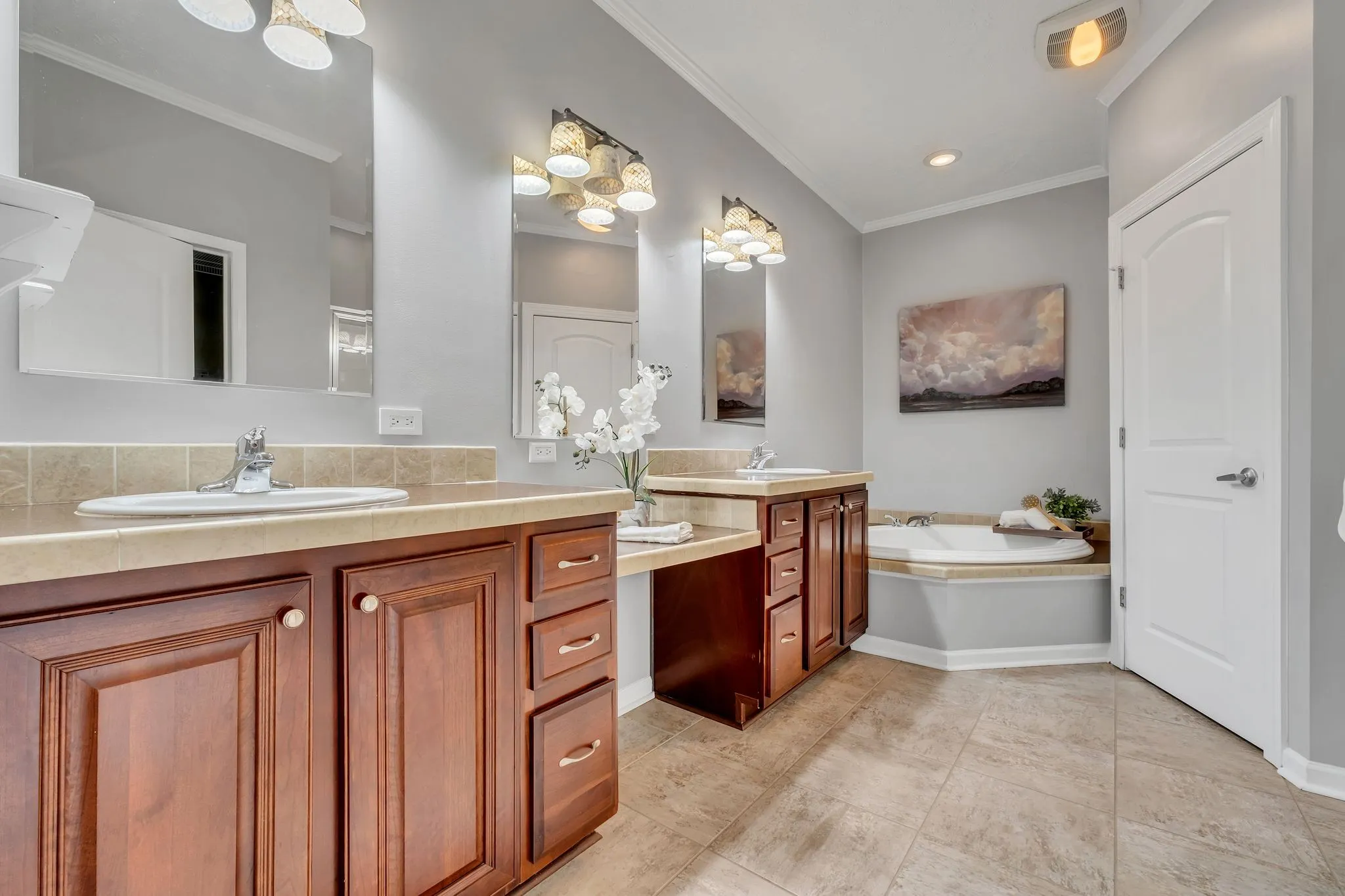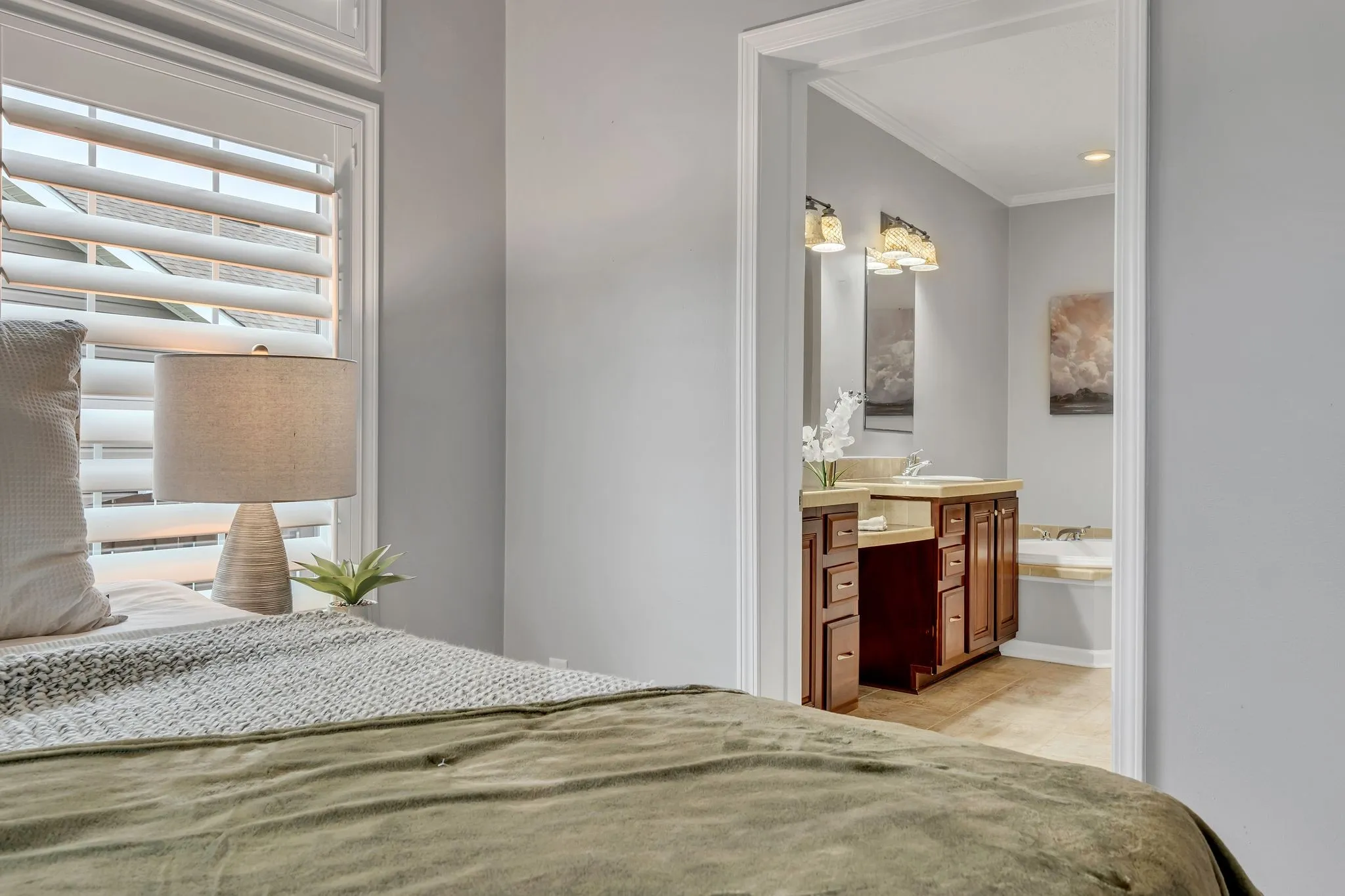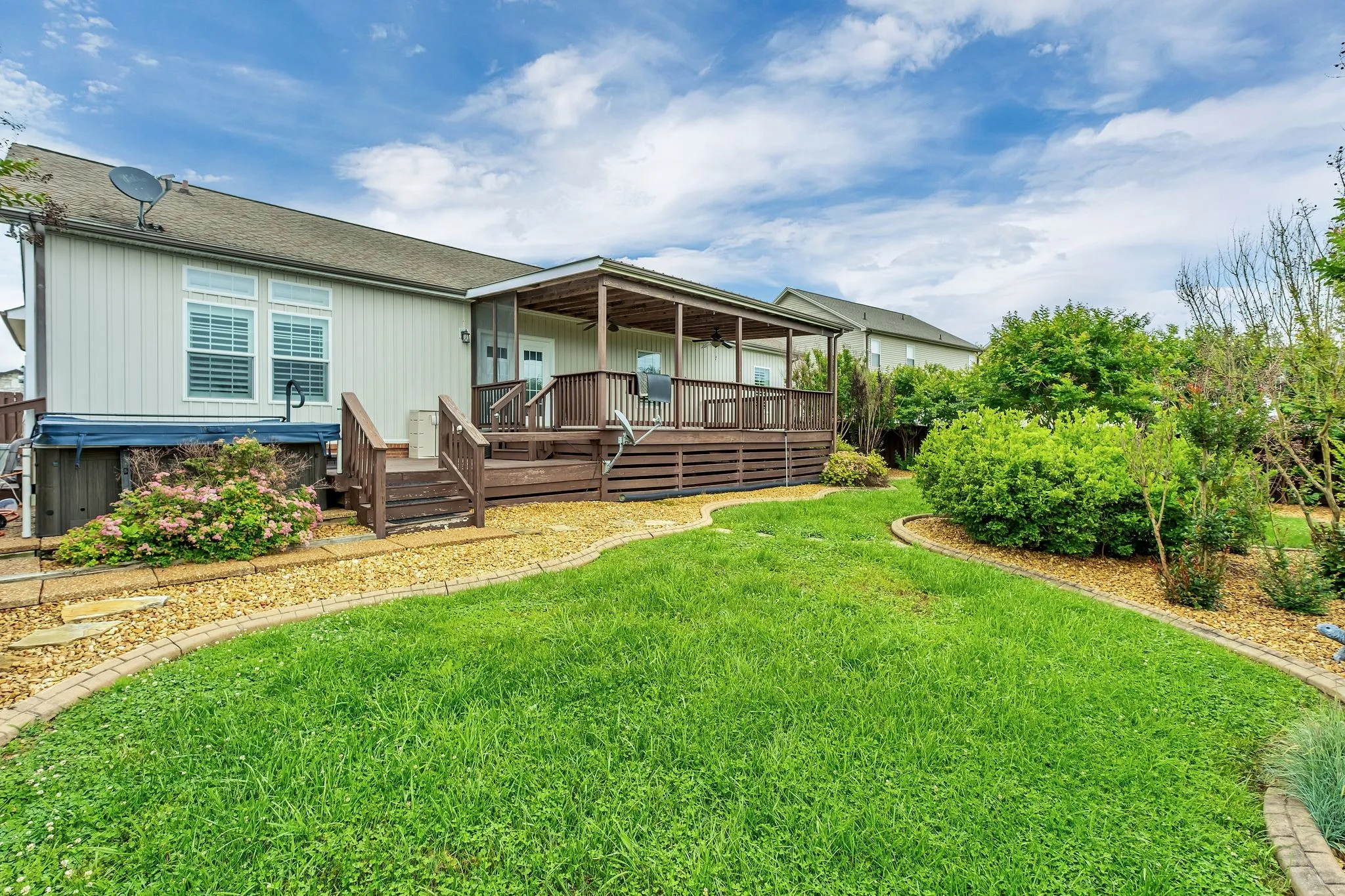 Beautifully Maintained, Sparkling Clean, Ranch Style Home on a Well Manicured, Quarter Acre Lot! Fenced backyard with an oversized covered deck and large jacuzzi! Oversized Owner’s Suite! Freshly painted secondary bedrooms. Plantation shutters throughout the home! Spacious kitchen with lots of cabinet space and storage. Hard surface flooring throughout the home in excellent condition. No carpet! Extra “3rd space” Parking Pad in driveway. Full yard irrigation system.