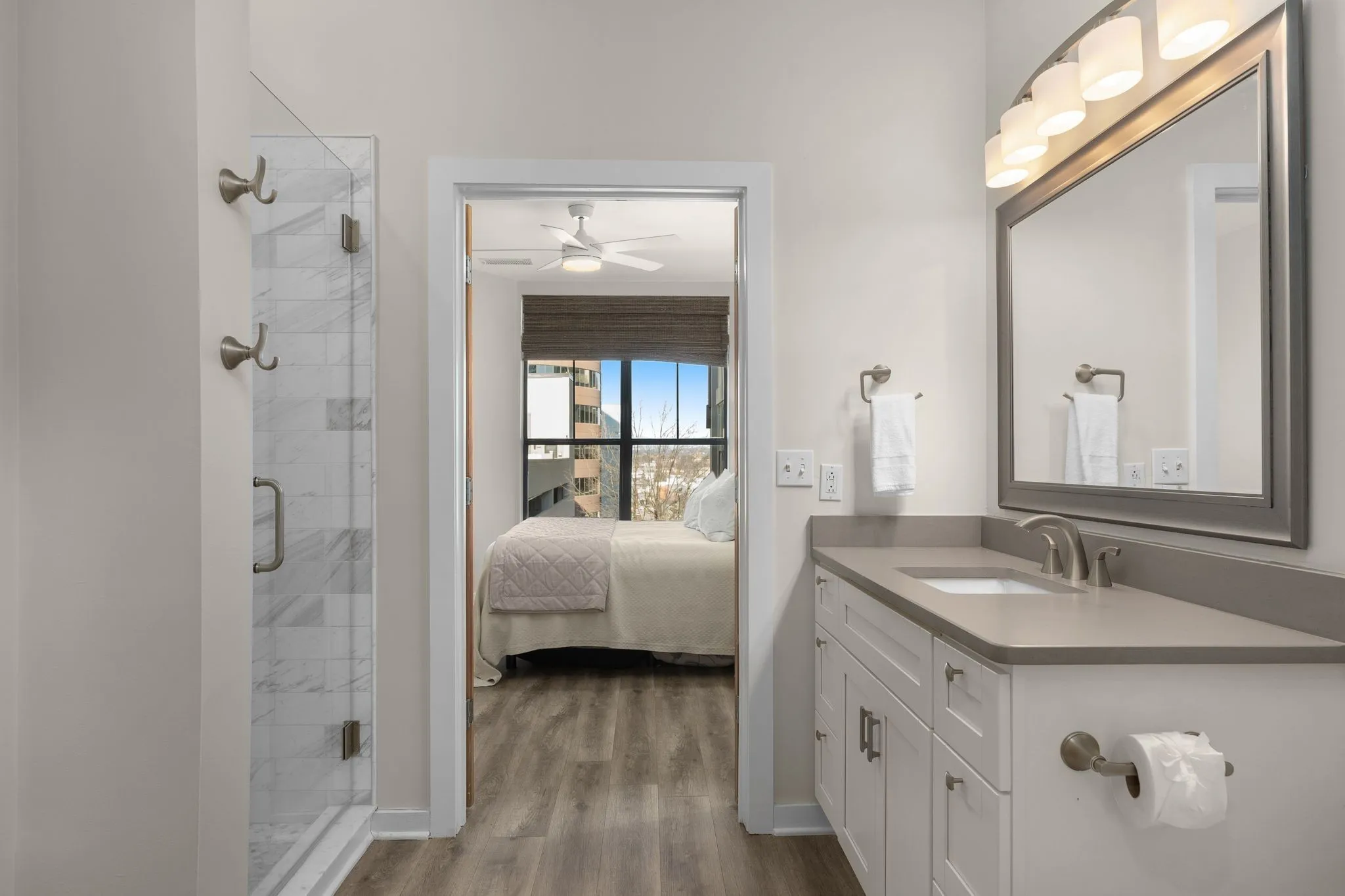 The Bristol on Broadway, a prestigious residence offering unparalleled access to the vibrant heart of downtown Nashville. Situated amidst the city’s premier shopping and dining destinations, this centrally located condo presents a unique opportunity to indulge in the finest aspects of Nashville’s dynamic lifestyle.Spanning one of the largest one-bedroom layouts within the building, this meticulously updated residence seamlessly combines modern design with functionality.With the potential to convert an office area into a guest bedroom, the versatile floor plan ensures adaptability to suit various living arrangements.Step inside to be greeted by a sophisticated ambiance accentuated by upgraded flooring and stylish new light fixtures. The spacious open floor plan creates an inviting atmosphere, perfect for both relaxation and entertainment.Additionally, the inclusion of two assigned parking spots adds a rare convenience to urban living.