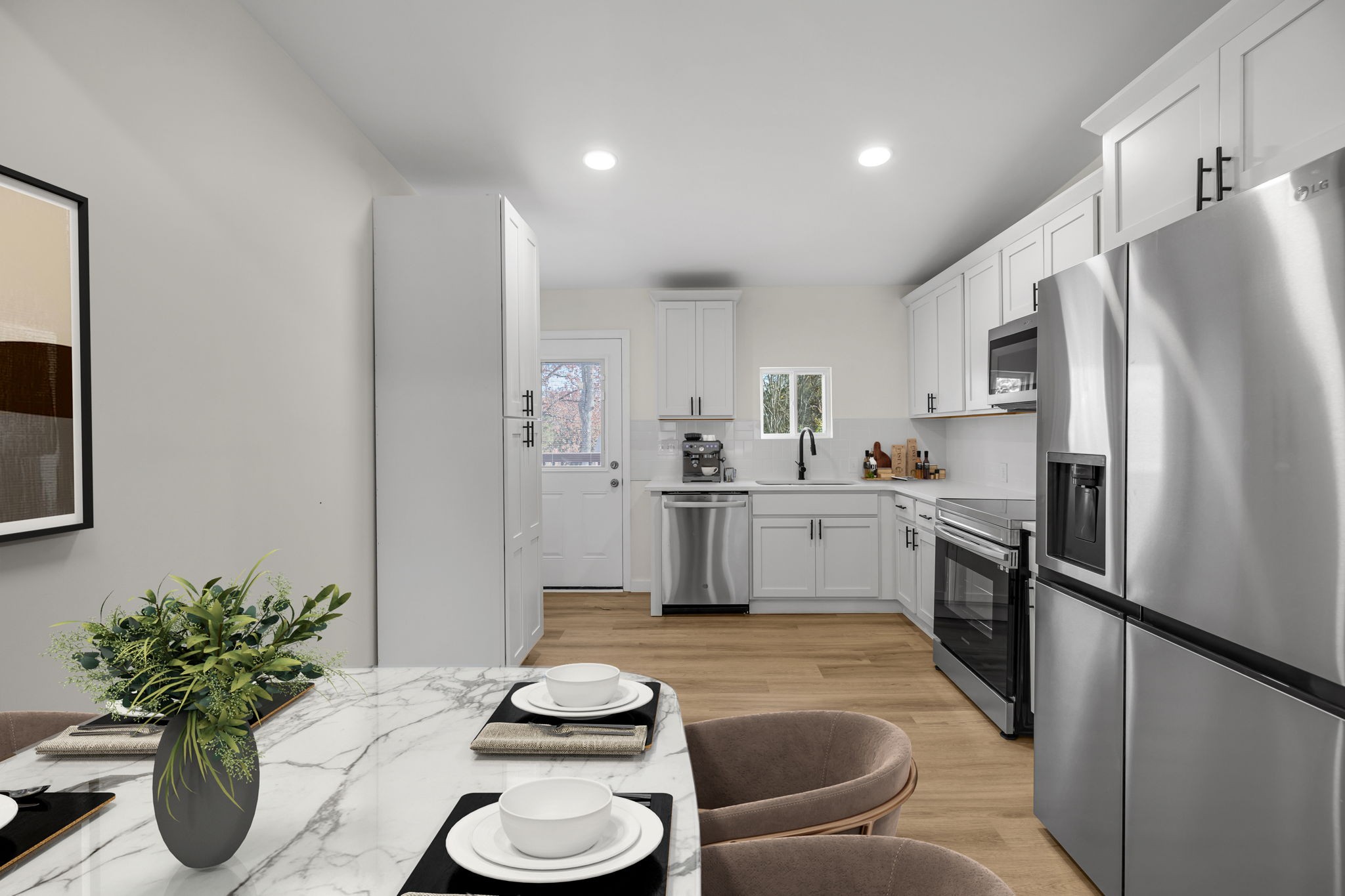 Discover contemporary living in this renovated Madison bungalow, moments from Downtown Nashville and East Nashville’s allure. The open layout seamlessly integrates the kitchen, dining, and living areas, enhanced by rare nine-foot ceilings. The kitchen is a culinary haven with soft-close cabinets, stone countertops, upgraded tile, pantry cabinets, and modern appliances. Upscale bathrooms offer stylish tile, stone countertops, and clever storage. Outside, a treasure awaits on a flat lot over a third of an acre, with a back deck ideal for seamless indoor-outdoor living. Experience modern living with easy access to Downtown, Madison, and East Nashville attractions—an invitation to Nashville’s best lifestyle!