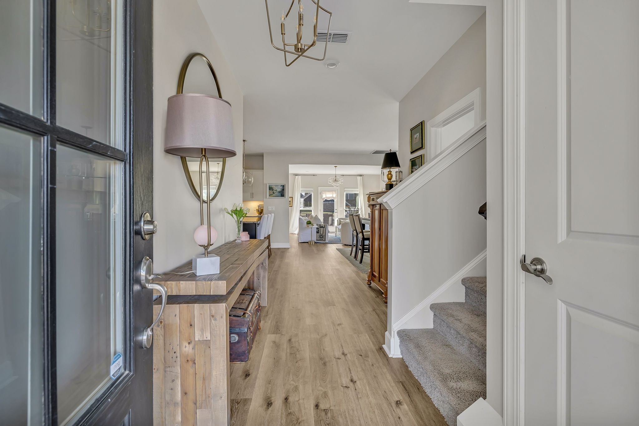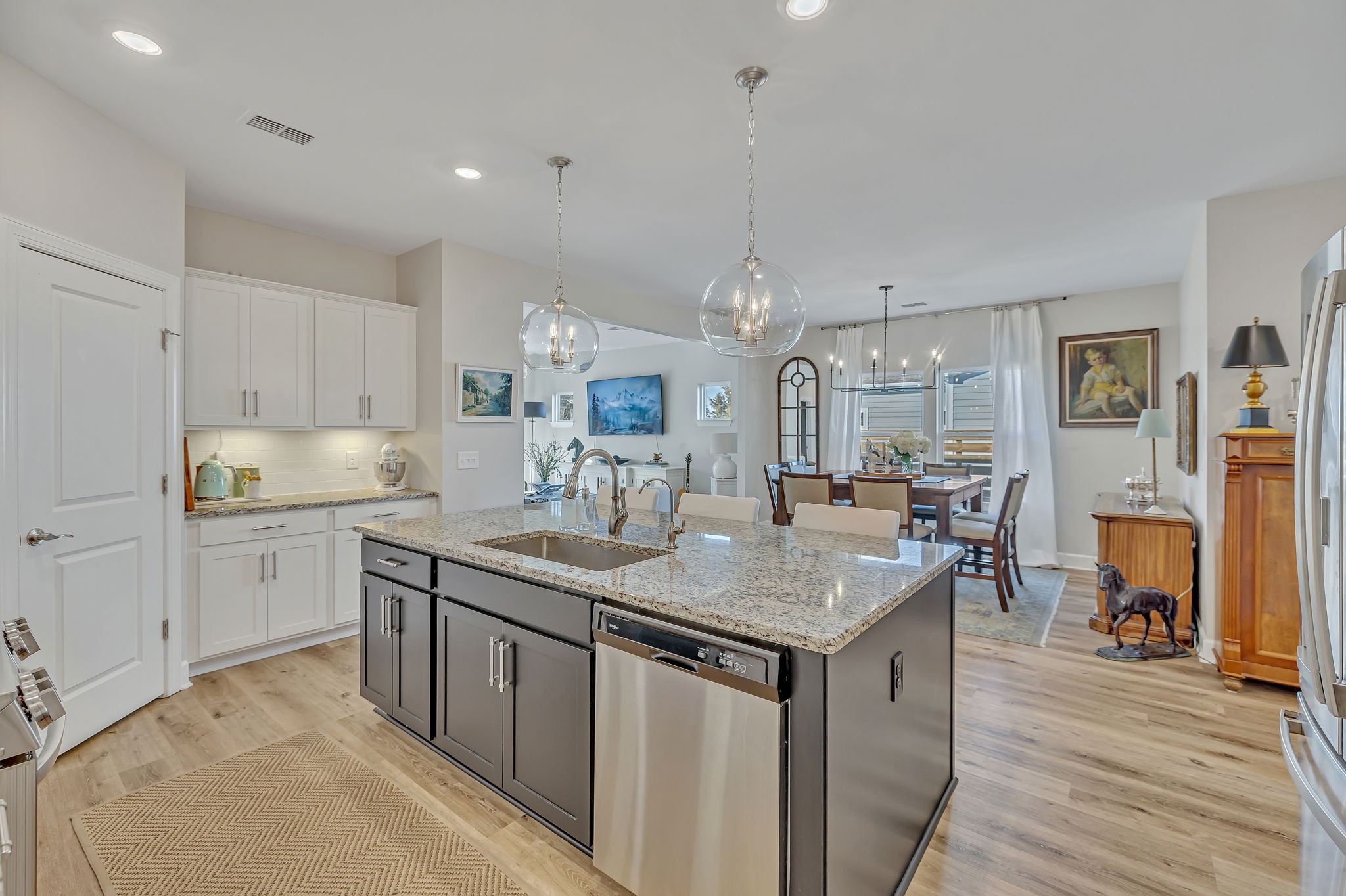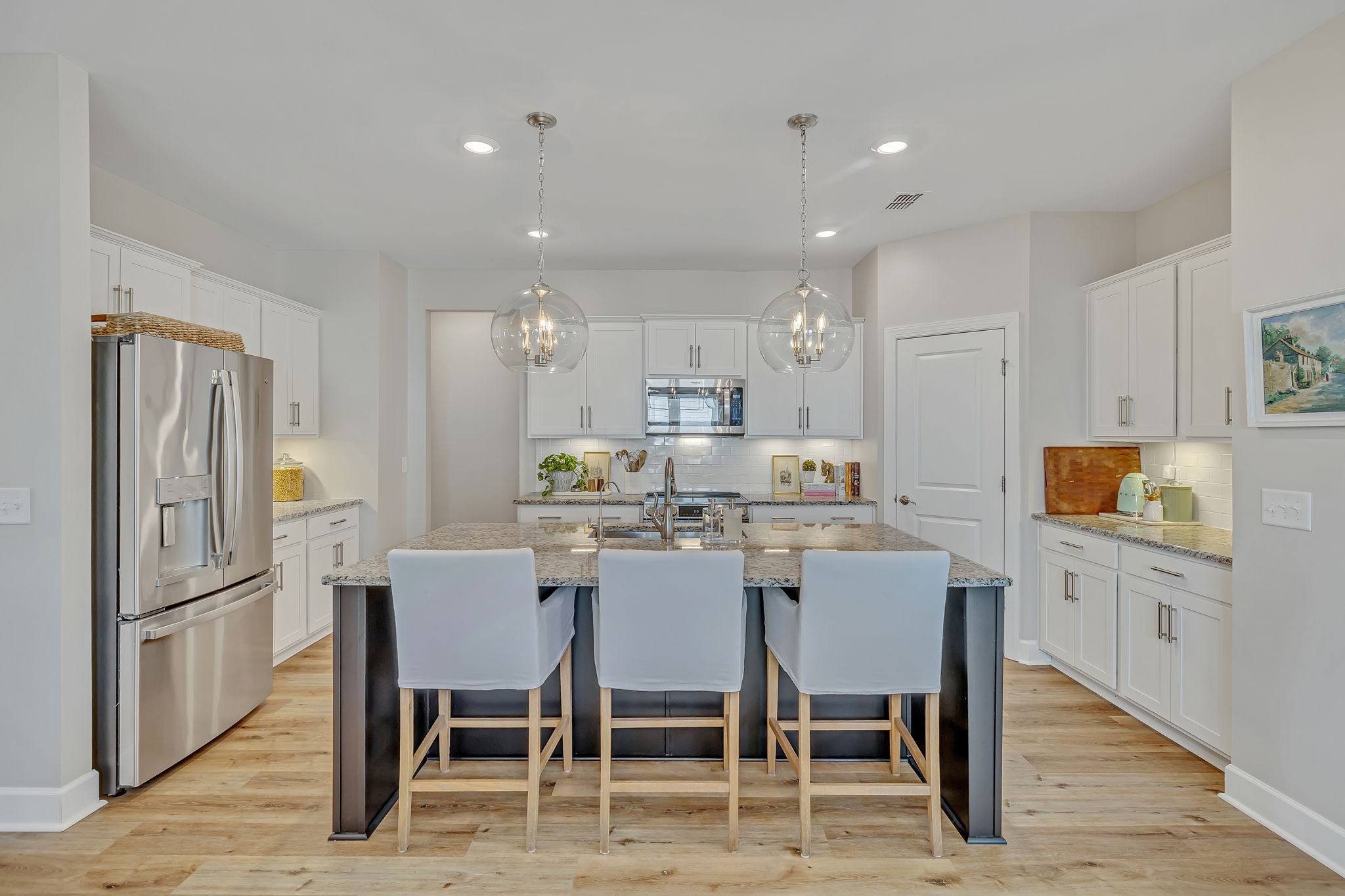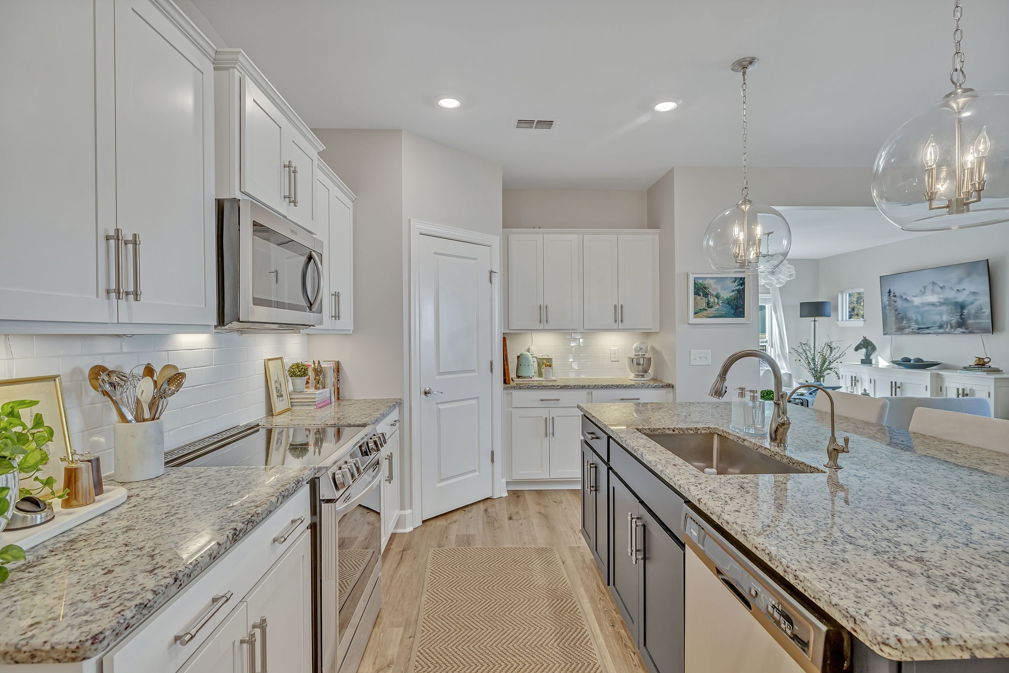 Fantastic value in the sought-after Preserve at Southaven. Gorgeous new floors throughout entire main level, designer lighting, and fresh paint throughout. Wonderful open floor plan with Primary Suite down and 3 spacious bedrooms + huge bonus space up with homework spaces and storage worthy of the Home Edit. Beautiful eat-in kitchen with gas range, spacious pantry & oversized island. ALL appliances remain. Owner’s suite on the main floor with 2 large walk in closets. Beautiful wallpaper in powder bath, light-filled laundry room, and abundant storage throughout. 3-car garage (upgrade!) with electric car charging station, HUGE fully fenced backyard with plenty of room for a pool (one of the largest lots!), custom raised garden beds AND cedar play set can remain. Reverse osmosis water filtration system. Zoned triple Stewarts Creek Schools. This home has been meticulously maintained & updated and is an absolute gem without the wait for new construction.