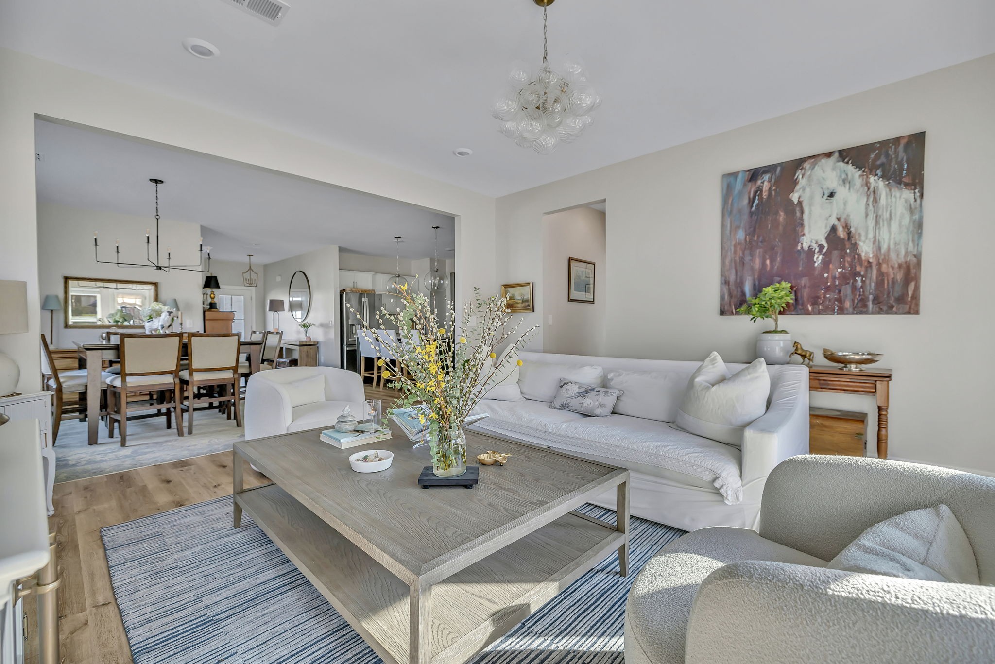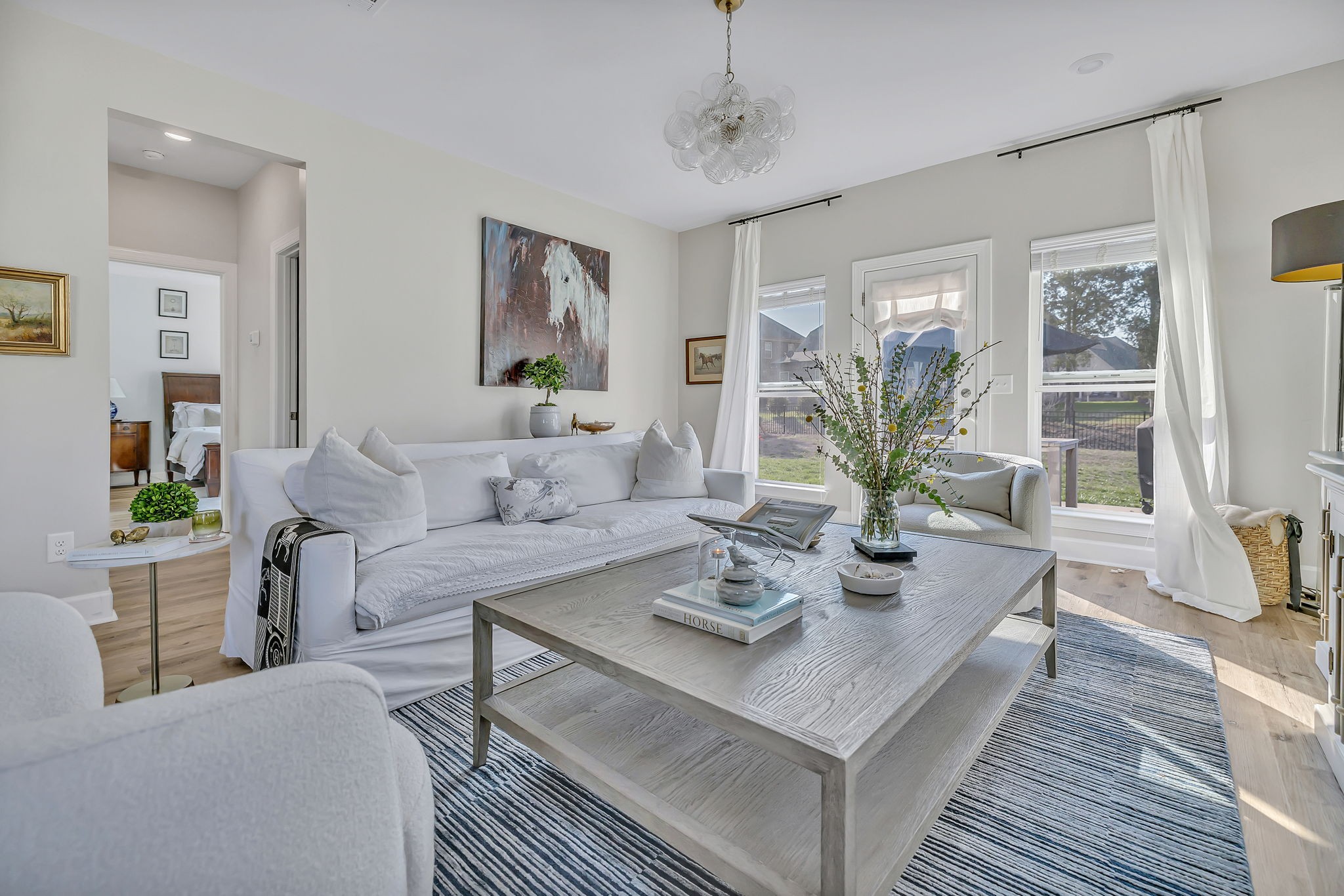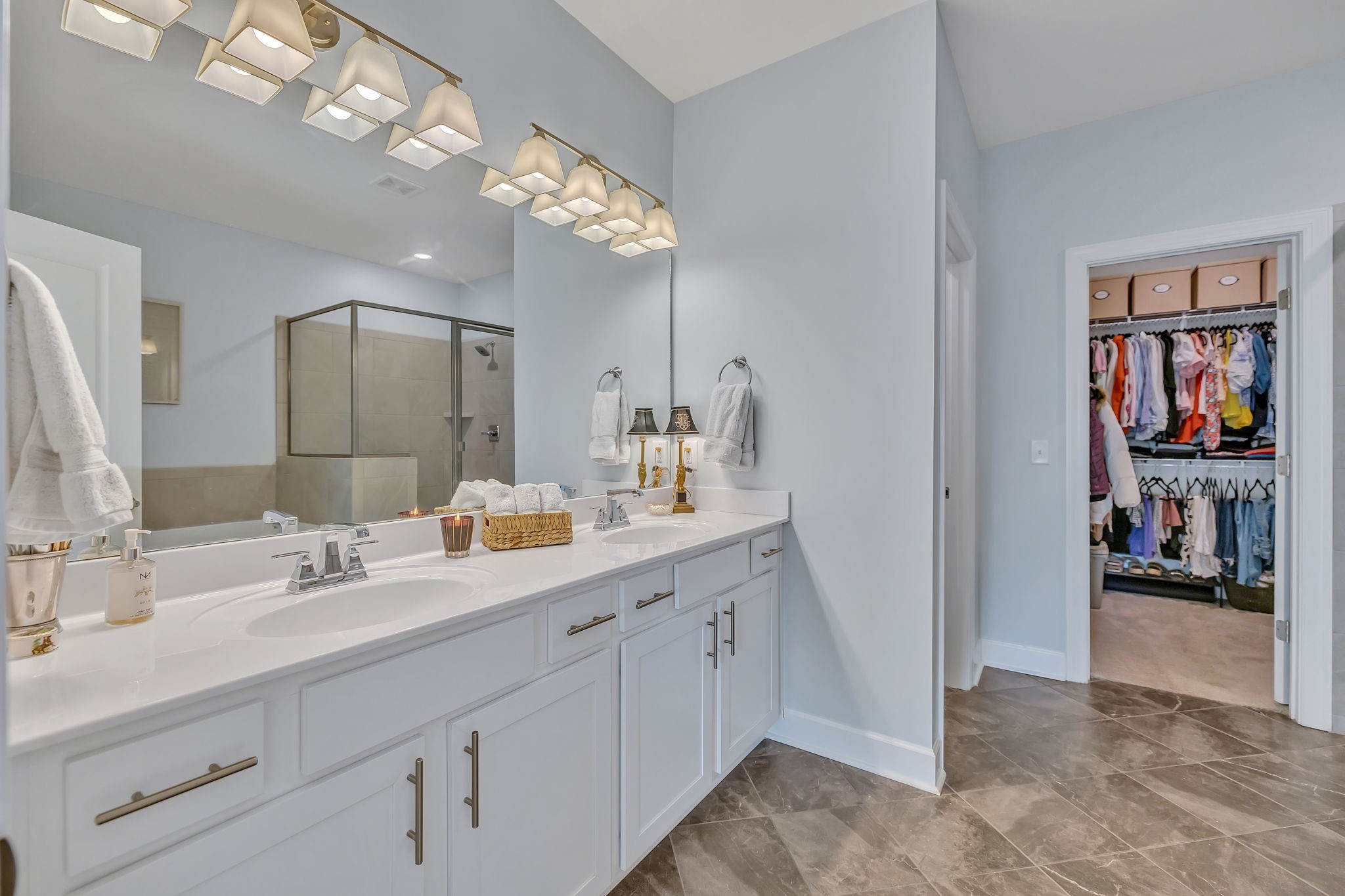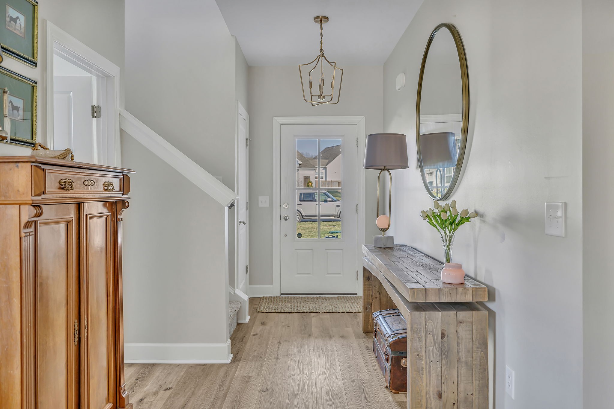 Fantastic value in the sought-after Preserve at Southaven. Gorgeous new floors throughout entire main level, designer lighting, and fresh paint throughout. Wonderful open floor plan with Primary Suite down and 3 spacious bedrooms + huge bonus space up with homework spaces and storage worthy of the Home Edit. Beautiful eat-in kitchen with gas range, spacious pantry & oversized island. ALL appliances remain. Owner’s suite on the main floor with 2 large walk in closets. Beautiful wallpaper in powder bath, light-filled laundry room, and abundant storage throughout. 3-car garage (upgrade!) with electric car charging station, HUGE fully fenced backyard with plenty of room for a pool (one of the largest lots!), custom raised garden beds AND cedar play set can remain. Reverse osmosis water filtration system. Zoned triple Stewarts Creek Schools. This home has been meticulously maintained & updated and is an absolute gem without the wait for new construction.