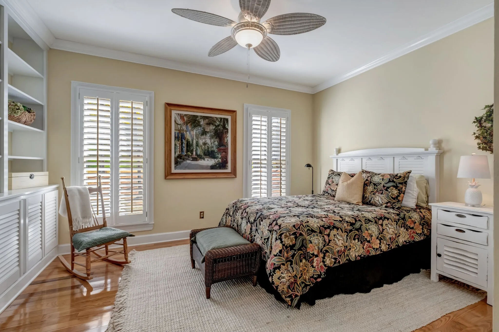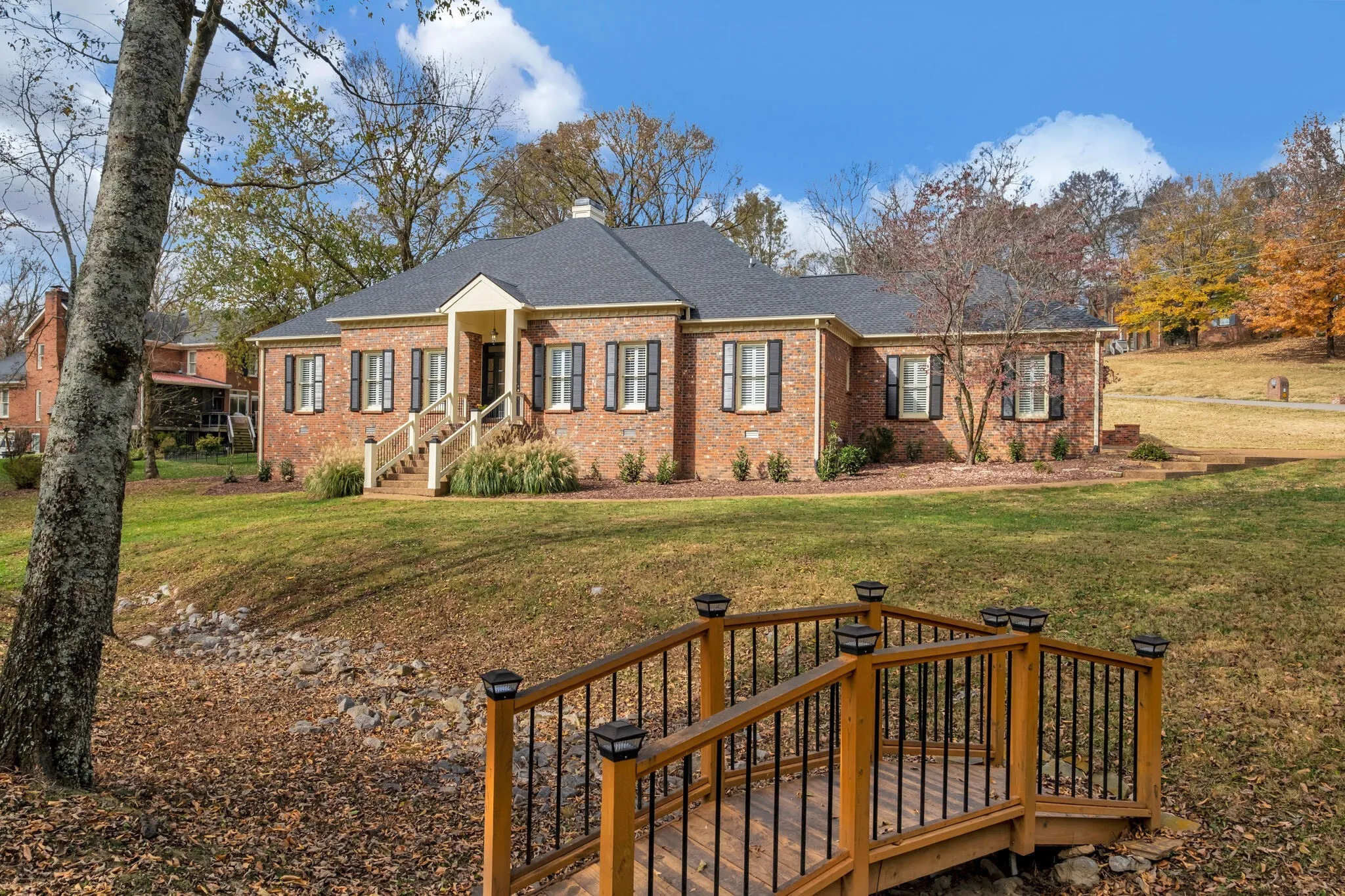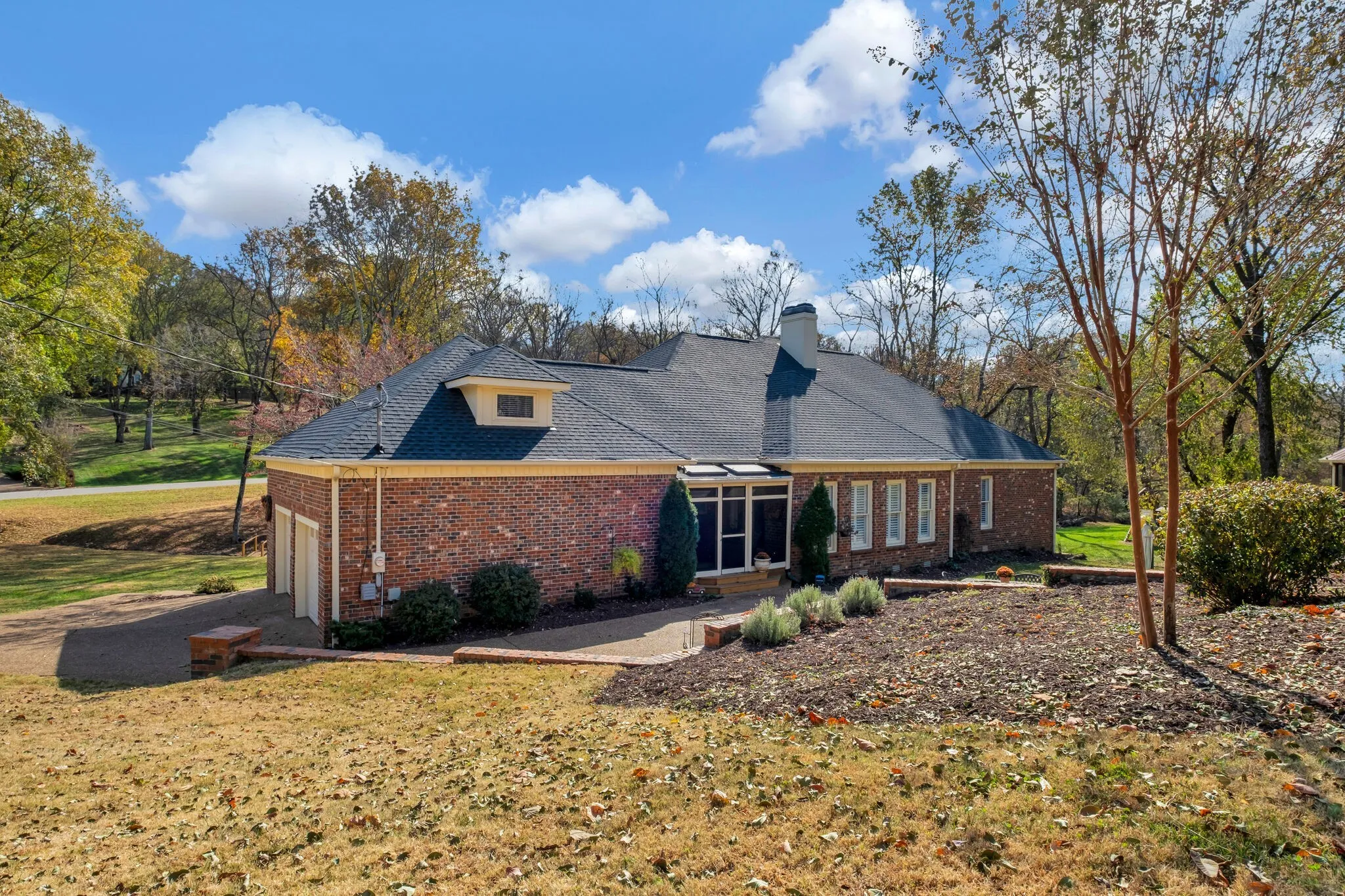 Franklin One Story Home with over 1 acre in park-like setting of Cross Creek. Enjoy all main level living with a bonus room over garage. This stately all brick home has an updated roof, custom wood shutters & side entry garage with new insulated garage doors. The interior features hardwood flooring throughout the main living areas & all bedrooms. Custom plantation shutters on all windows & crown moulding in all rooms. Updated primary bathroom with large walk-in shower & heated floor and updated secondary bathroom. Primary bedroom features a fireplace & trey ceiling. The sunroom/den is filled with natural light & located just off the living room. Outdoor living space with a charming screened back porch, large back patio & backyard space, and stone firepit with paver patio. Cross Creek subdivision is an established community with large lots, beautiful trees, wildlife, serene landscapes, and conveniently located just 1.5 miles to I65 and minutes to Cool Springs.