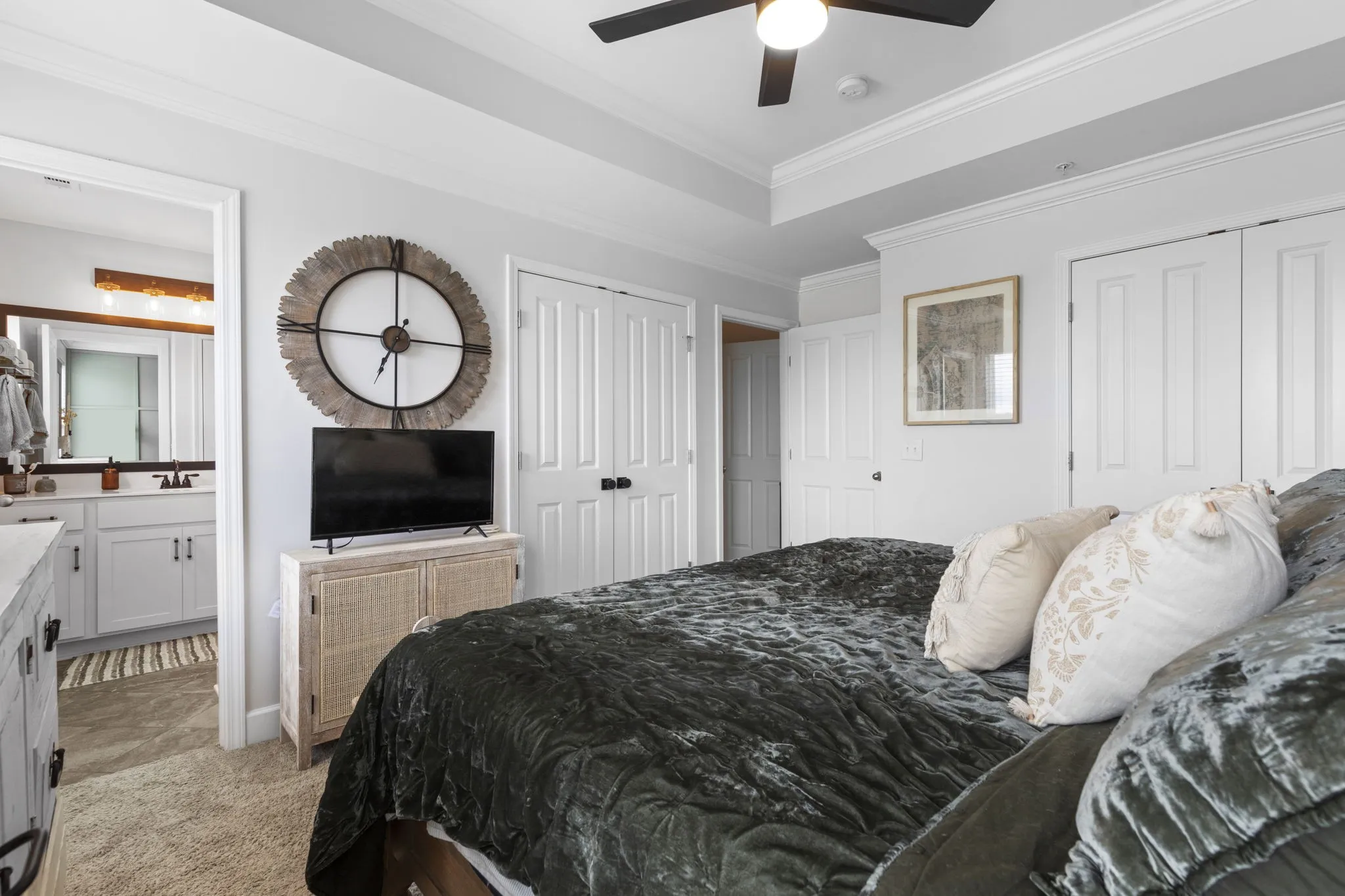"LongDescription" => "Your primary bedroom is equipped with a green accent wall, trey ceilings & crown moulding. 1004 Carraway Ln. Spring Hill, TN 37174"