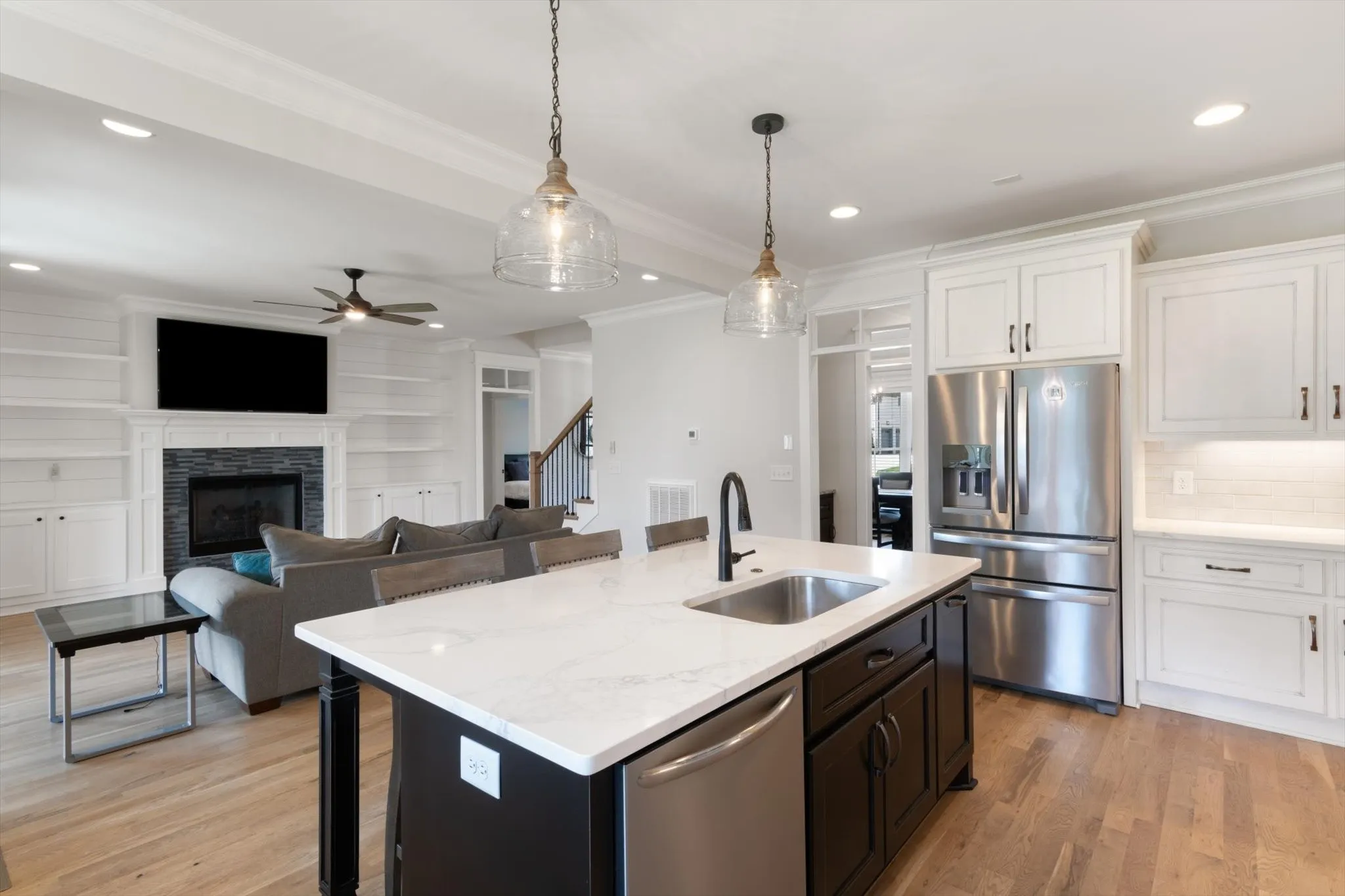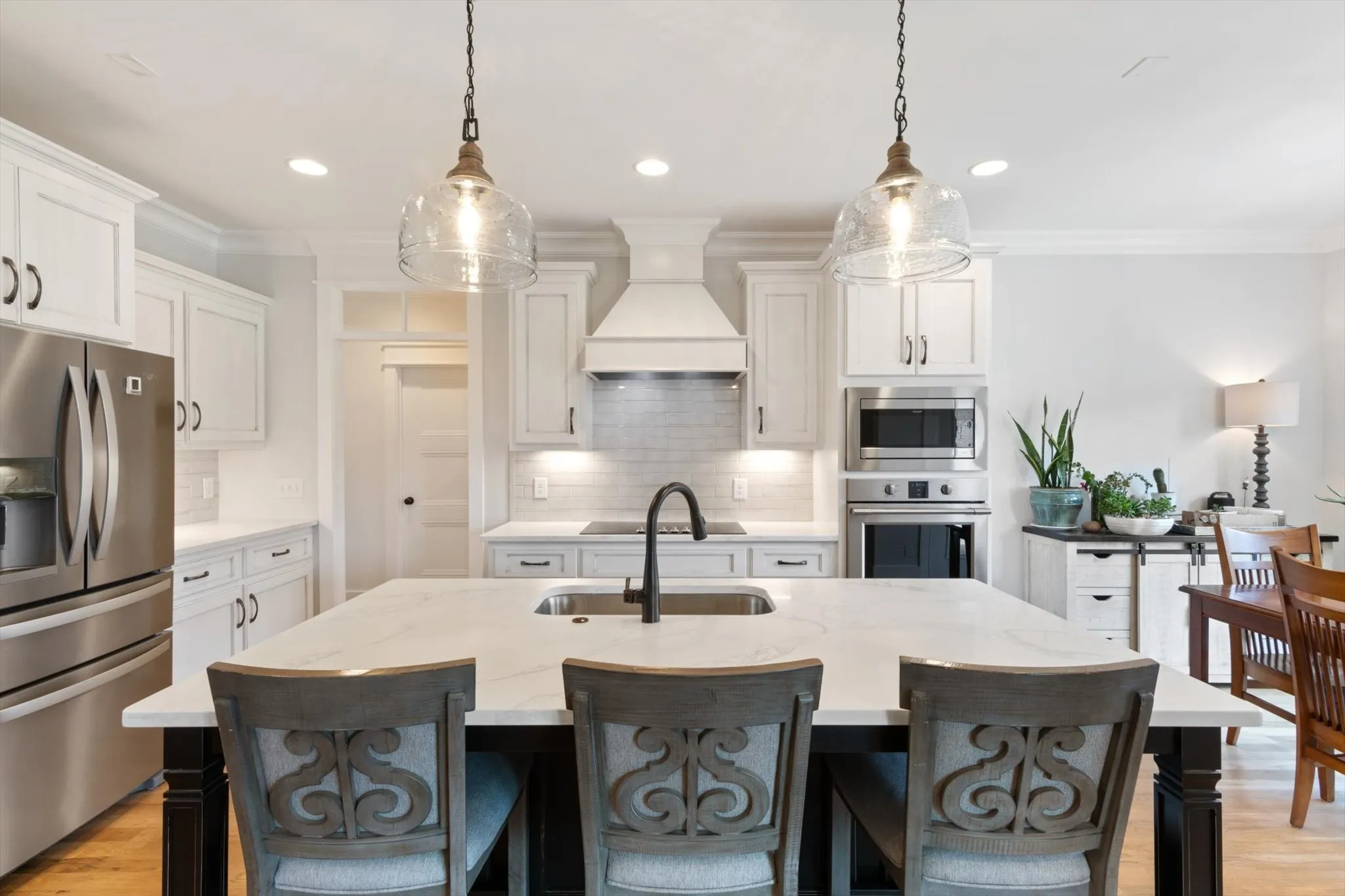 This charming home built by local, custom builder, offers a warm and inviting feel. Located in very desirable, and convenient neighborhood and features the following: four spacious bedrooms including a beautiful primary suite on main level with relaxing master bath and spacious walk in closet. Open floor plan seamlessly connects the foyer, family room, kitchen and dining room. Family room boasts a cozy fireplace, perfect for gatherings. The kitchen features a large island, ample storage, and walk in pantry. The covered back porch with fireplace extends the living area, ideal for summer entertaining. Other features are a large bonus room for playing/movie room, large three car garage, laundry room, fenced backyard, butlers pantry with beverage refrigerator, fantastic walk in attic storage, and irrigation system. Don’t miss the opportunity to own a beautiful custom home in this desirable neighborhood! Buyers/ Buyers agent to verify elementary school due to enrollment capping.