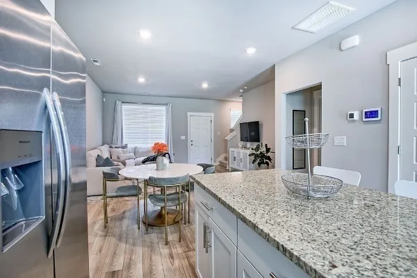 Acadia Plan features 3 bedrooms with 2.5 bathrooms. Quartz in kitchen and baths, stainless kitchen appliances including gas stove PLUS the fridge, luxury vinyl plank flooring in all wet spaces, blinds throughout, Ring doorbell and even smart thermostats all included. Call or stop by to tour a model of this plan, ask about incentives, colors, and availability.