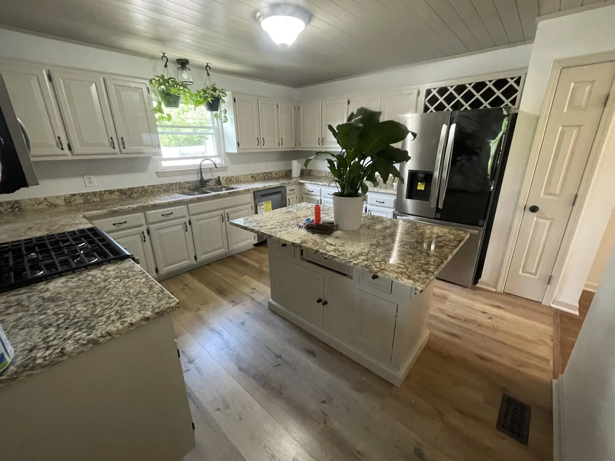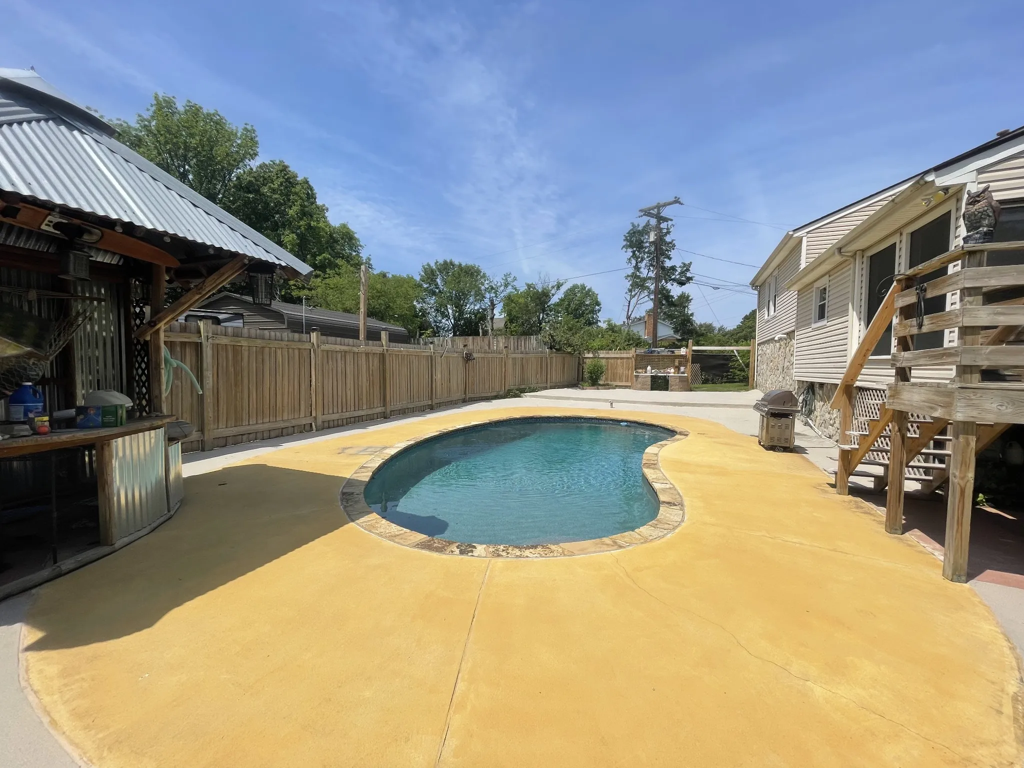 SWIMMING POOL LOVERS: Newly renovated 3 Bd – 2 Bath split level home with a very inviting floor plan. Walk out of the sunken family room to a screened-in sunroom porch with a beautiful view of the kidney-shaped in-ground swimming pool and patio area, with a “Tiki Hut” bar and moon-lit privacy fencing. This freshly-painted home includes a kitchen surrounded by granite countertops and new appliances, shiplap ceilings in the entire upper living area and a 2-car garage with plenty of room for a workshop.
