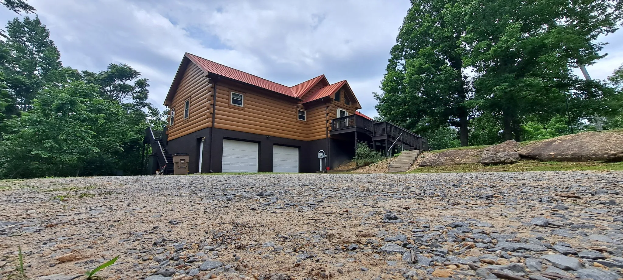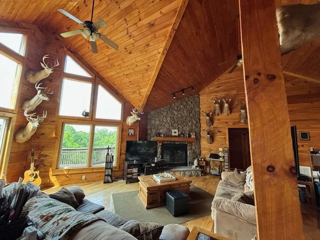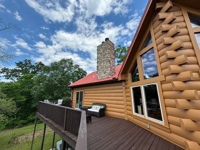 Custom-built log home on 30.82 private acres on two original lots (16.08 acres and 14.74 acres) per survey (in pics) with captivating views just 19 miles to downtown Nashville. It’s like Gatlinburg, but without the bears. The kitchen has a spacious pantry and is open to the kitchen and great room with a fireplace. New HVAC, granite counters throughout, tile, windows, exterior trim, and exterior doors upgrade(s). 20×16 attic/potential expansion area. Practice-golf flags in grassy areas. Front and back decks, large downstairs office/recording equipment area with a large walk-in closet. rec room with a fireplace, along with an attached 2-car garage. If you’ve ever wanted to live in the forest surrounded by wildlife and the sounds of nature, this is it!