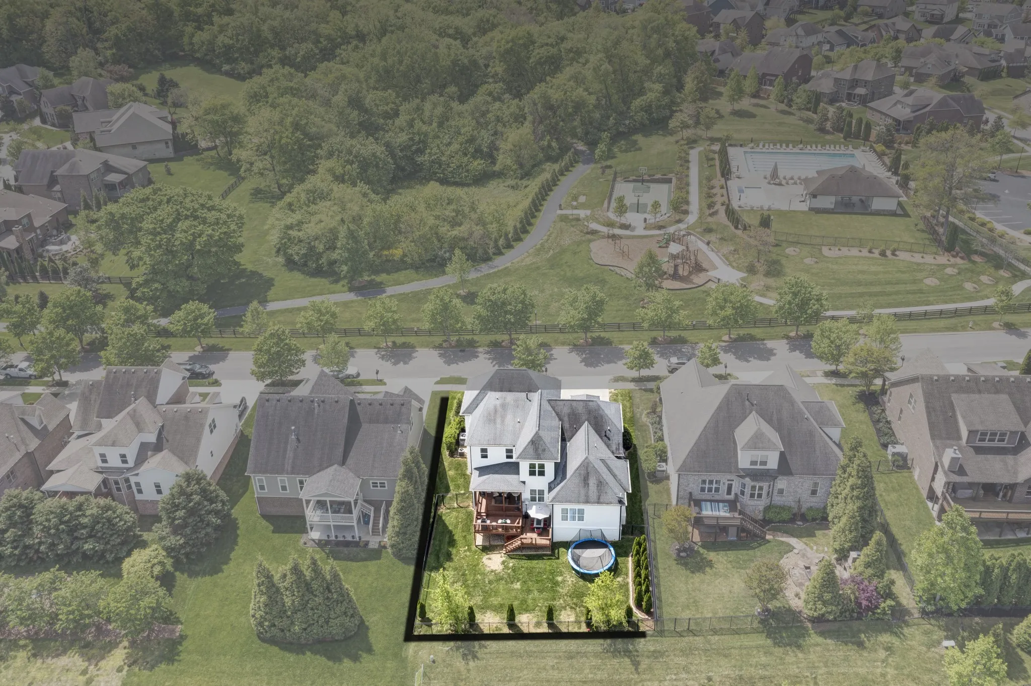 Discover this stunning 5-bed, 4-bath home in the coveted Highlands at Ladd Park. Featuring a master suite and office downstairs, plus four bedrooms upstairs including a versatile flex space. With upscale upgrades like 10ft ceilings, custom built-ins, and hardwood floors, it exudes elegance. Enjoy outdoor living on the three-tiered deck and fenced backyard. Community amenities, which are right across the street quite literally, include playgrounds, pools, trails, and more. Conveniently located near I-65, Berry Farms, and Cool Springs. Experience luxury living at its finest.