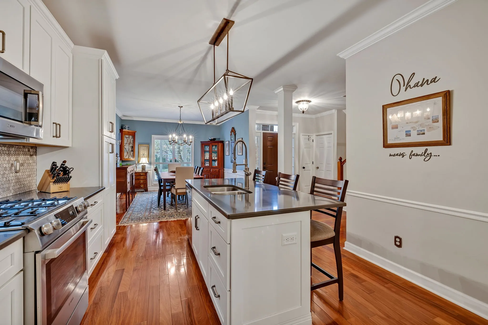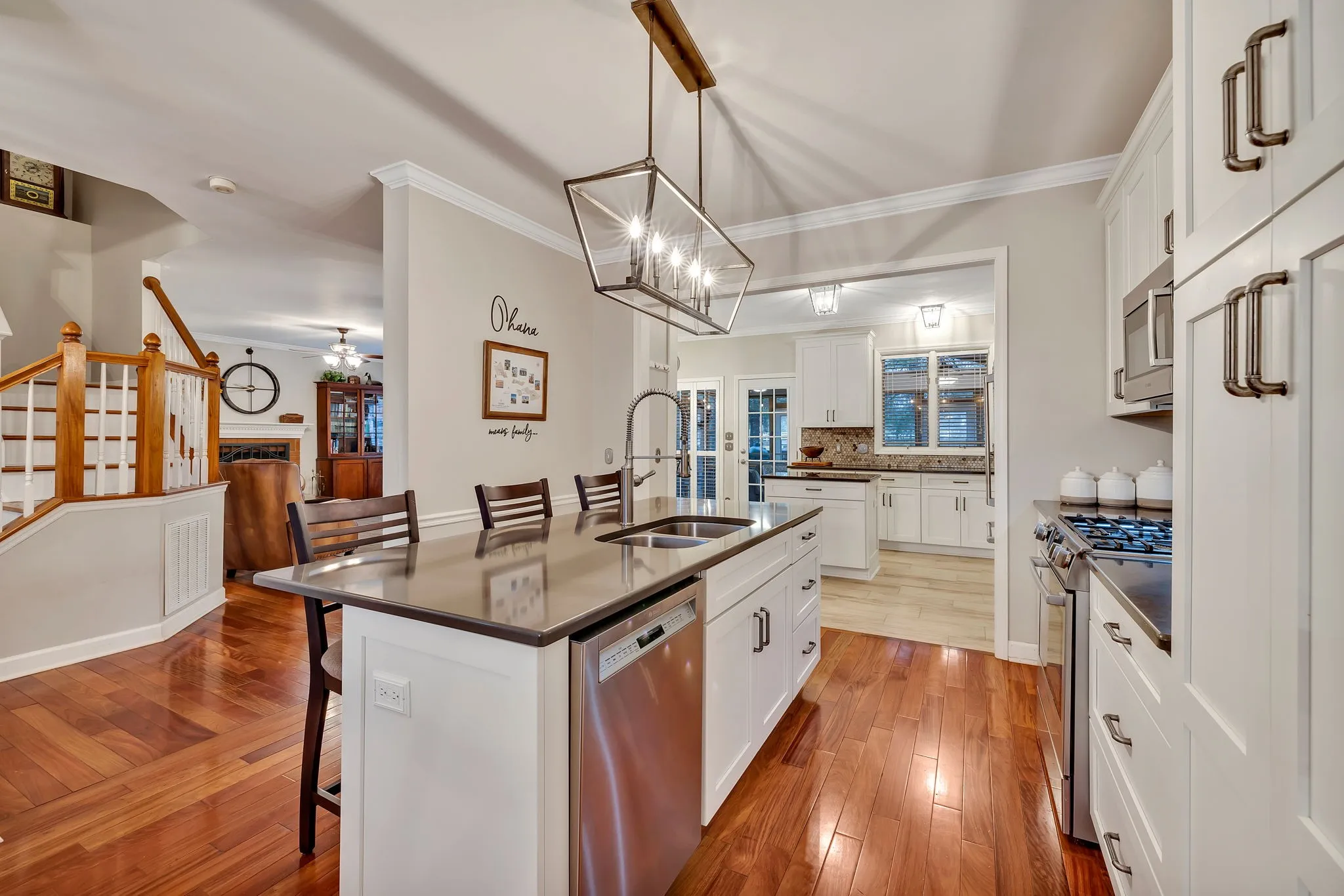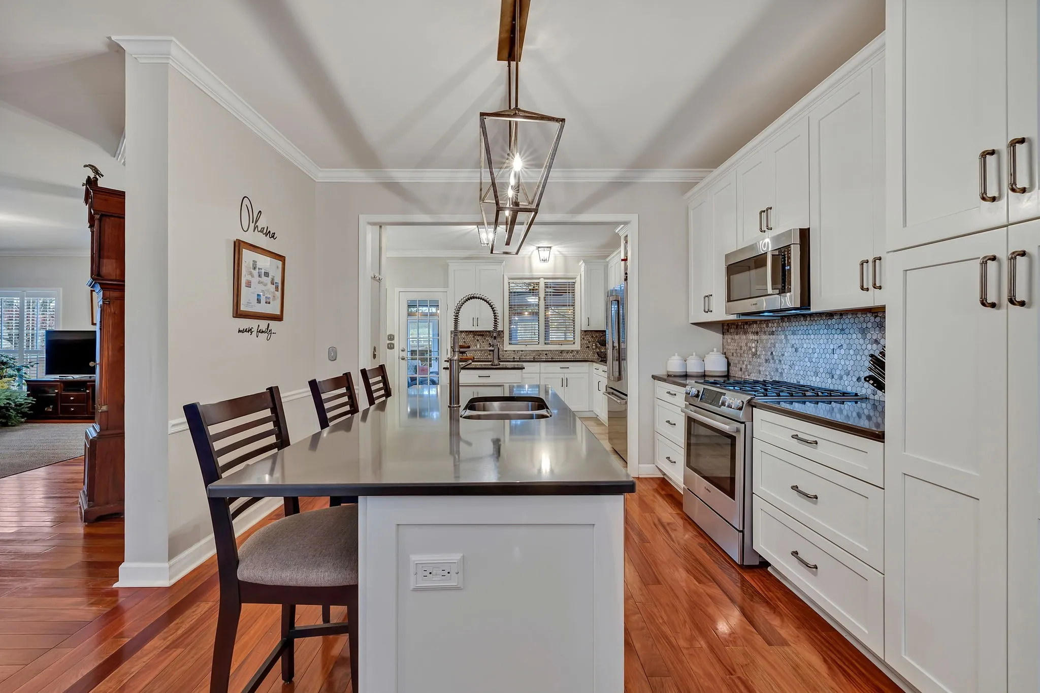 This beautiful home is one owner and very well maintained * Three side brick * Kitchen has been updated and extended with lots of white shaker cabinets, all new (Bosch) stainless steel appliances, gas cooktop, quartz counter tops, tile flooring * Plantation shutters throughout home * Bonus room (with beaded board walls) could possibly be 5th bedroom * Modified to open floor plan * Updated master bathroom * Beautiful hardwood flooring throughout home * HVAC is 1 yr old * New magnificent enclosed back porch has just been completed, great for entertaining or evening pleasure * Fenced backyard with patio and grass area * Enjoy the clubhouse, fitness center, pool and walking trails * Ideal location