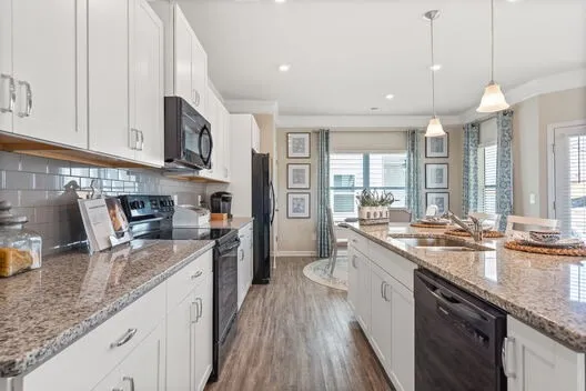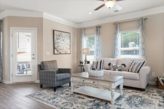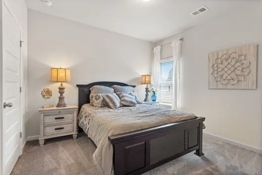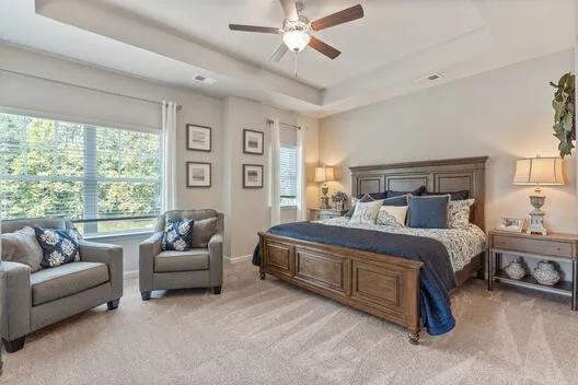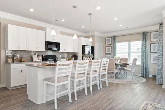 Outdoor lovers prefer the Braselton, by Smith Douglas Homes, for its unique rear corner covered porch, directly accessible from a large eat-in kitchen overlooking the family room. On the second floor, an over-sized loft separates the large private owner’s suite from two secondary bedrooms.