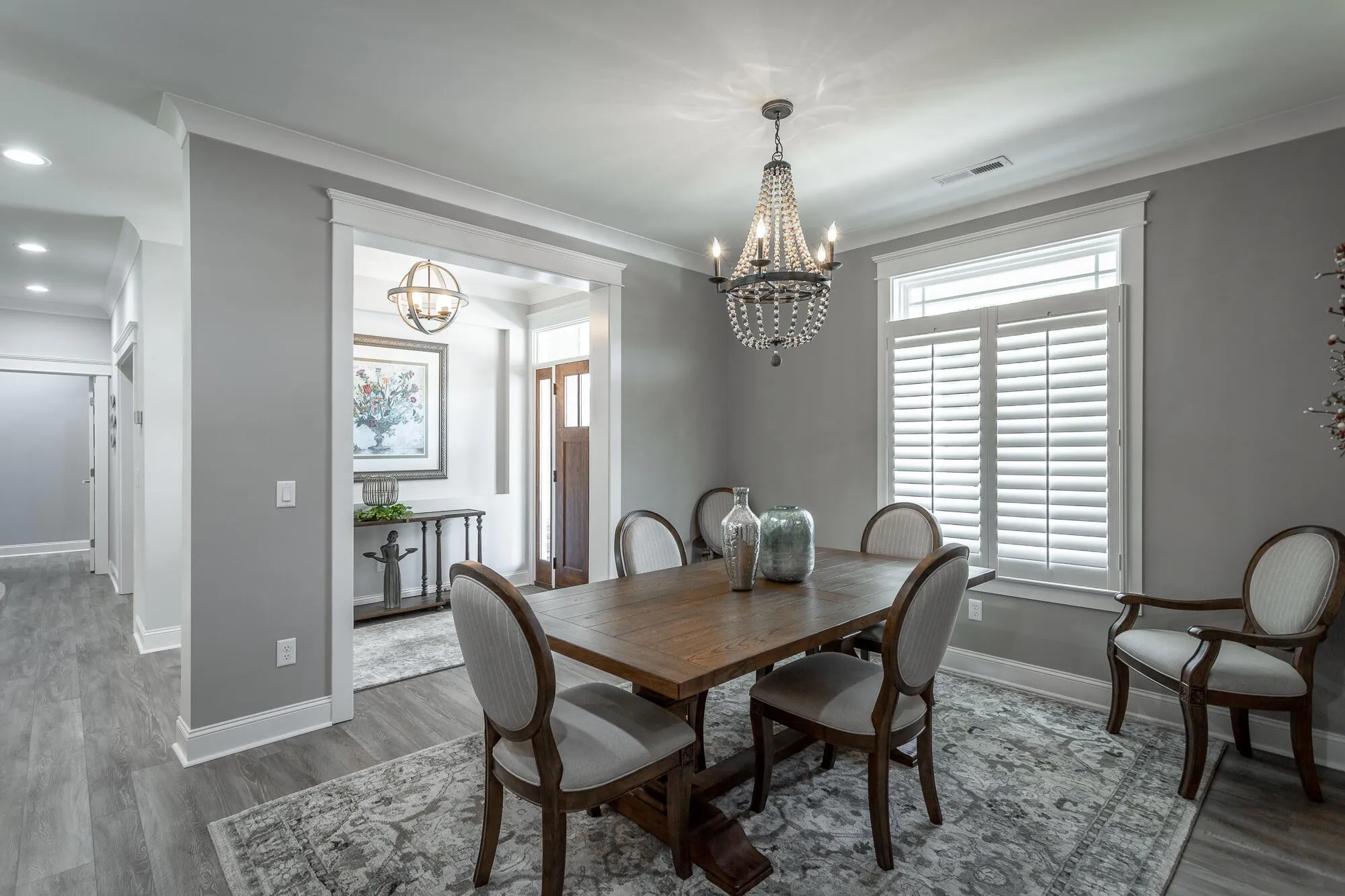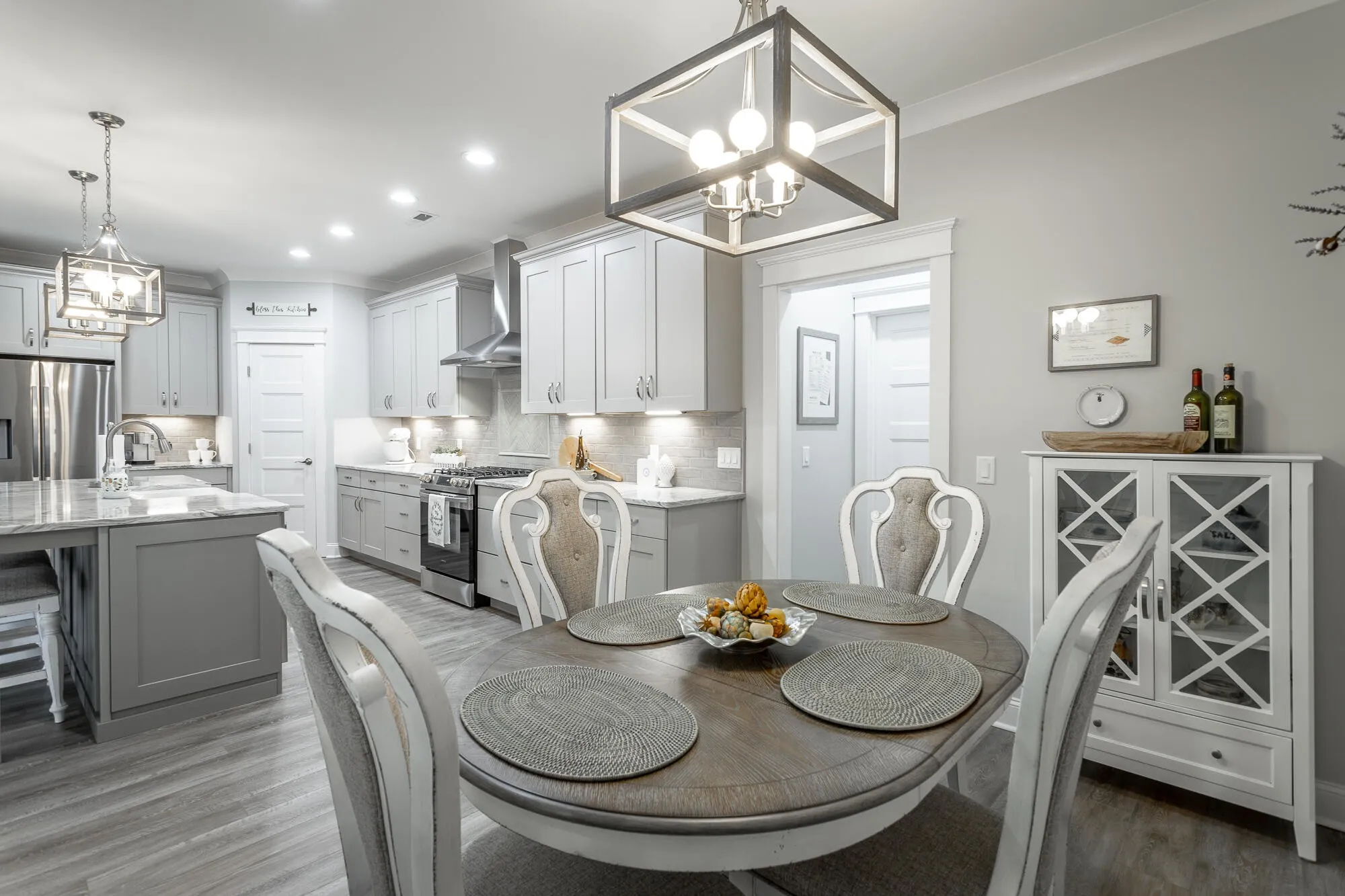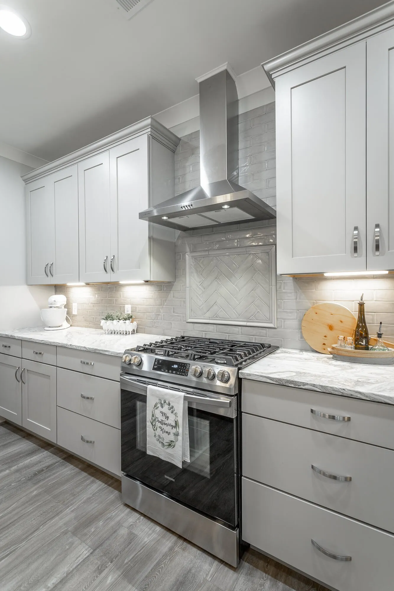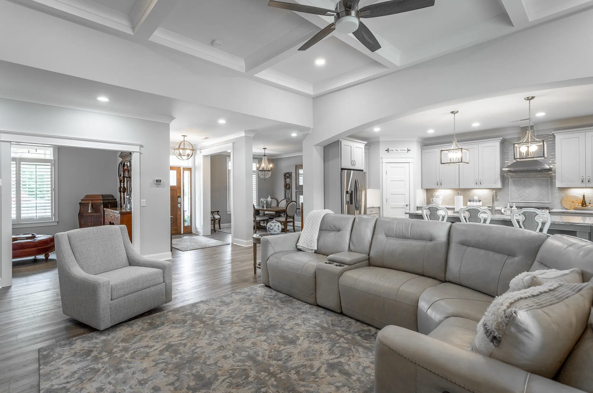 Chattanooga Home for sale in the highly sought-after Skyfall community. This beautiful three bedroom, two and half bathroom craftsman home was just built in 2020. Enjoy the meticulously landscaped yard and the spacious covered front porch perfect for front porch rocking and visiting. Ready to go inside? Open the beautiful hardwood door and step into the foyer of your new home where the luxury vinyl plank floors lead you from the dining room to the open living area. Accented by a coffered ceiling, built-in shelving and cabinets, and beautiful granite hearth around the gas fire place your living room invites all to relax and unwind. Sliding glass doors open to a welcoming sunroom, complete with factory treated energy efficient windows that allow you to comfortably enjoy looking out over your luscious backyard. Heated and cooled you can leave the sliding doors open adding more space to your living area. Open floorplan blends living area seamlessly with the spotless kitchen. Check off your kitchen wish list with the island, granite countertops, farmhouse sink, stainless steel appliances, gas stove, and walk-in pantry. The breakfast nook is the perfect place for informal meals and working on school projects. Ready to call it a day? Retreat to your master suite. Sizeable master bedroom with trey ceiling asserts peace and tranquility. Walk past his and her walk-in closets to the lavish master bathroom featuring tile floors, his and her vanities, private water closet and a generous walk-in shower with double shower heads. Split bedroom floorplan allows family members or guests their own privacy with two additional bedrooms featuring large closets. Additional full bathroom with double vanity is ideally place in-between. Coming inside from the garage or from working outside? The perfectly placed laundry room with utility sink and half bathroom is ready for heavy-duty traffic. But wait!