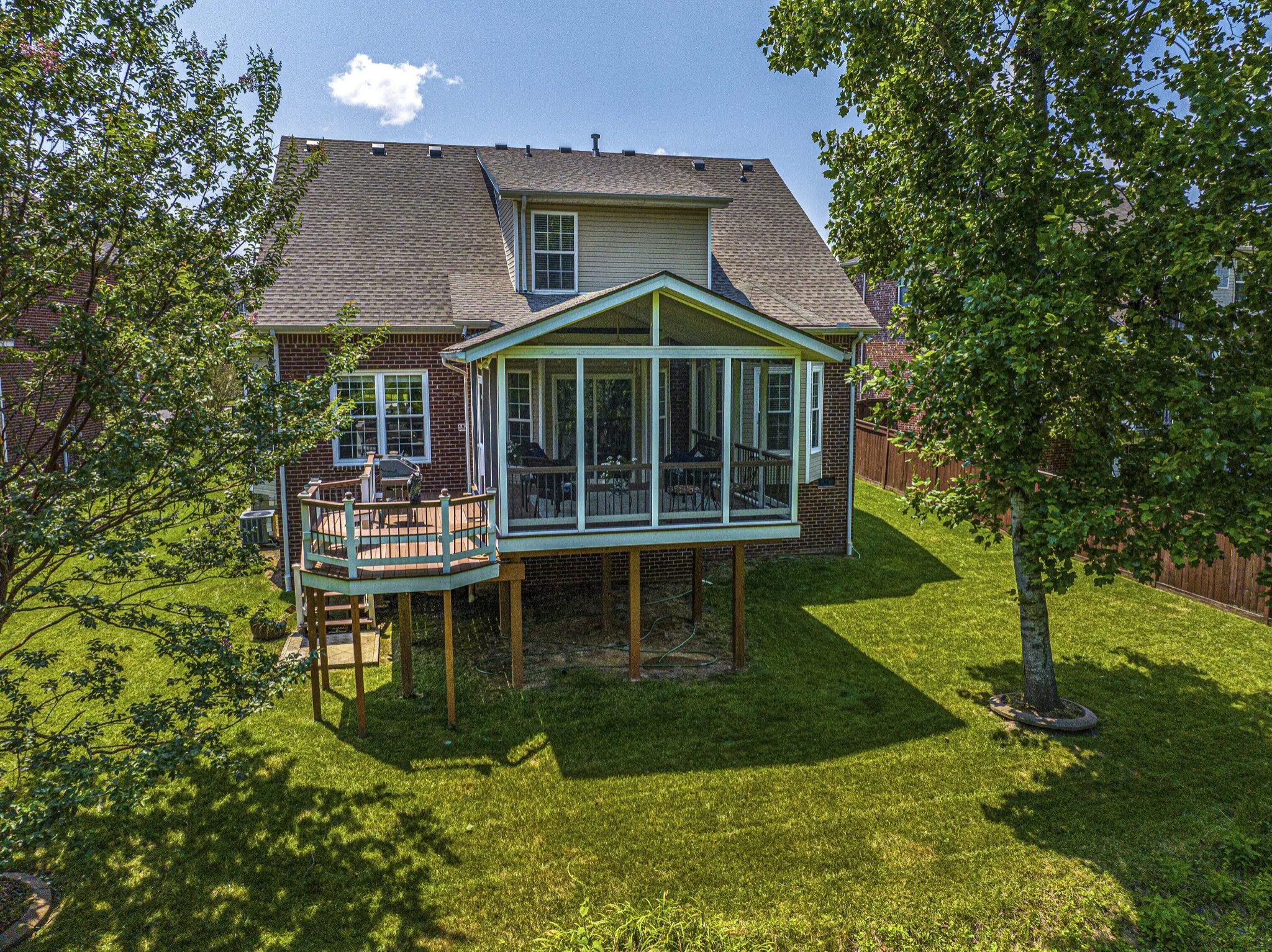 You will love this 4-sided Brick Home! *Sellers offering $5000 towards Buyer’s Closing Costs or Rate Buy-down w/ acceptable offer!* Enjoy the Private Tree-lined Backyard & Sunsets from the Large Screened Outdoor Living Space. Composite Deck with Built-in Seating around Grilling Area. Main Floor Primary Suite. 2-Story Vaulted LR w/Gas Log Fireplace. Huge Bonus Rm provides 4th BR Option. New 3D Roof- 2023. Gas Water Heater- 2021. 2 Gas HVAC units. Eat-in Kitchen: Ceramic Tile Backsplash, Stainless Refrigerator, Bosch DW, Electric Wall Oven, Smooth Top Cooktop. New LVT Flooring in Kitchen, Laundry & Upstairs Bath- 2020. New Upstairs Carpet-2021. Partial Window Replacements- 2021. Hardwood Floors in LR/DR. Other Details: Tray Ceilings, Bay Windows, Wainscoting, Lighted Ceiling Fans, Anderson Glass Storm Door, 2-in Blinds, Dawn-to-Dusk Front Lights, Back Porch Flood Lights, Mature Landscaping by Moore & Moore. Highly Coveted Neighborhood w/ 3 Pools, Playground, Sidewalks, & Paved Trails.