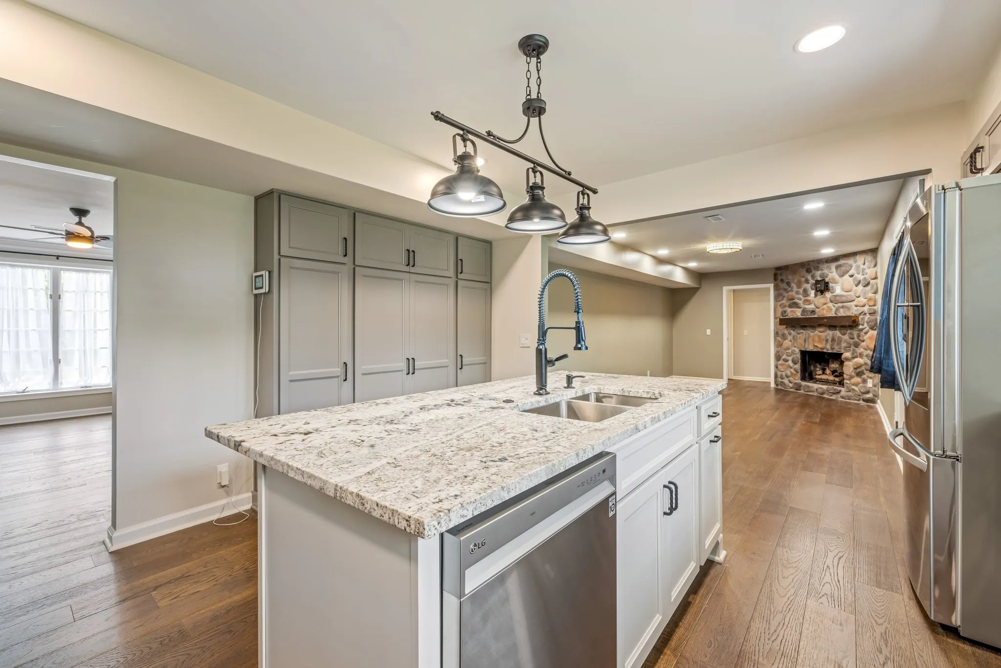 Welcome home to lake life with an ideal layout and prime location, this one is move in ready! Updates include new: hardwood floors consistent throughout main living spaces, stain resistant carpets in all bedrooms, hot water heater, electric panel with surge protector, storage shed, and a brand new ROOF! The fully remodeled kitchen (2023) boasts LG Smart stainless steel appliances, granite countertops, large island, shaker cabinets, and custom pantry. Flexible layout: multiple living spaces, dining, office, great flow for entertainment, first floor primary suite, three large bedrooms upstairs, fenced in yard, and plenty of parking. Close to Percy Priest Lake, Anderson Beach, and Hamilton Beach/Elm Creek Marinas & just 25 minutes to downtown Nashville. Google Fiber being installed throughout the neighborhood.