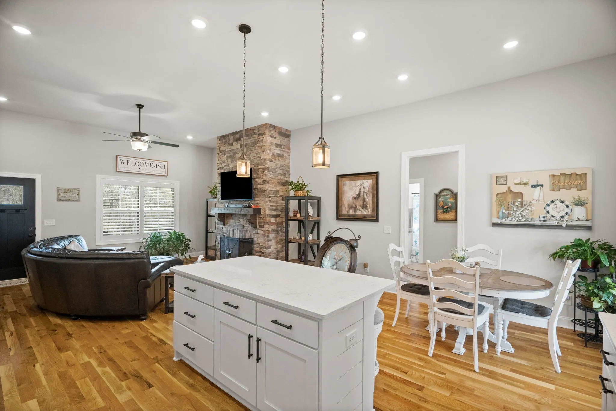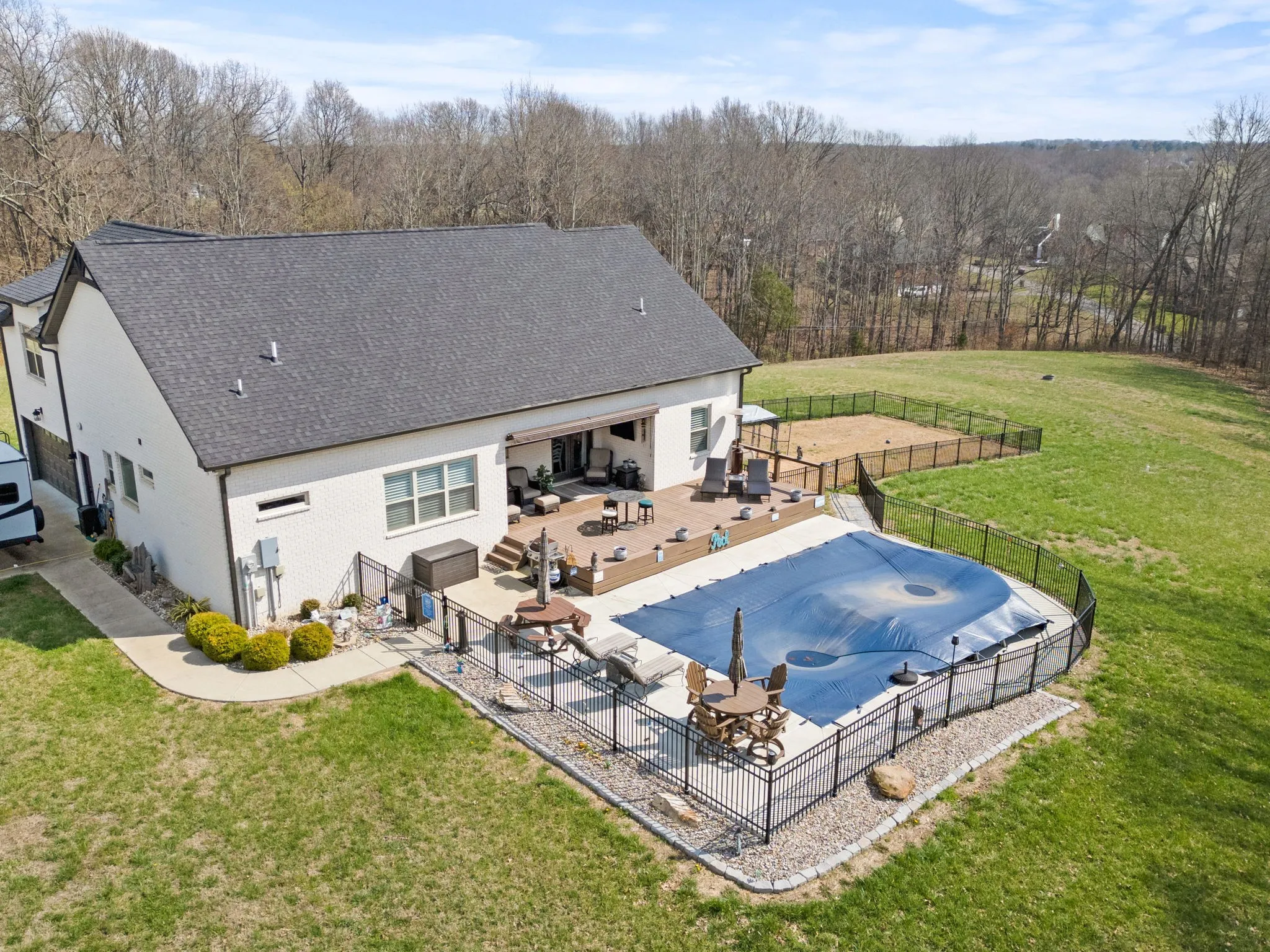 Absolutely stunning custom built home with upgrades everywhere you look sitting on 5 prime acres! Home loaded with custom cabinets, quartz, plantation shutters, tankless water heater, upgraded stainless appliances, hardwood throughout main floor, LVP flooring in bonus, stealth semi in ground pool, oversized patio area for entertaining with oversized power awning, detached garage to name a few. Sellers relocating and willing to accommodate a quick close.