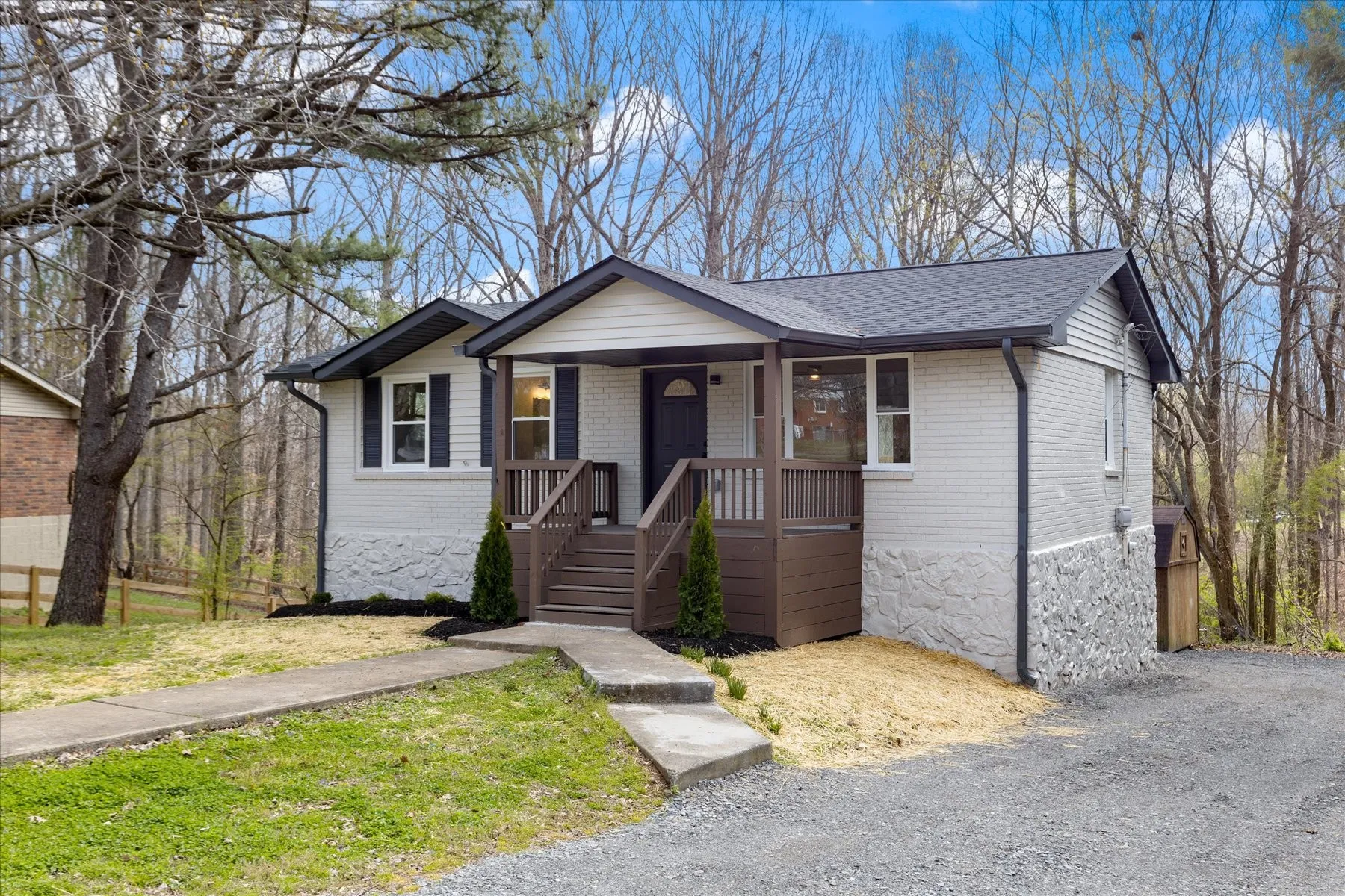 The ranch-style home on dead end features two floors with new upgrades including a roof, windows, cabinets, flooring, granite countertops, HVAC system, back and front decks, and luxury vinyl plank (LVP) flooring. The main level offers two bedrooms and two bathrooms, while the fully finished basement includes two additional bedrooms and an open family room. Perfect for a growing family or someone looking for extra space.Fenced in back yard.