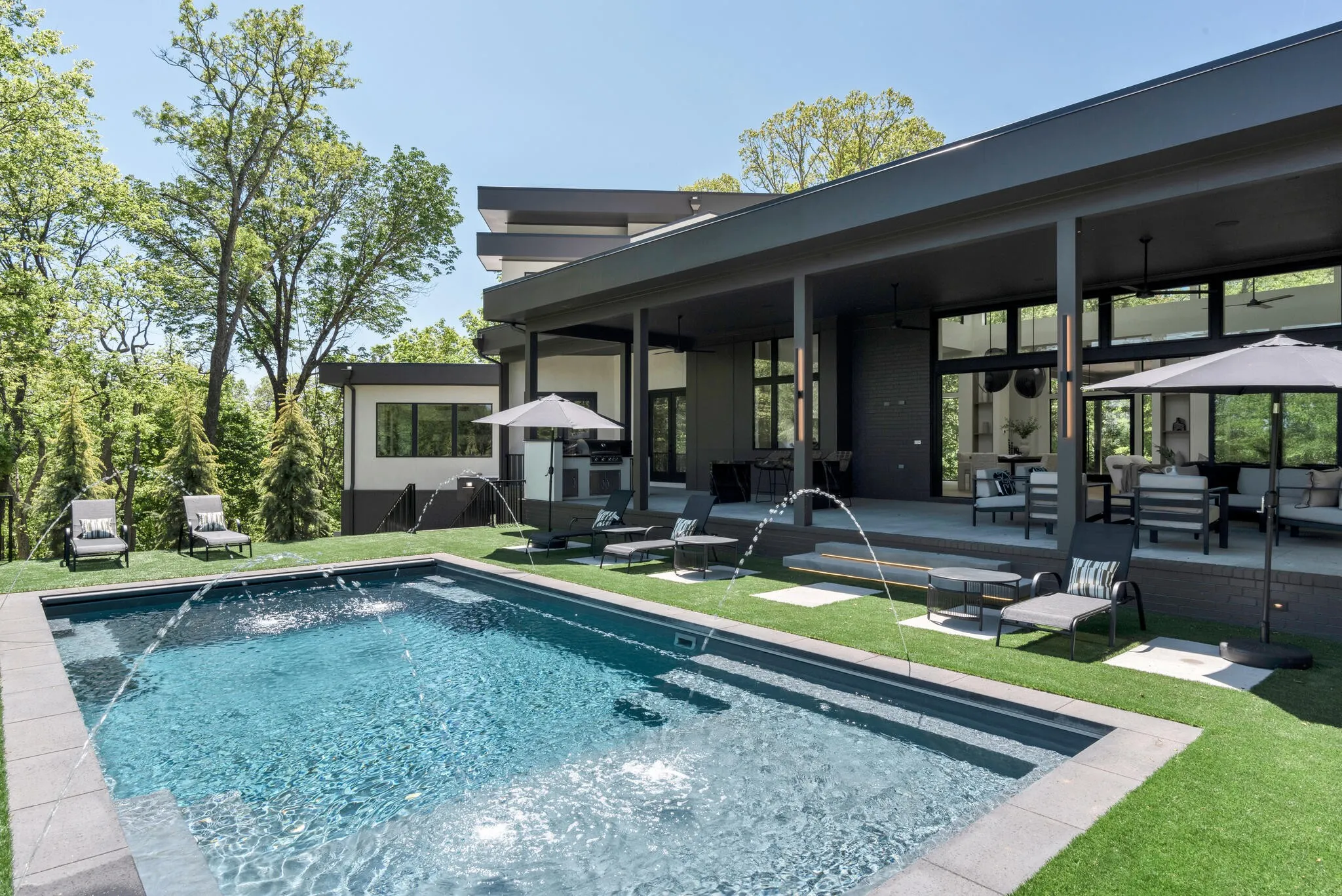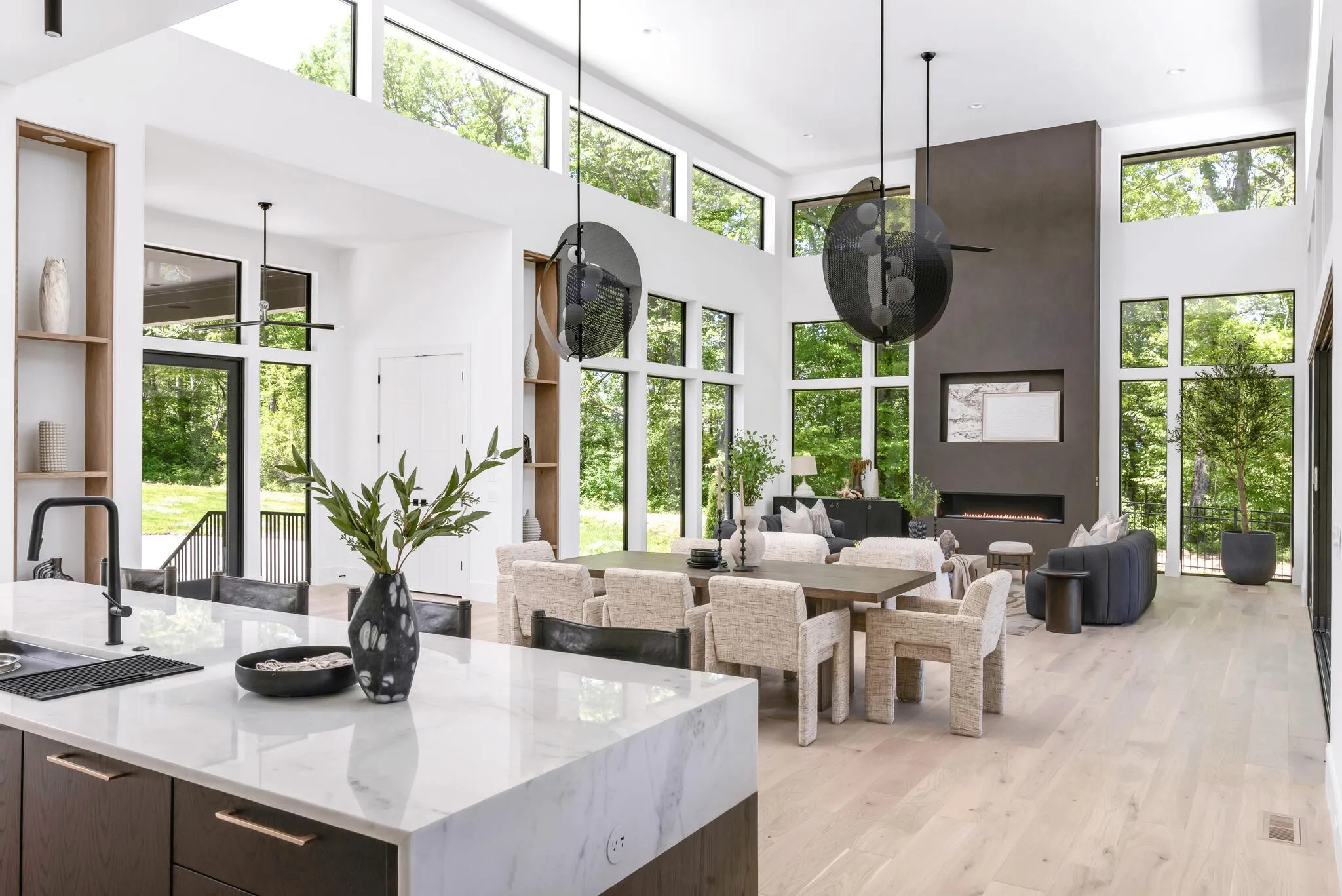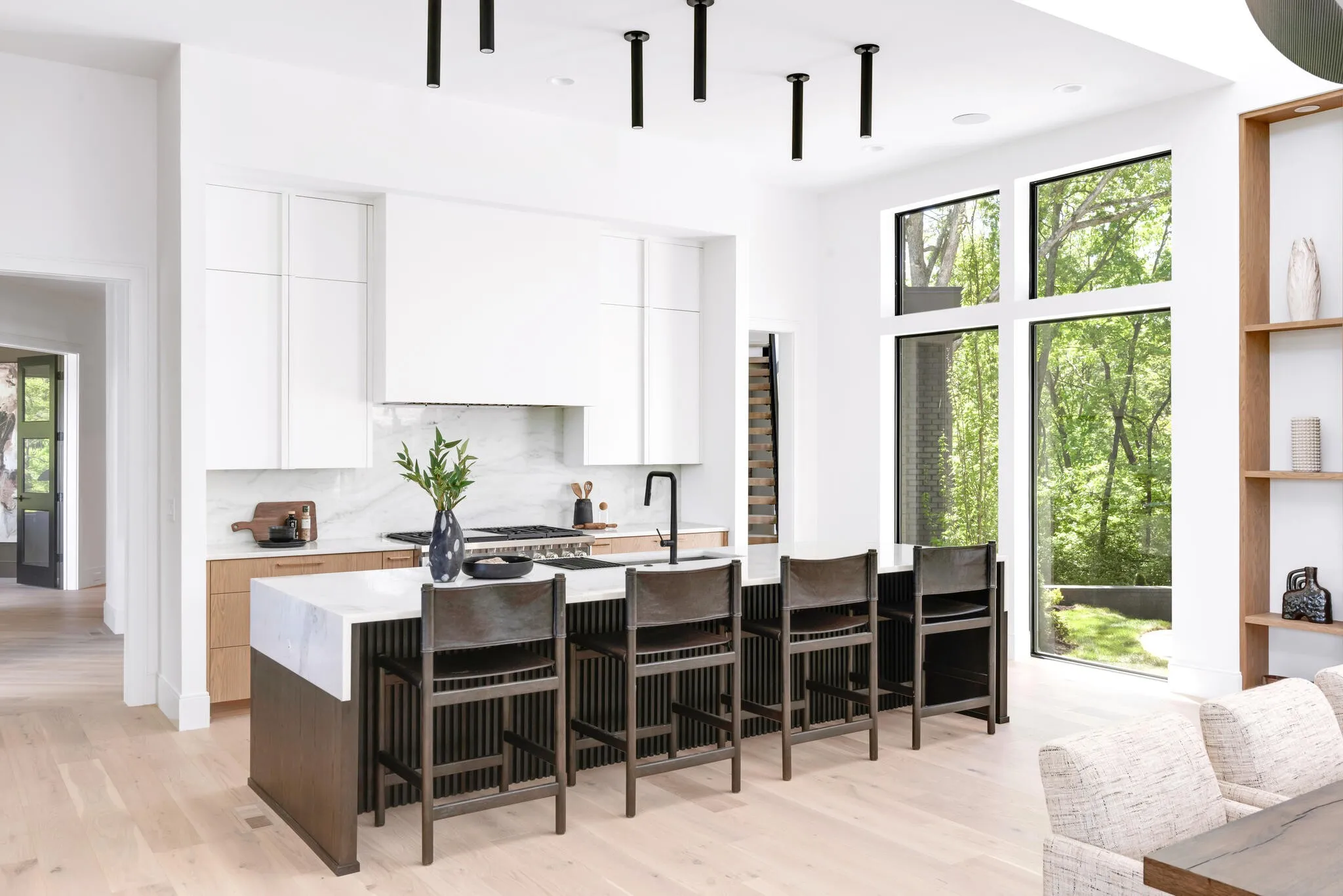 Close enough to Nashville for a downtown skyline view over the pool, and far enough away for seductive privacy, this envy-inducing ridge top jewel leaves nothing to be desired. From the light-drenched great room to the woodland walking trail, this inspired home is in a league of its own. Every space has been rendered with meticulous attention to detail for a life of ease, bathed in natural beauty and subtle drama. The living room flows effortlessly into the covered patio through fully retractable sliding doors. The kitchen is a foodie’s dream, rendered in white oak and quartz with chef-grade appliances and a scullery tucked away just behind. The finely appointed office opens onto a patio. Each of the five bedrooms offers an elegantly finished attached bath and soul-enriching views of the five-acre property. Downstairs, a third bar, media room and flex space provide opportunities for recreation and relaxation. The three-car garage includes a large additional space for toys and storage.