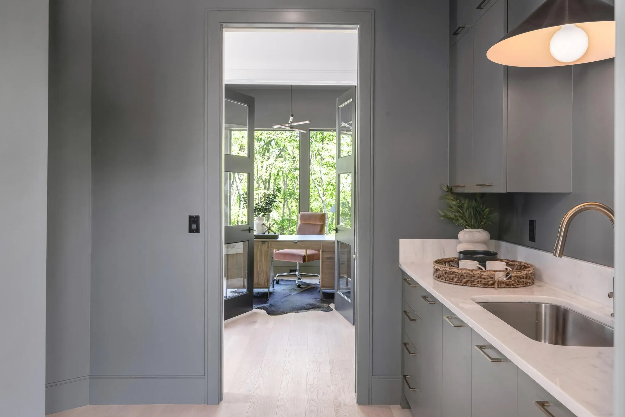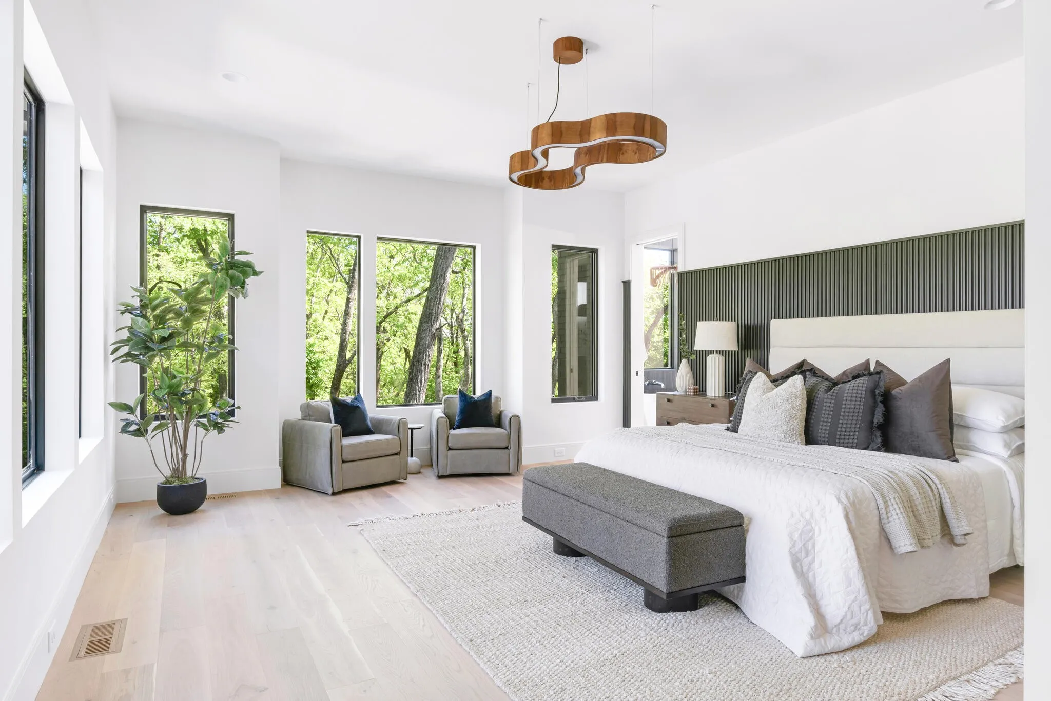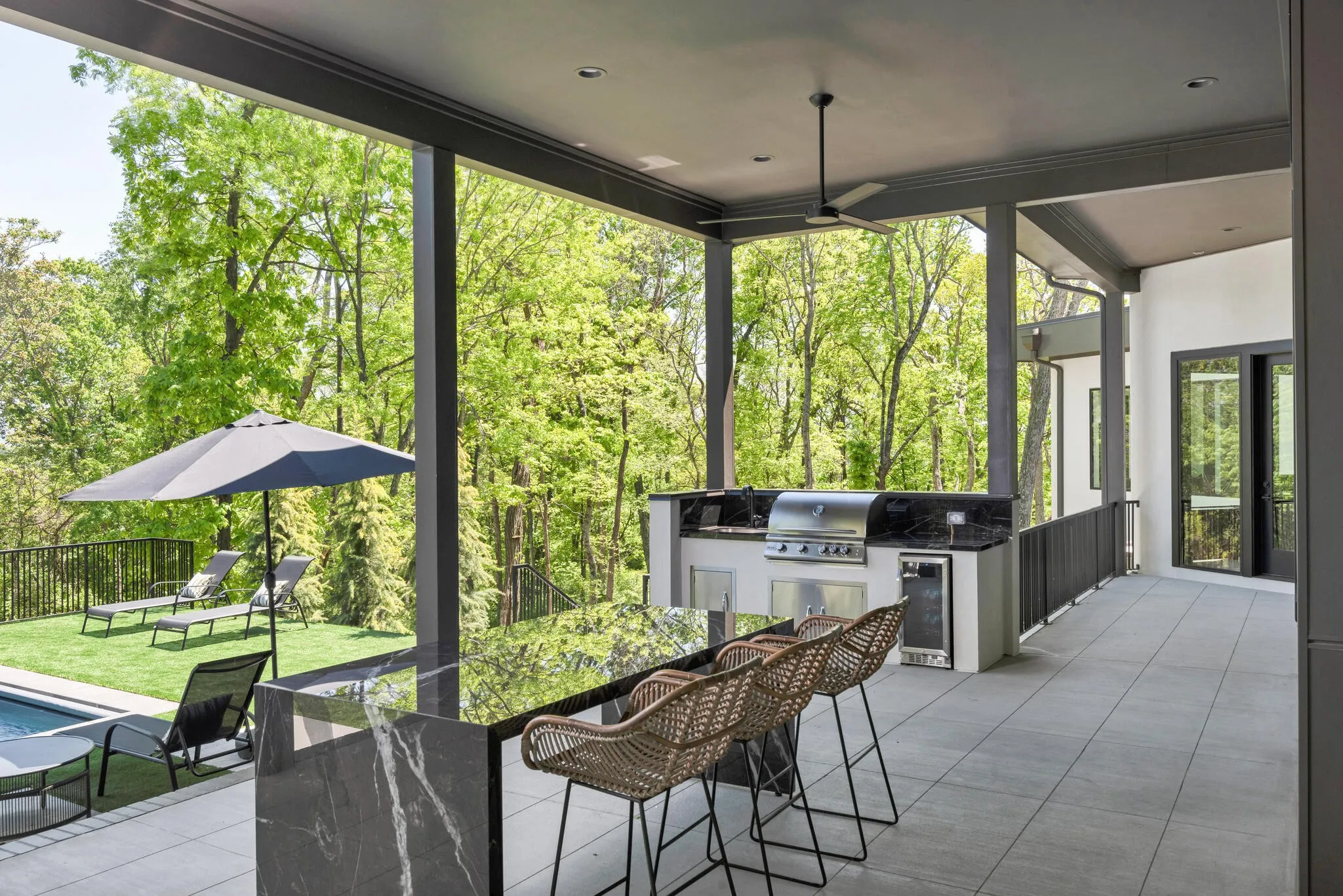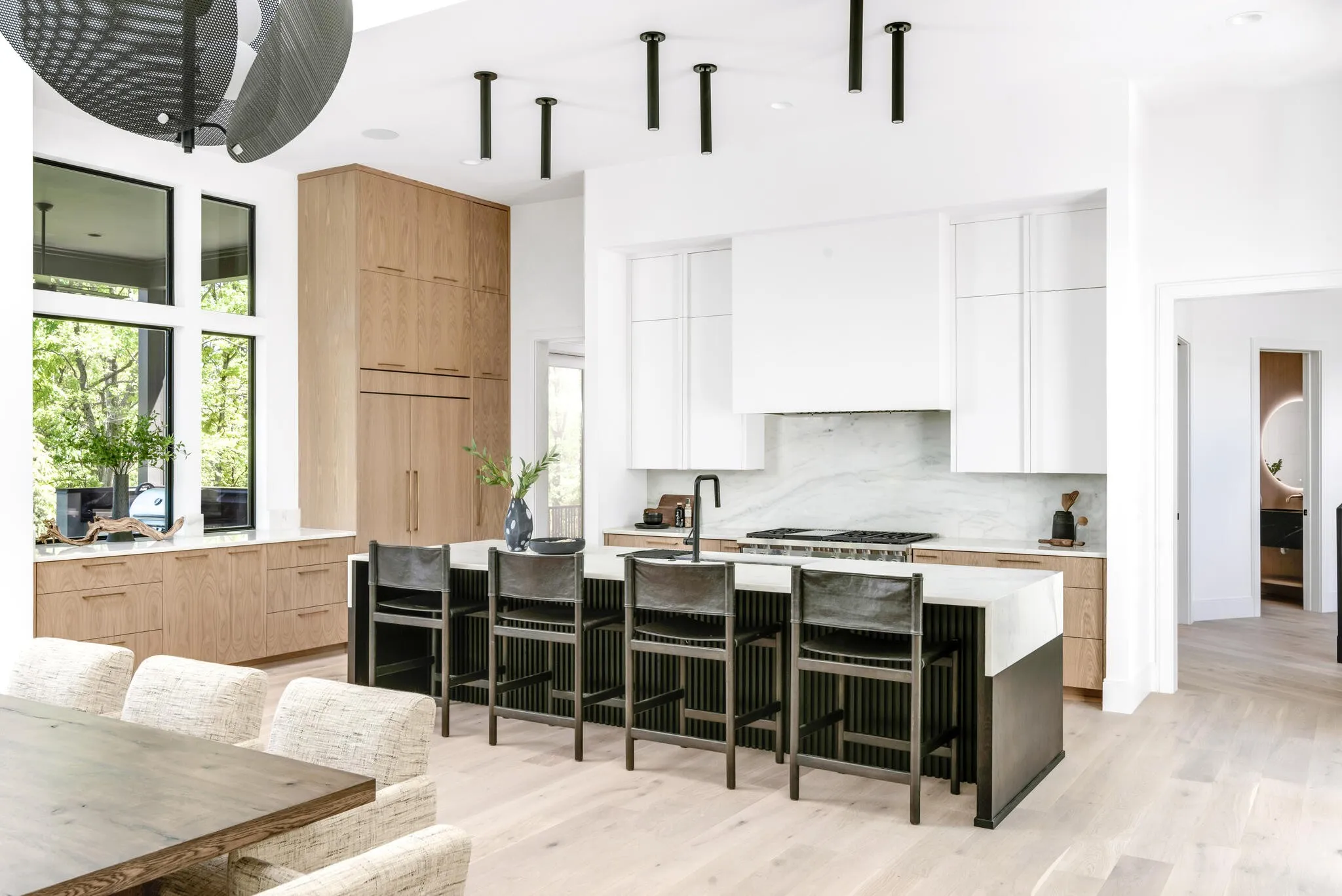 Close enough to Nashville for a downtown skyline view over the pool, and far enough away for seductive privacy, this envy-inducing ridge top jewel leaves nothing to be desired. From the light-drenched great room to the woodland walking trail, this inspired home is in a league of its own. Every space has been rendered with meticulous attention to detail for a life of ease, bathed in natural beauty and subtle drama. The living room flows effortlessly into the covered patio through fully retractable sliding doors. The kitchen is a foodie’s dream, rendered in white oak and quartz with chef-grade appliances and a scullery tucked away just behind. The finely appointed office opens onto a patio. Each of the five bedrooms offers an elegantly finished attached bath and soul-enriching views of the five-acre property. Downstairs, a third bar, media room and flex space provide opportunities for recreation and relaxation. The three-car garage includes a large additional space for toys and storage.