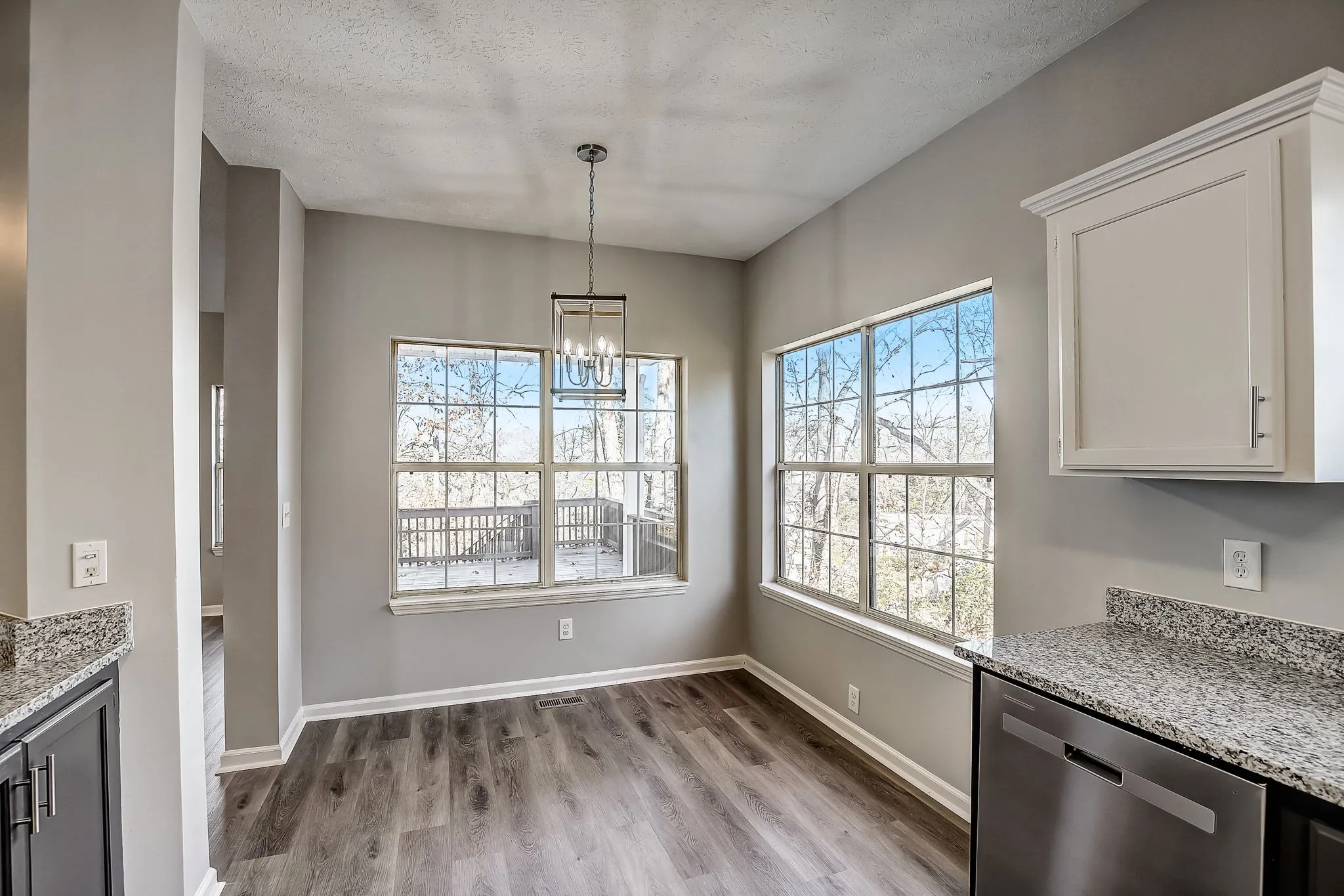 Spacious, light-filled home 4-BR home situated at the end of a quiet cul-de-sac in Oakwood! Beautifully updated throughout with new paint, waterproof Luxury Vinyl Plank flooring throughout the main living areas, new carpet in all bedrooms and upper bonus room. The kitchen opens up to the living area and features granite countertops and stainless steel appliances (range, dishwasher & microwave). The large deck overlooks the private, tree-lined back yard!