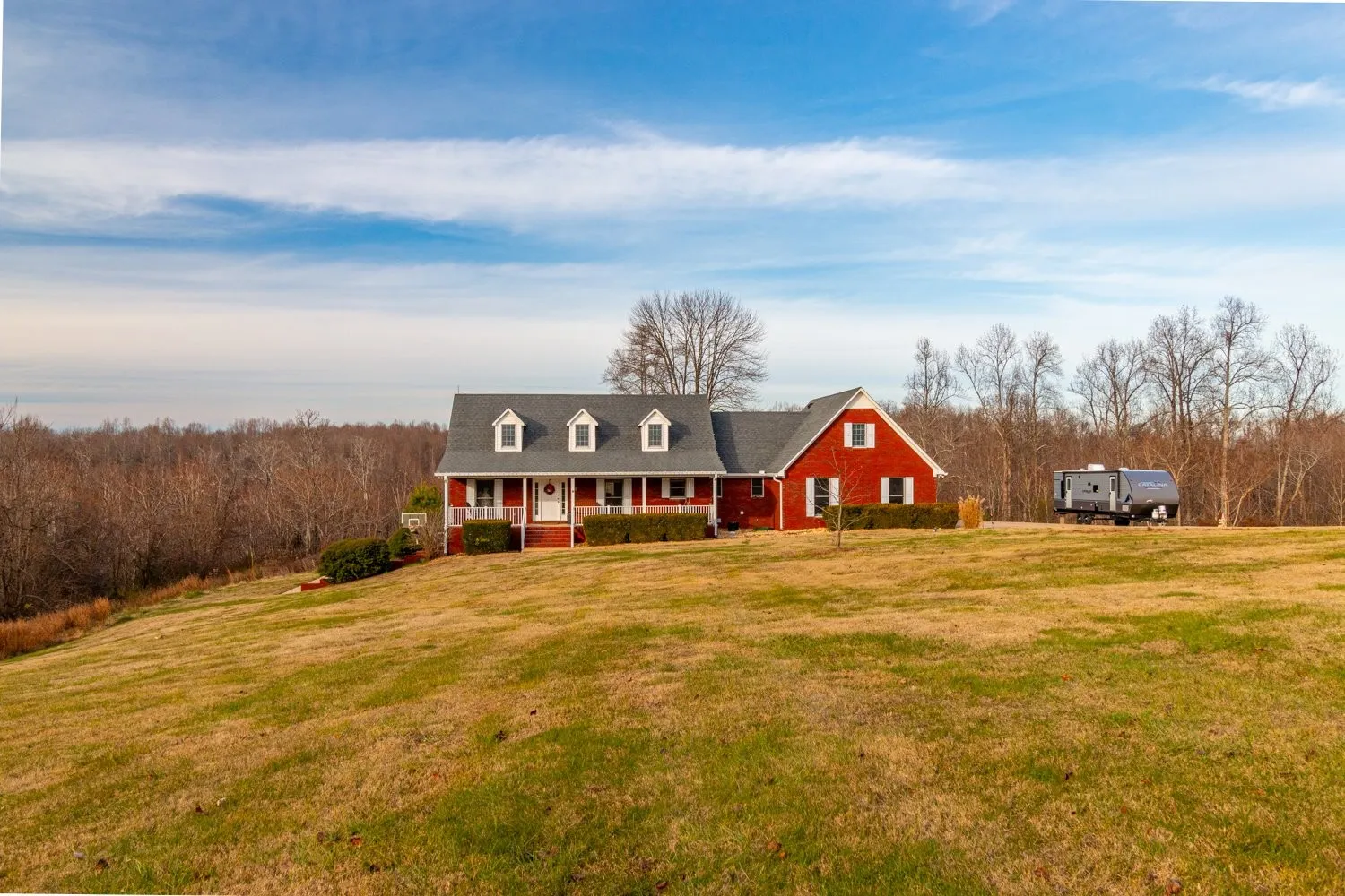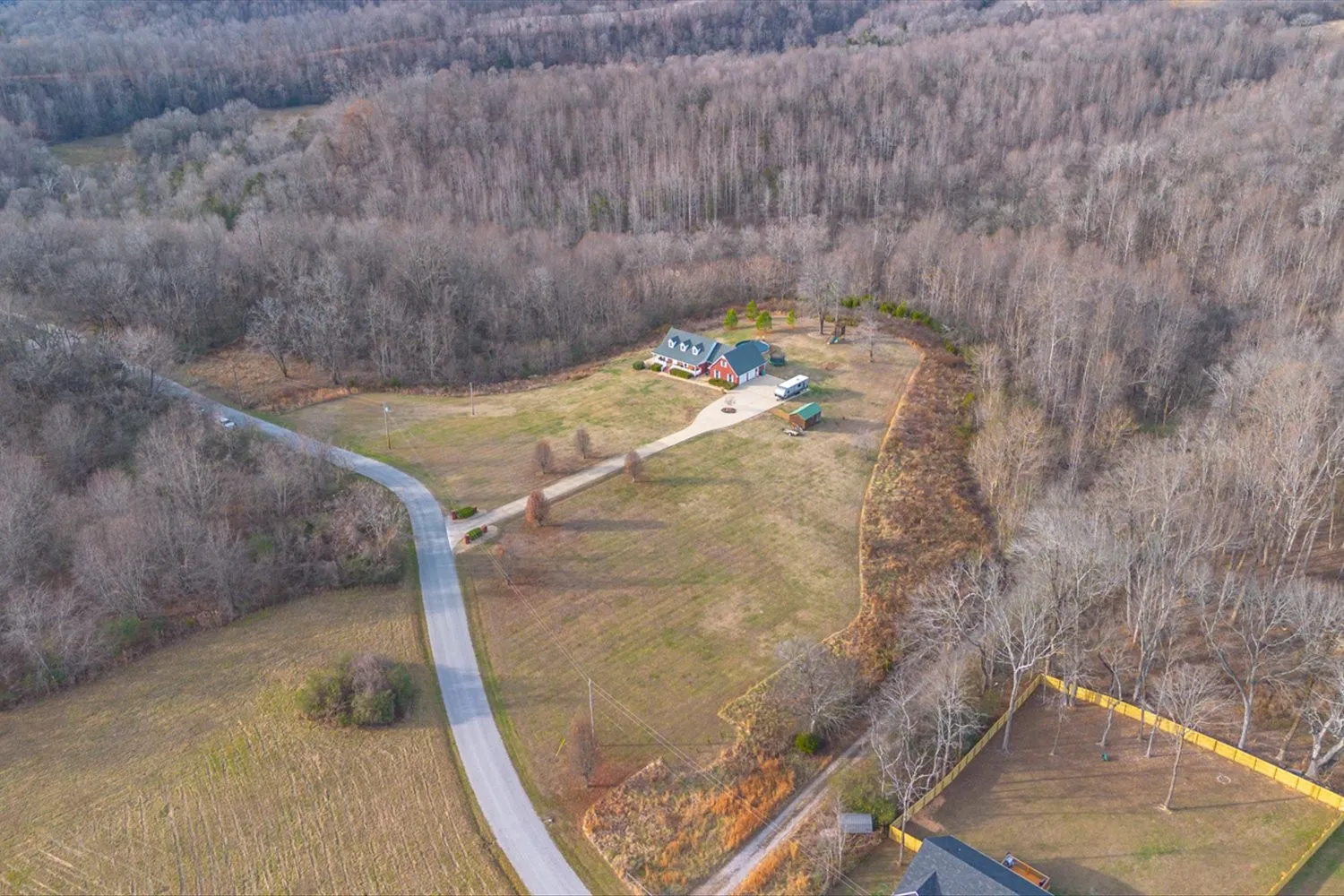 Beautiful all brick, well maintained home nestled in the rolling hills of Tennessee on 8.79 acres +- atop a dead end hill with great country views & wildlife for your enjoyment! Home sits off the road and features 3 bds/2 full baths on main level, a long concrete driveway with partially finished basement, an attached finished 2 car garage on main level and a separate egress/ingress to the basement. Roomy BSMT is perfect for an in-law suite or an additional entertaining space with full bath, partially finished bedroom, kitchen, under porch storage and storm shelter giving about 200 sf +- of extra space in BSMT. Living Room is vaulted with open floor plan to the foyer, combination dining room and kitchen. The workspace/coffee bar area just off the kitchen before the utility room & attached finished garage is nice. Must see your beautiful home & feel the serenity & privacy with convenience to shopping, food, doctors, hospital, and the main corridor of I-65 for easy commute! Call today!