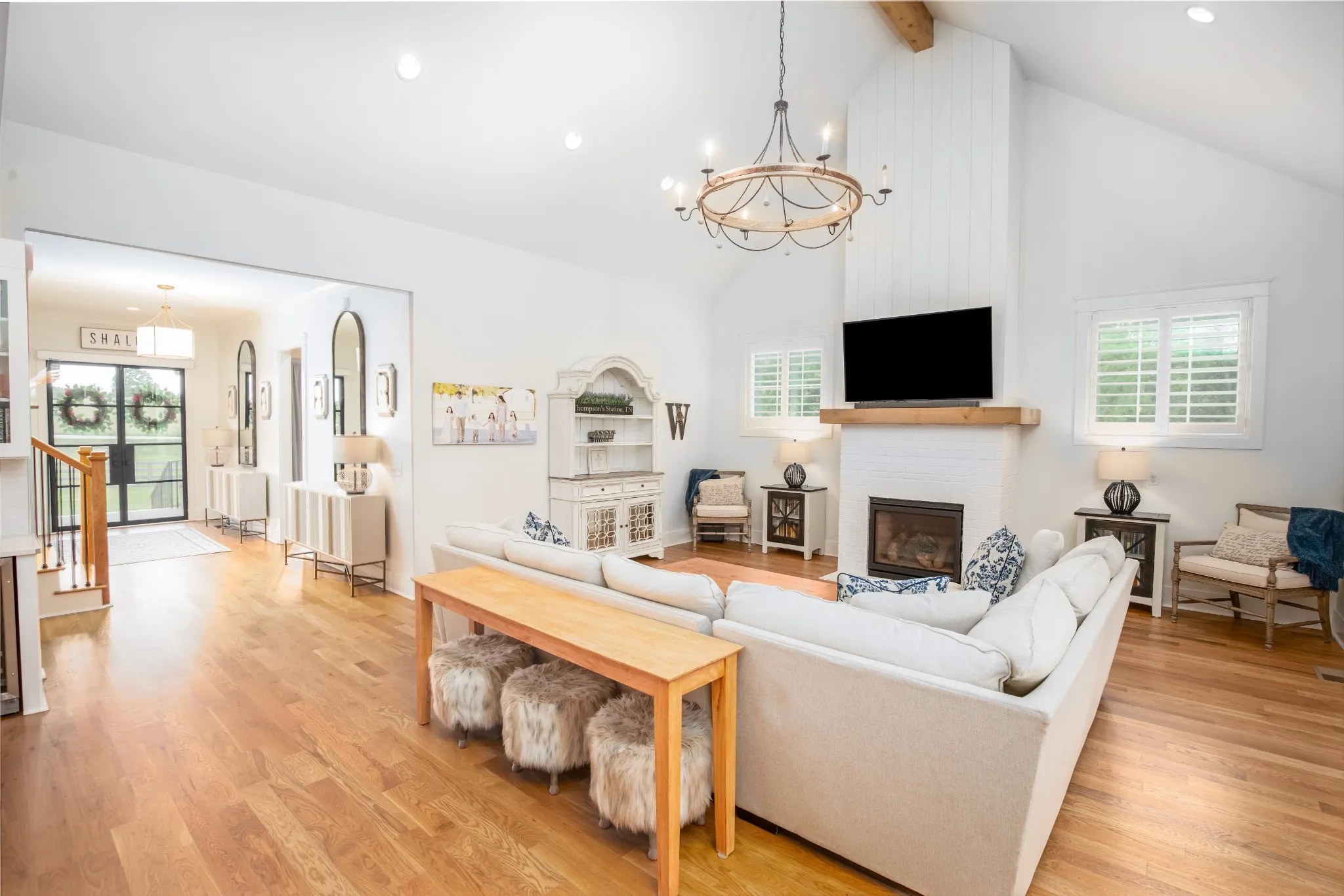 Welcome to country living at its finest! This stunning custom dream home is a perfect blend of modern comfort and southern charm. With 5 bedrooms and 4 full bathrooms, this home has a beautiful open floor plan bathed in natural light throughout. Walking into the living area, you are met with elevated ceilings and a large brick fireplace adorned with shiplap. The dreamy gourmet kitchen features a large farmhouse sink, top of the line appliances, and a custom hidden walk-in pantry. The main level owners’ suite has a luxurious bath with dual headed shower and deep bathtub. Large walk-in closets and storage can be found throughout the home. The back screened-in porch has a gas burning fireplace and a hanging day bed swing that overlooks the expansive country yard, perfect for entertaining. Just a few minutes from the 840/65 this home borders Franklin and is close to Berry Farms and Spring Hill shopping and restaurants. Nestled on 1.44 acres, it has the true heart of southern living.